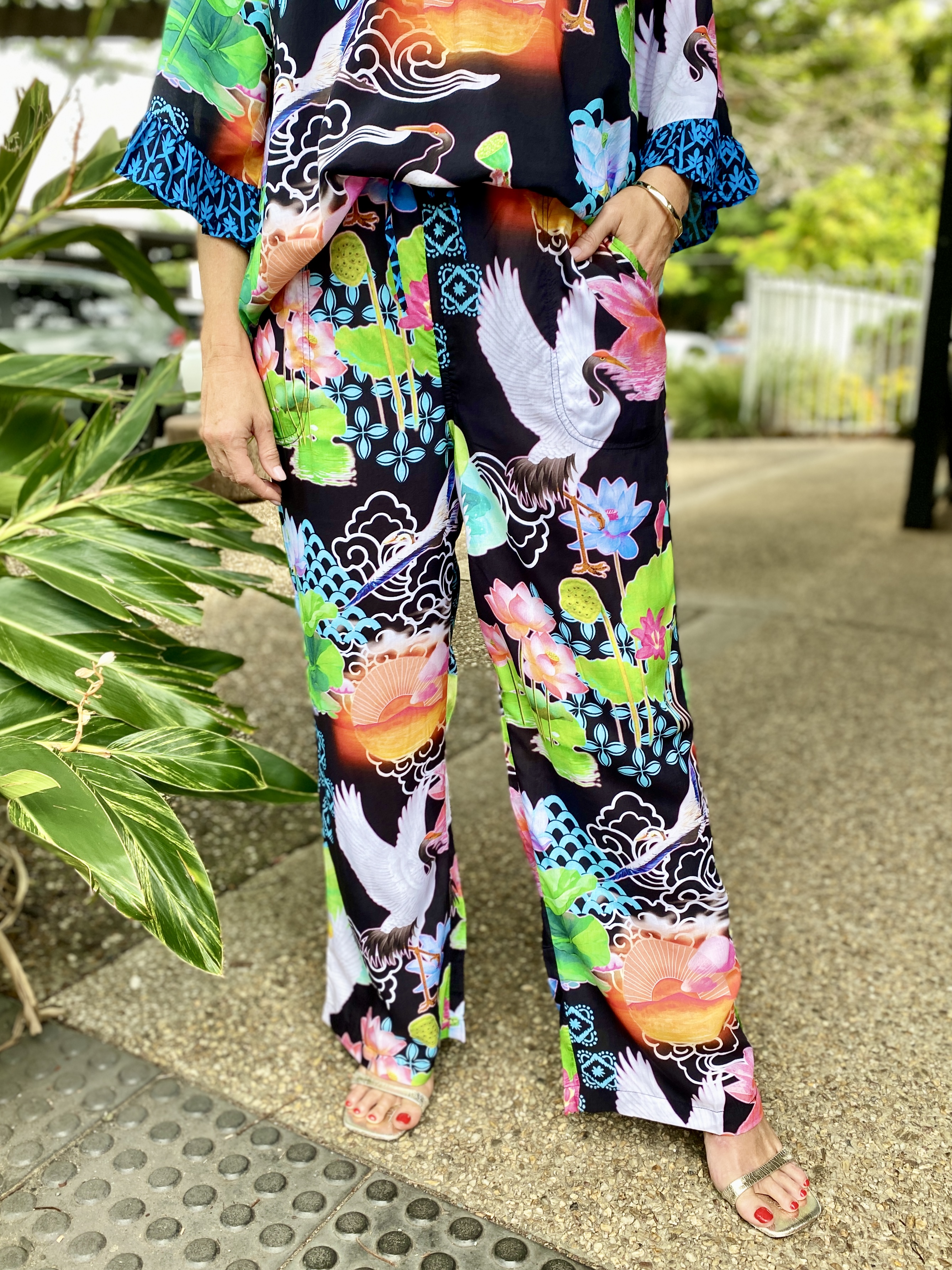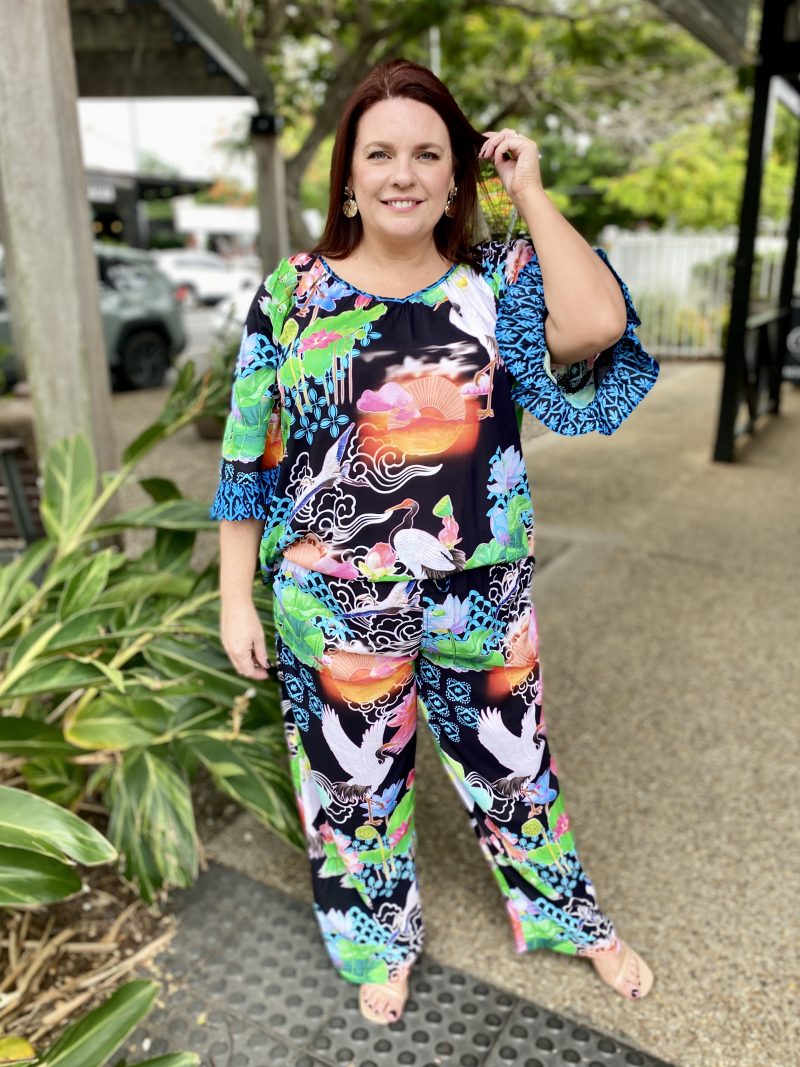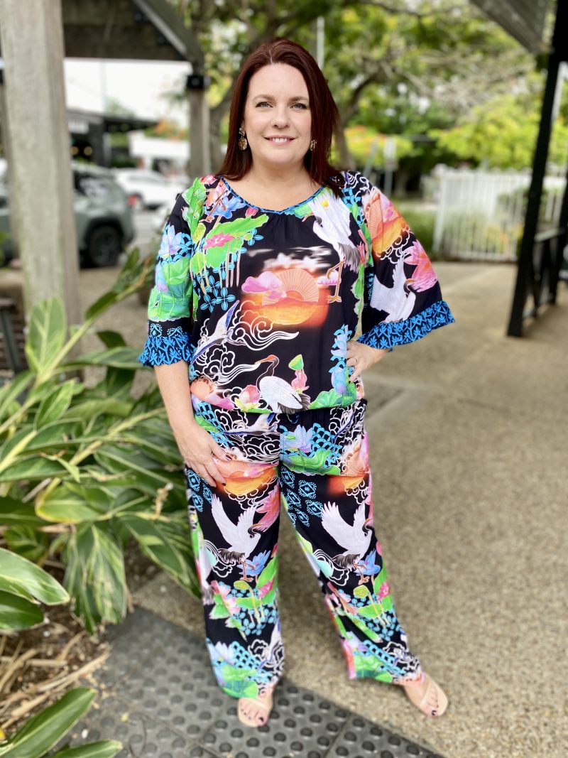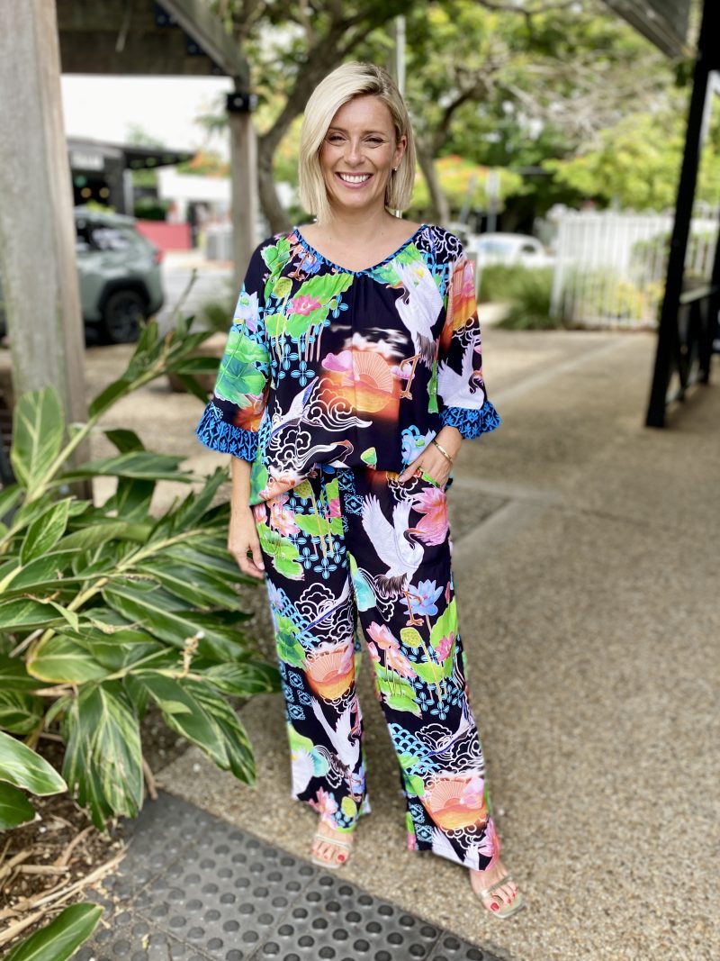 Bringing comfort and colour together, the Akiko Pant is the perfect easy-wear style for warm days. Made from 100% viscose, these pants feel soft, cool, and lightweight with a relaxed fit that moves with you. The shirred waist yoke offers a flexible, comfy feel, while the straight leg keeps the silhouette clean and flattering. Designed with side pockets and a full-length cut, they’re finished in a bold Japanese-inspired digital print that adds a fresh pop to any outfit. Proudly designed in Australia, they pair perfectly with a simple tee or the matching Akiko Top.