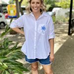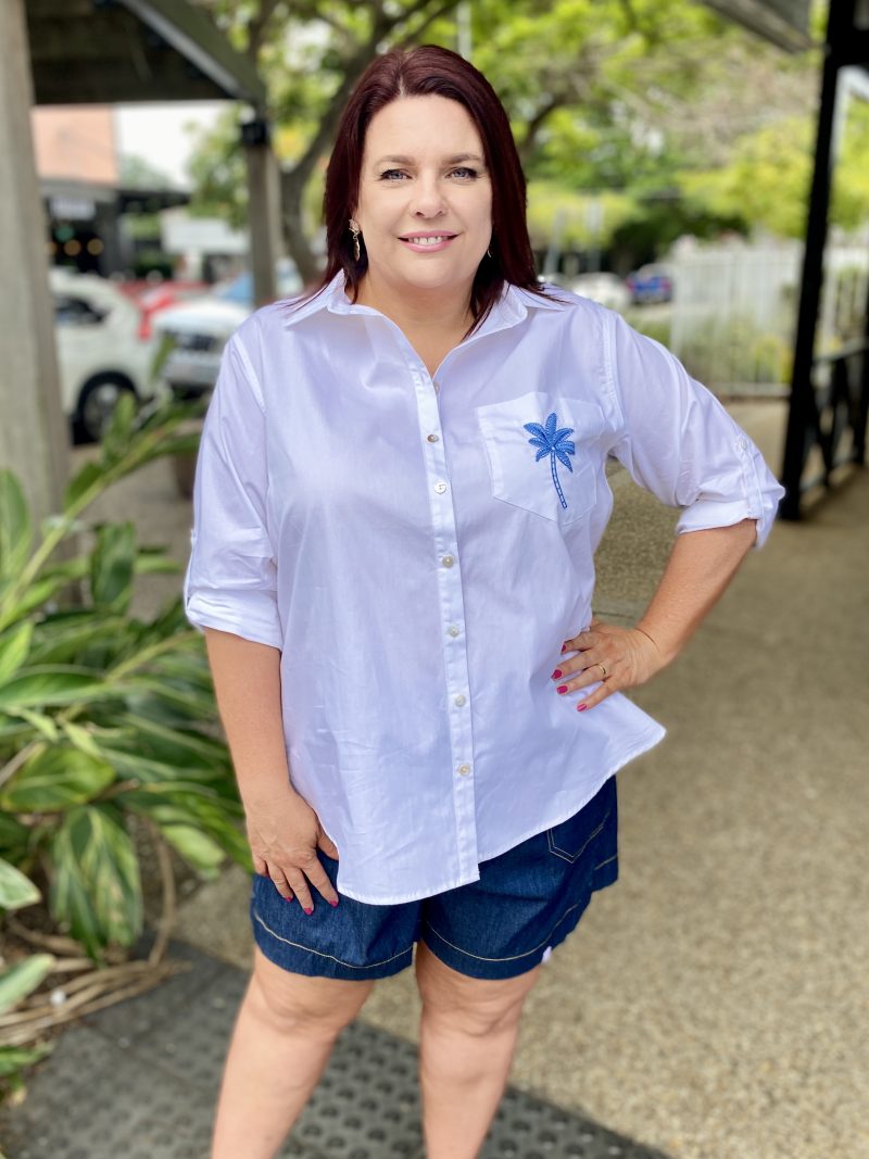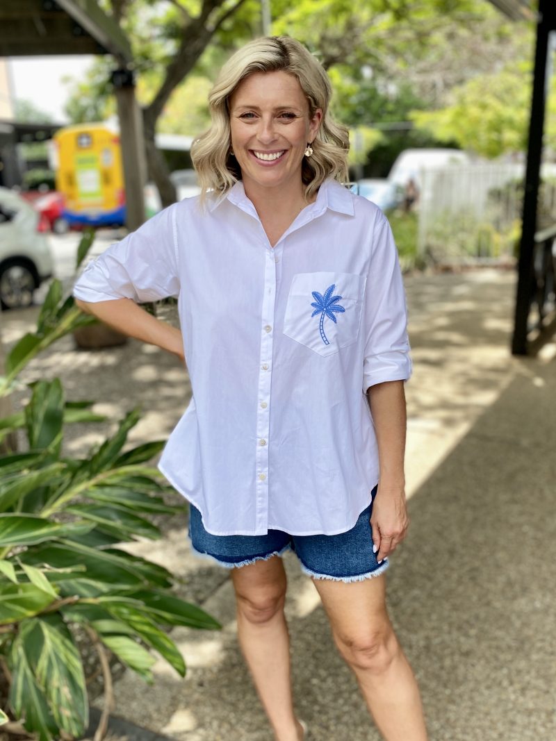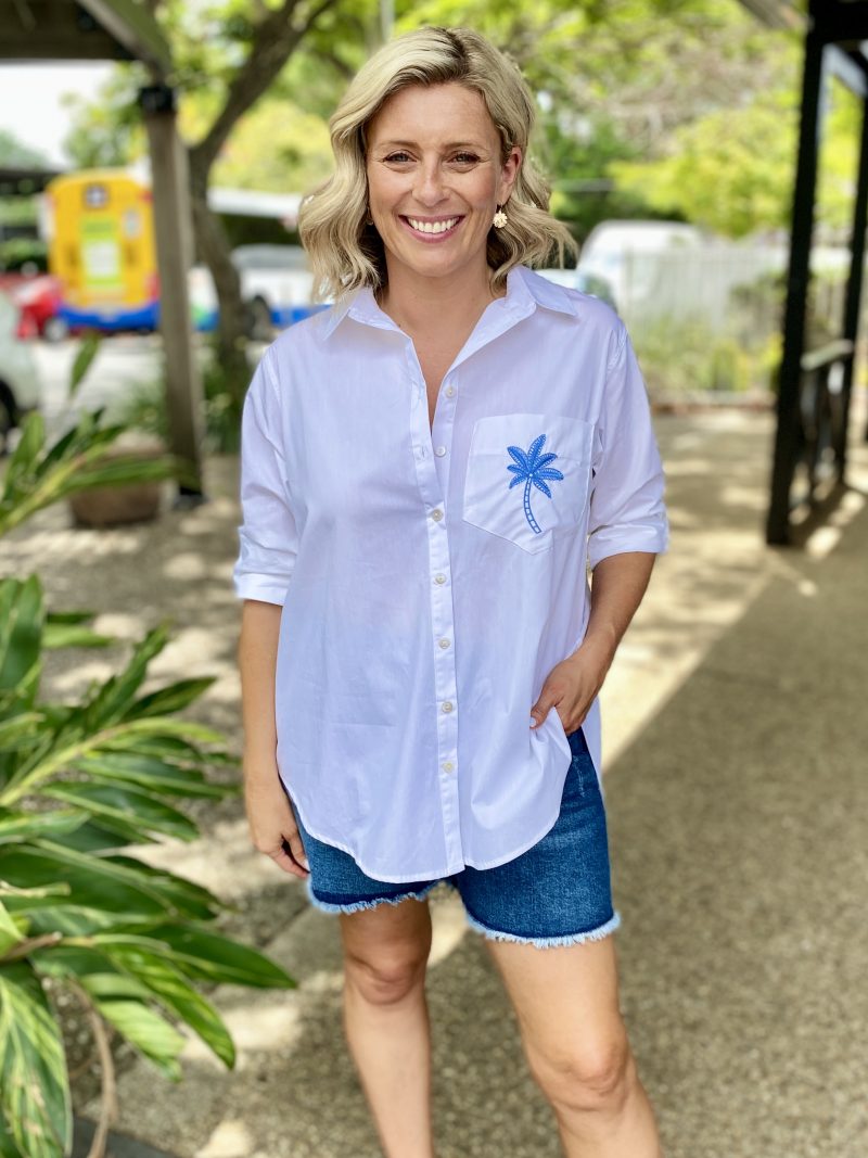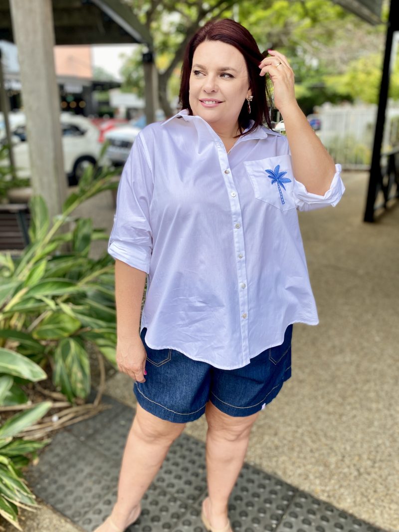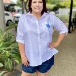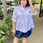 Classic shirt with a fresh twist, the Alannah Shirt – White/Blue is the kind of wardrobe staple you’ll keep reaching for. Relaxed yet polished, it’s perfect for layering over denim, tucking into tailored trousers or styling loose with shorts on warm days.