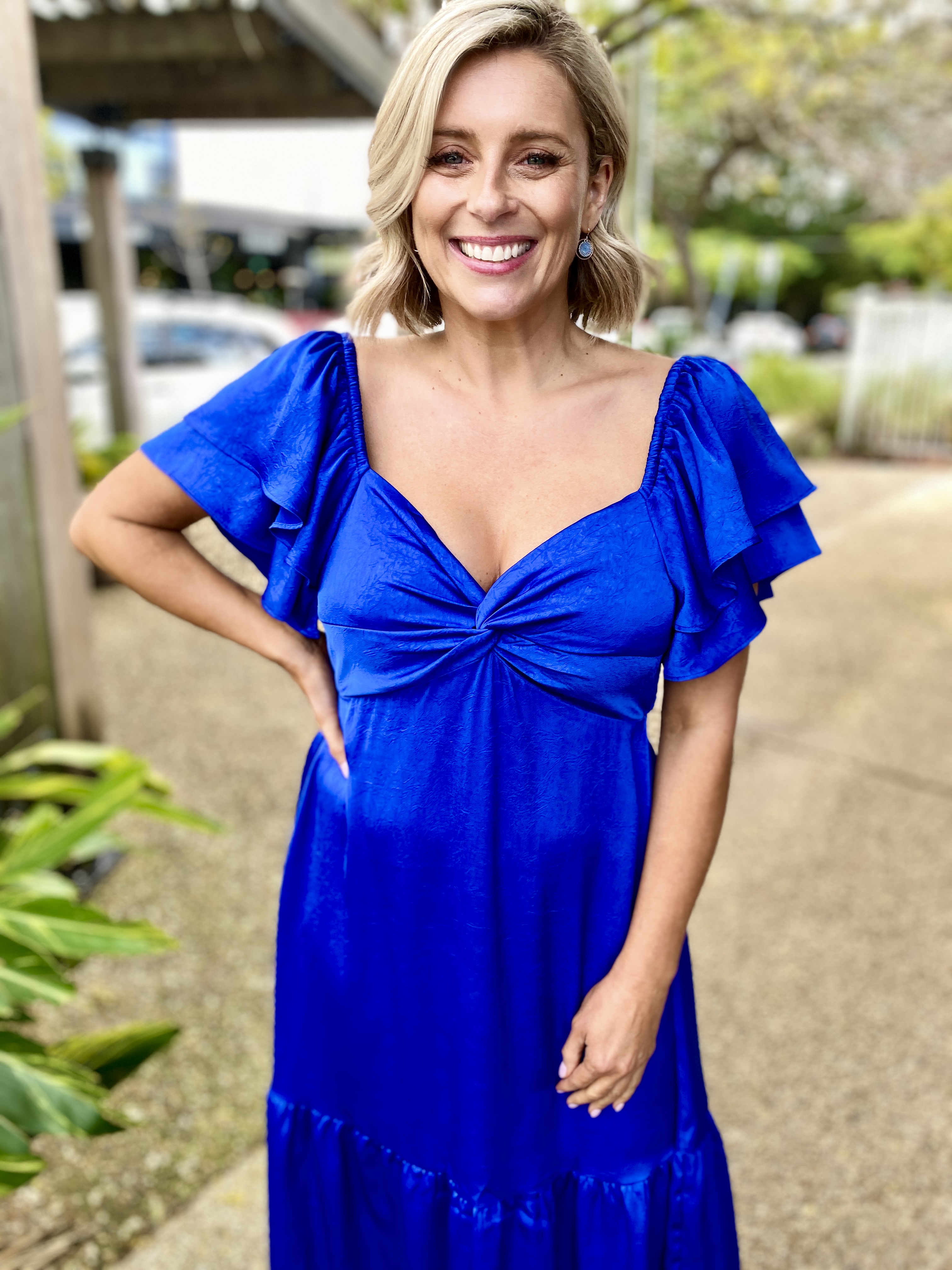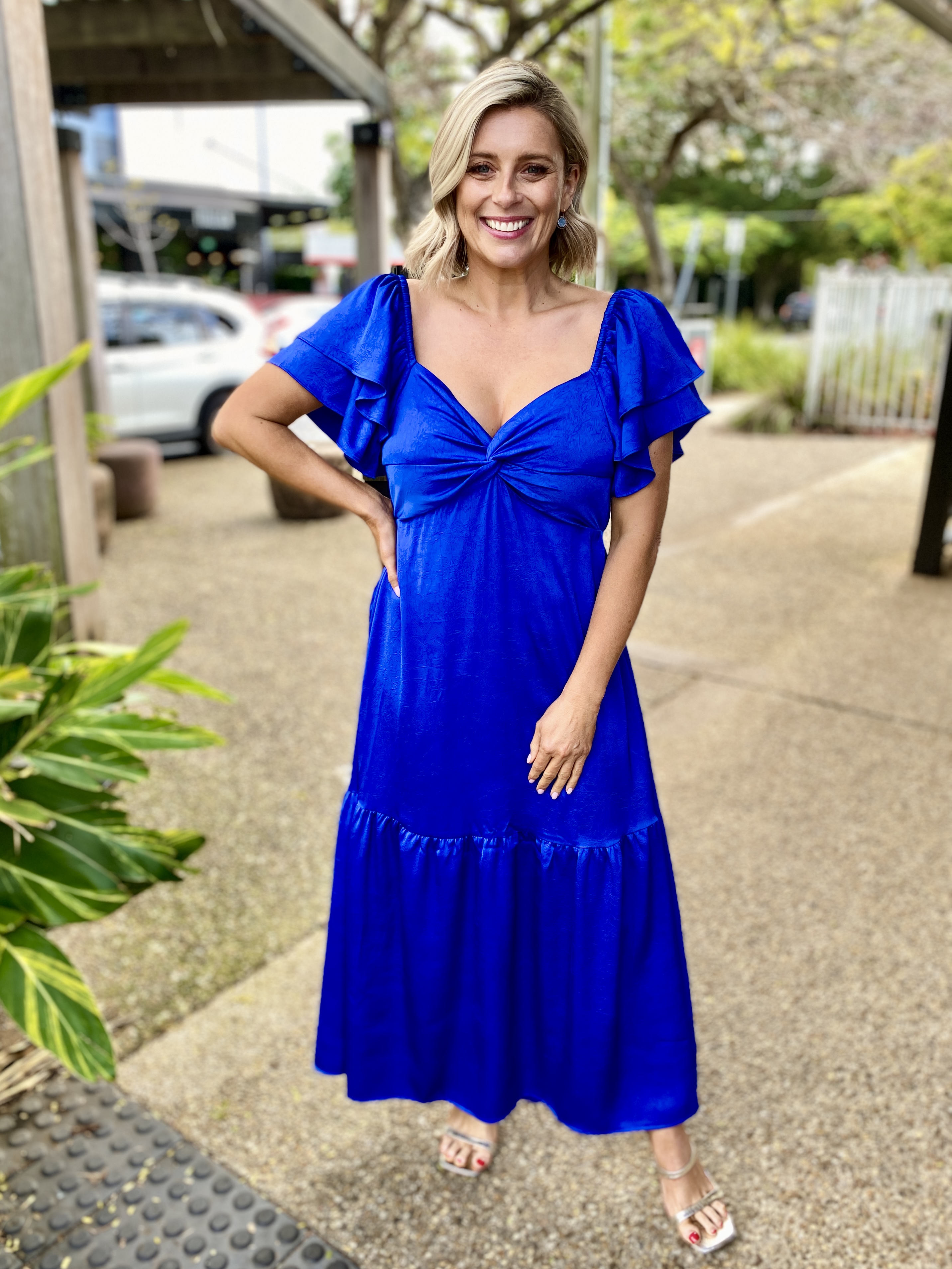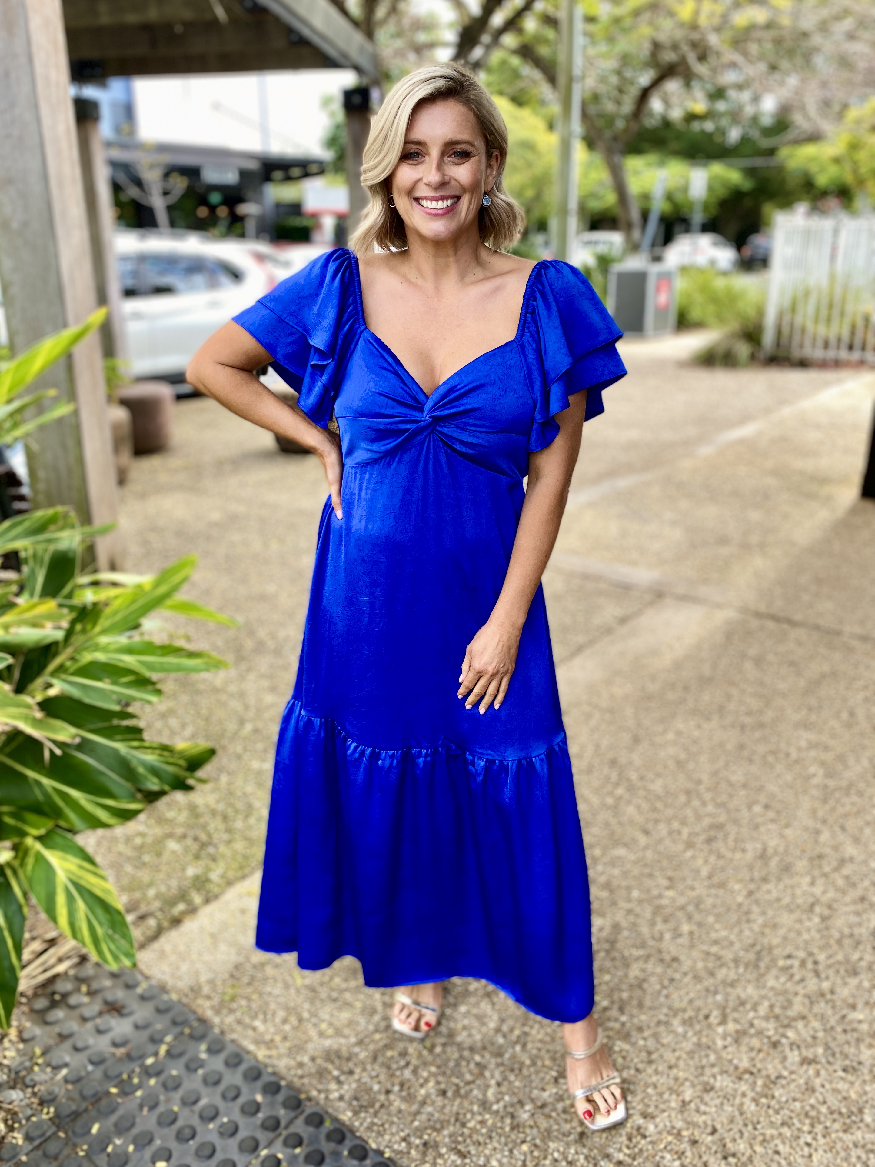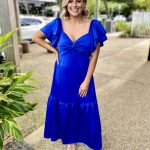 Feel extra special in our Alison Dress! This sweet style features a gorgeous V-neckline, cinched waist, and flutter sleeves. This dress will flatter you in all the right places! Embrace the upcoming party season and style yours with sparkly drop earrings and sleek stilettos.
