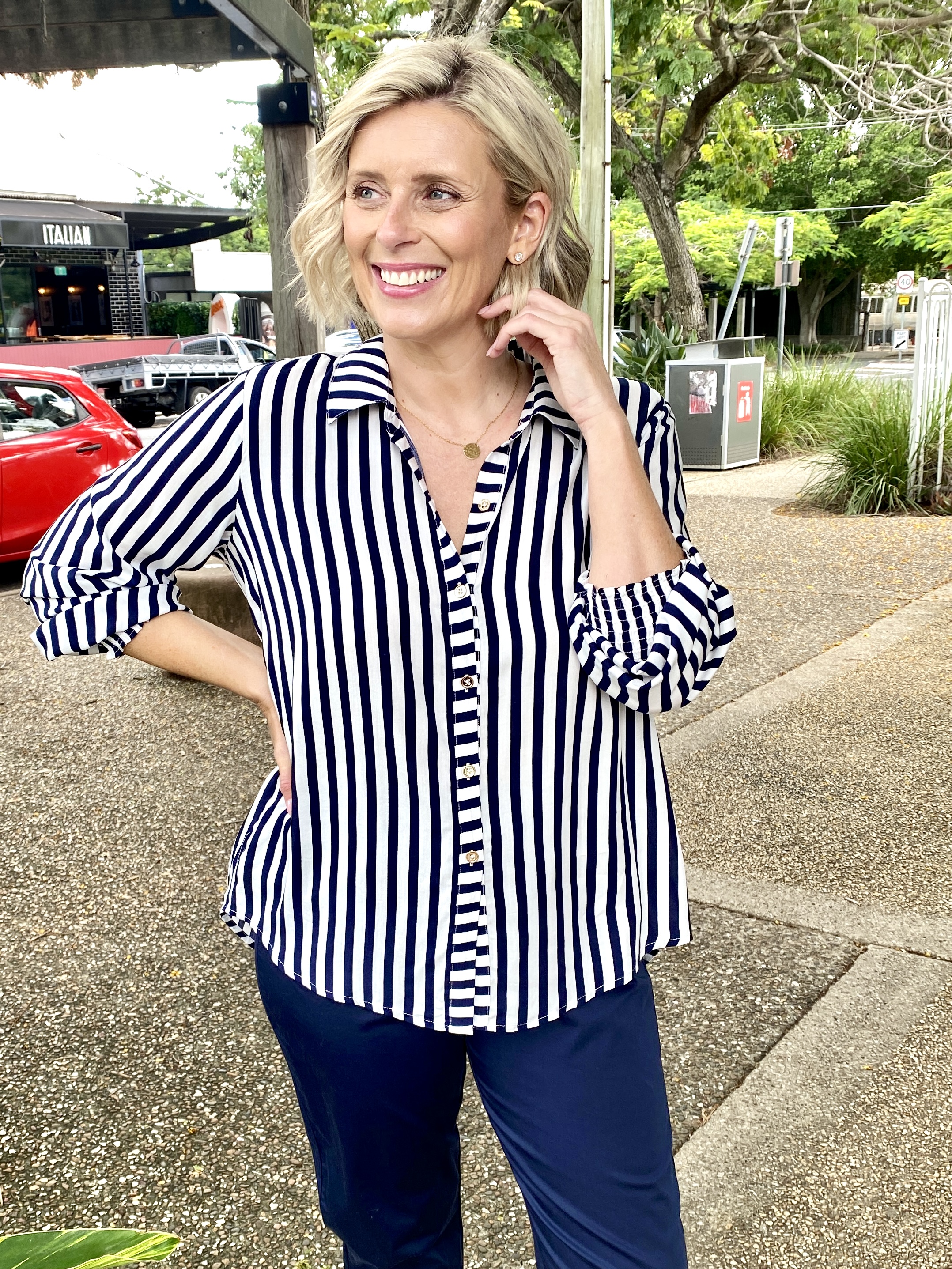 Amour Stripe Shirt – Navy/White