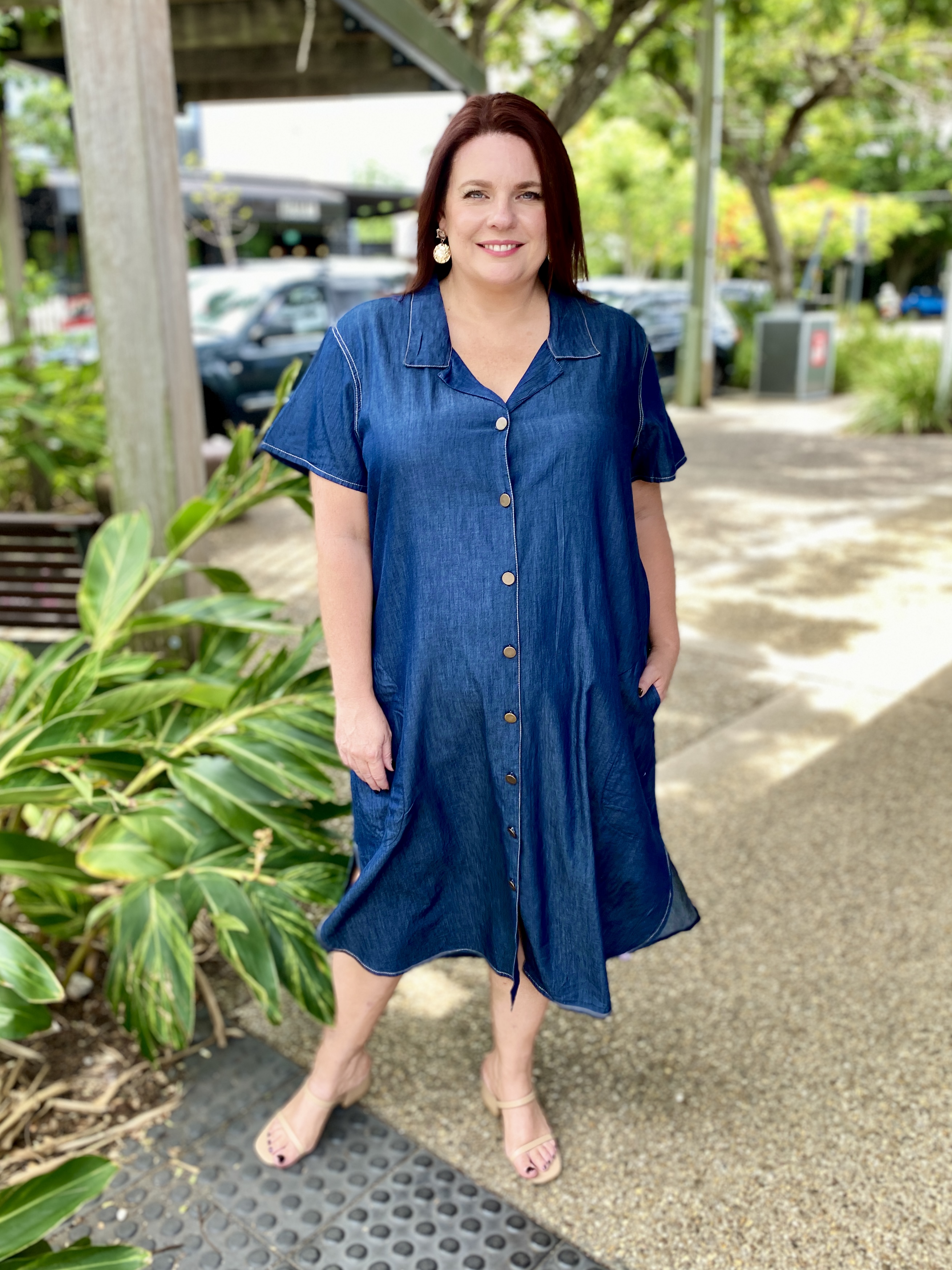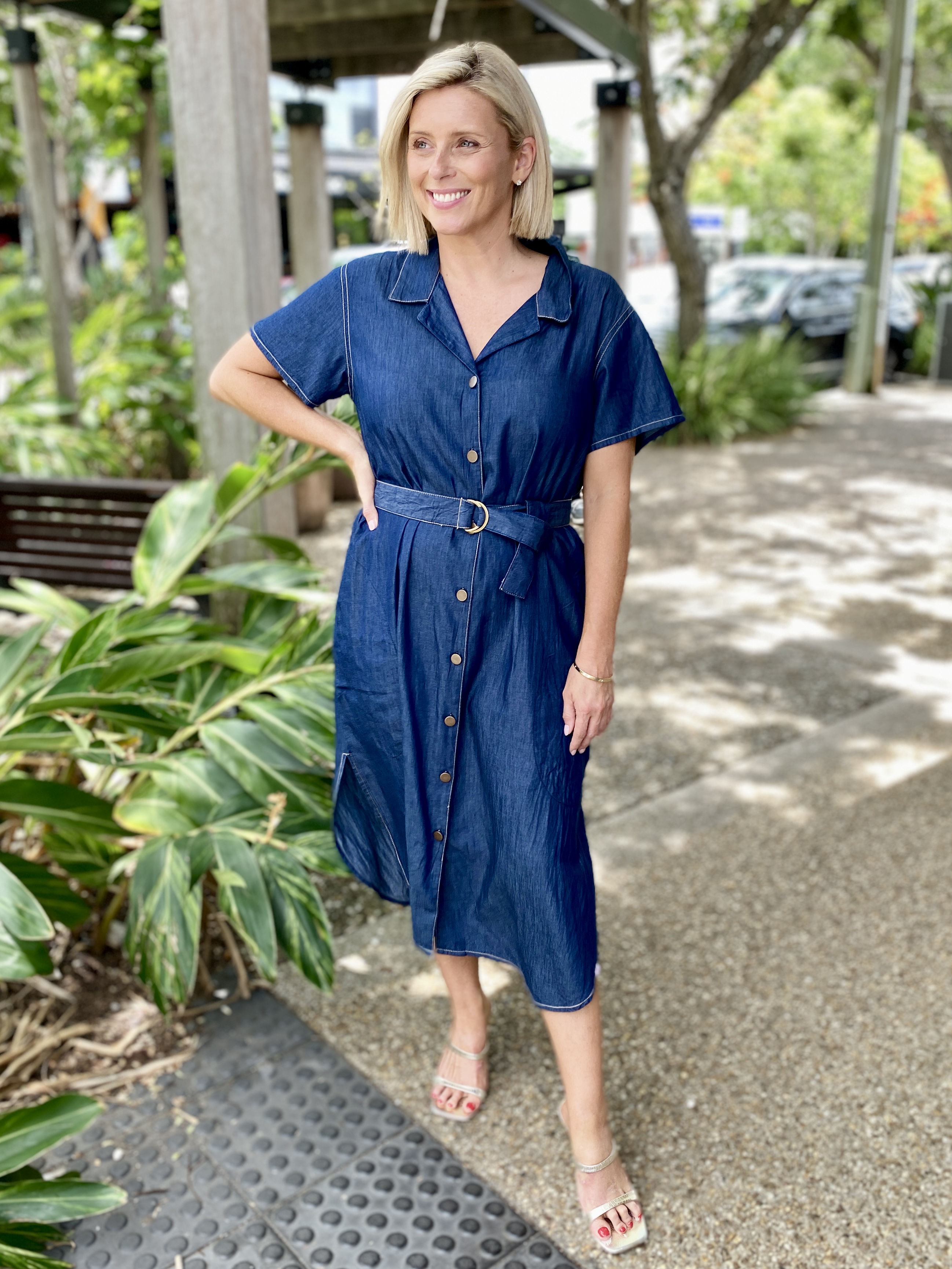 Elevate your everyday wardrobe with the Arizona Button Dress. Crafted from 100% breathable cotton, this midi-length dress combines effortless comfort with timeless style. The A-line shirtmaker silhouette and buttoned front create a flattering, versatile shape, while short sleeves and practical side pockets add modern functionality. Perfect for brunch, office days, or weekend adventures, this dress embodies relaxed sophistication. Designed in Australia with attention to detail, it’s a wardrobe staple that blends style and ease seamlessly.