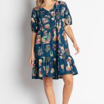 Brighten your wardrobe with the Arriba Dress, a playful blend of comfort and style. Crafted in Australia from lightweight 100% cotton voile, this knee-length dress is perfect for warm-weather dressing. Featuring a relaxed fit with a flattering V-neckline, vertical tucks on the bodice, and tiered gathered panels, it offers a breezy and feminine silhouette. The gathered elbow-length sleeves with soft elastic hems add comfort, while practical side pockets make it easy to wear every day. Finished with a retro Mexican western-inspired digital print, this dress is a vibrant choice for summer outings, holidays, or casual weekends.