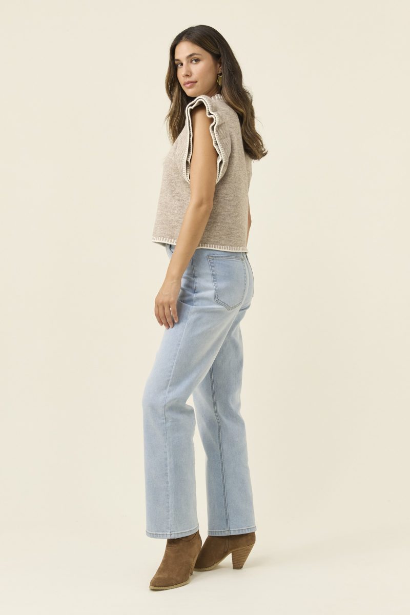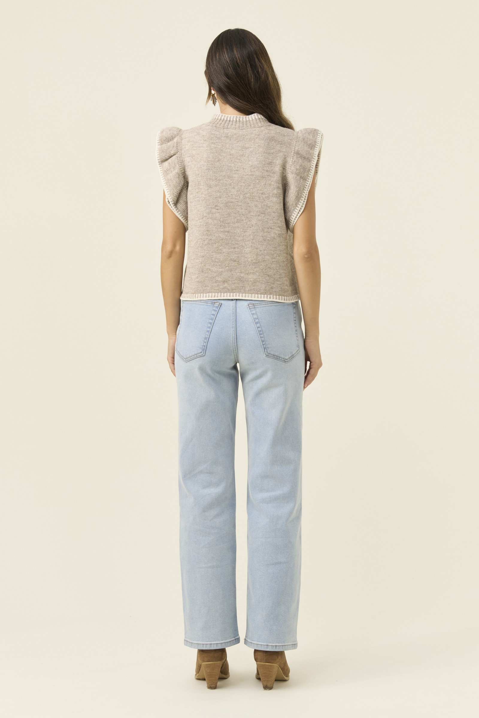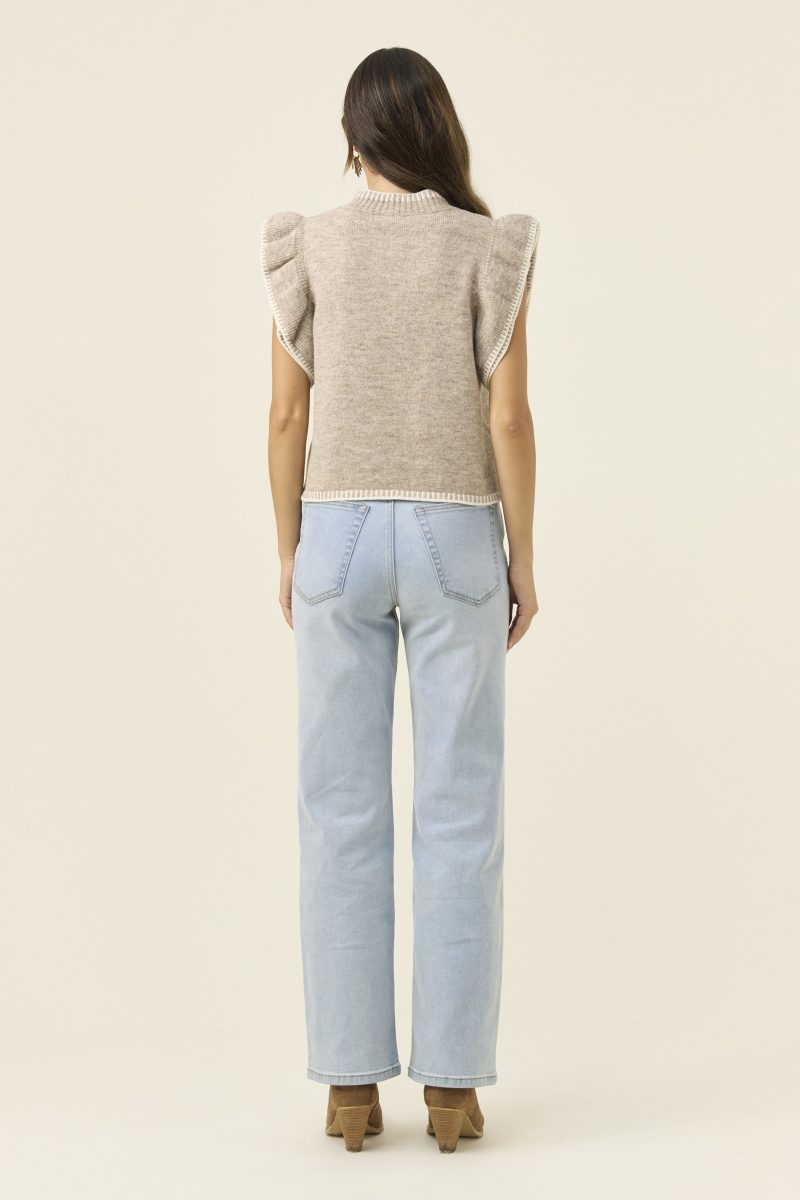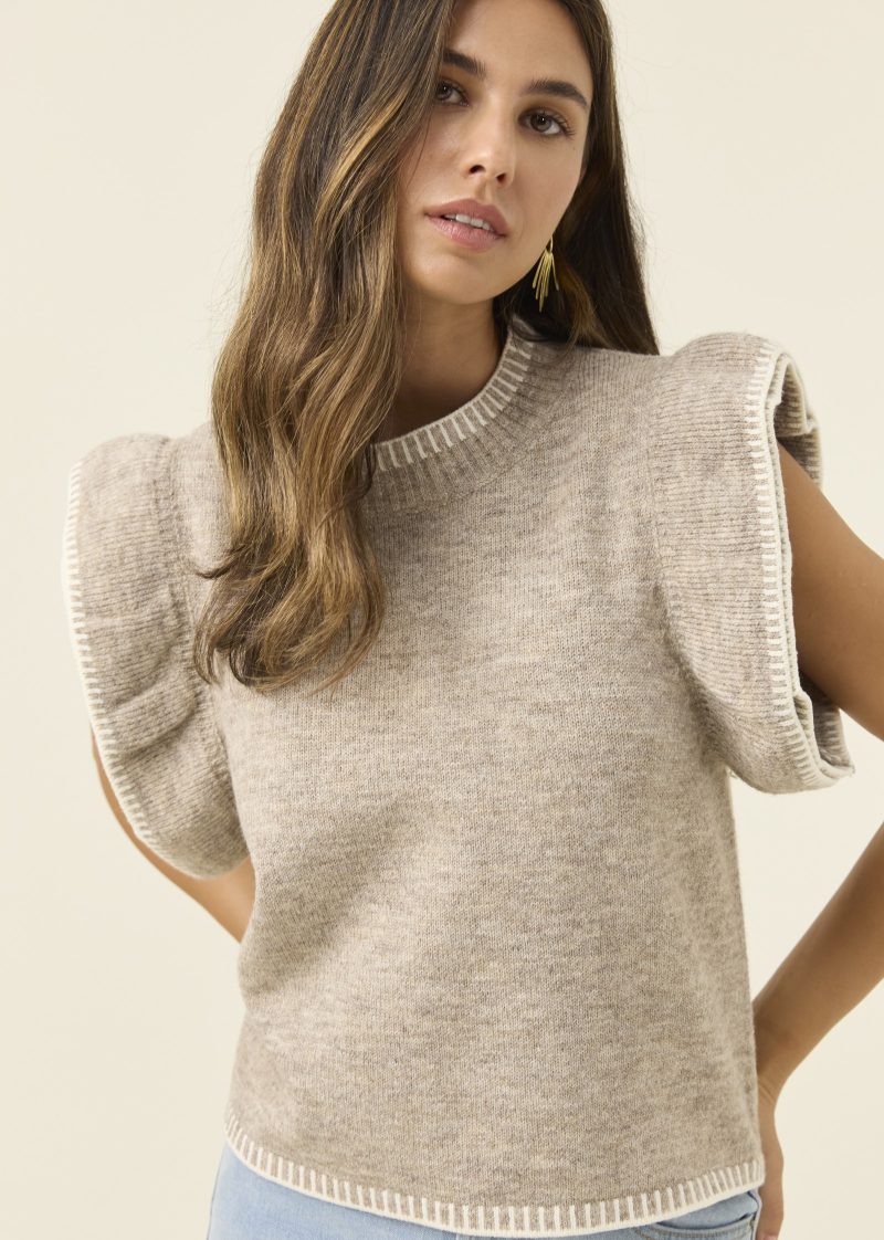 A much-loved silhouette reimagined for the season. The Athena Frill Knit Top features a soft marle knit in a wool-blend, with layered flutter sleeves and contrast blanket stitch detailing, designed to bring texture and warmth to everyday looks.