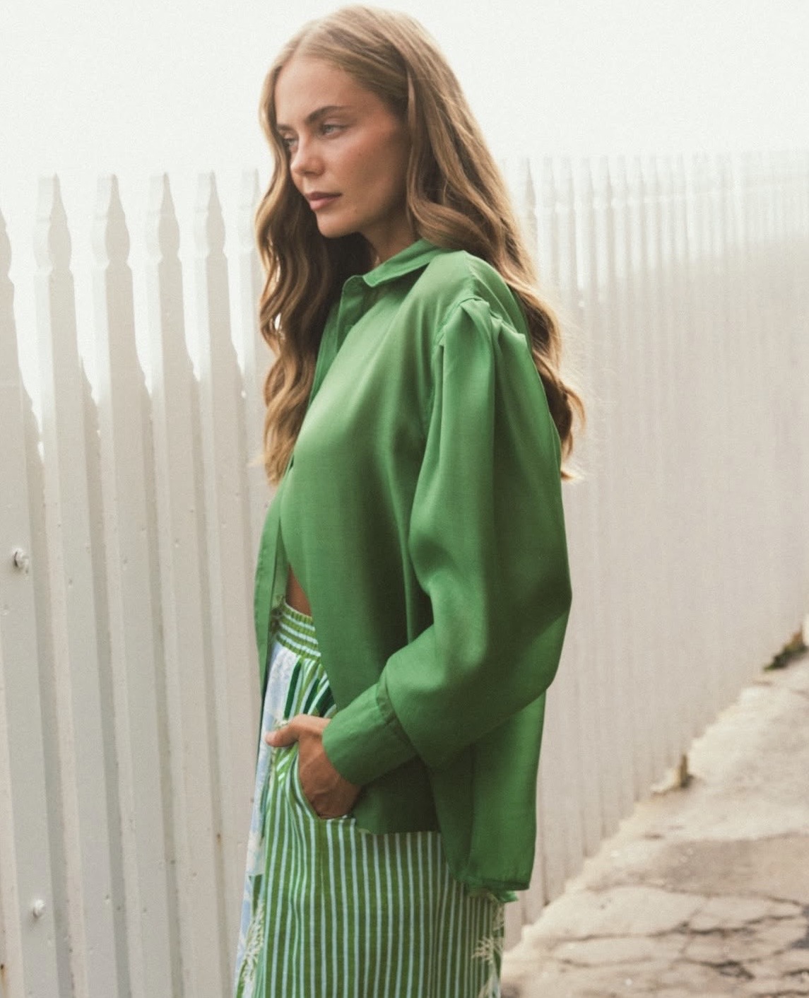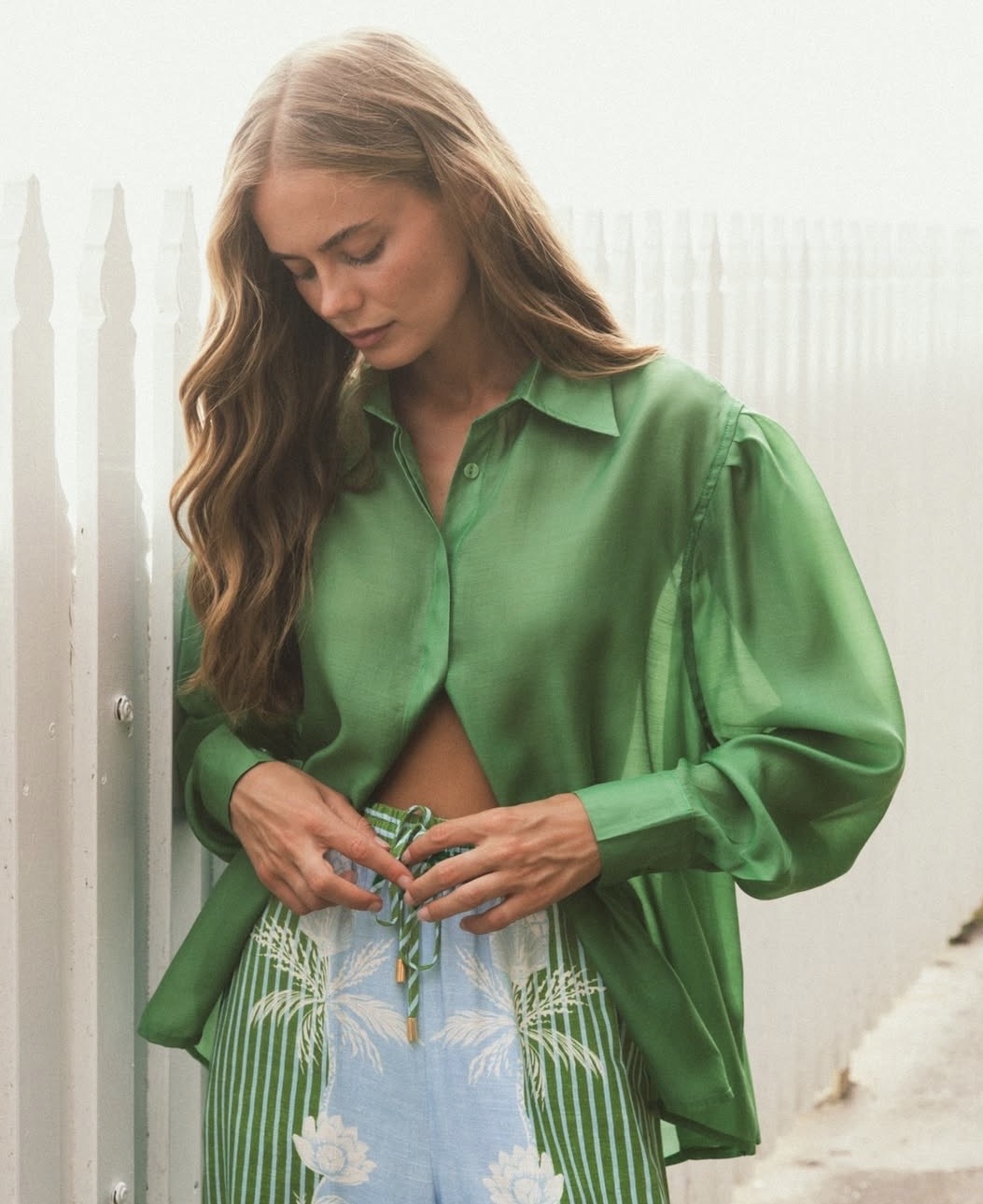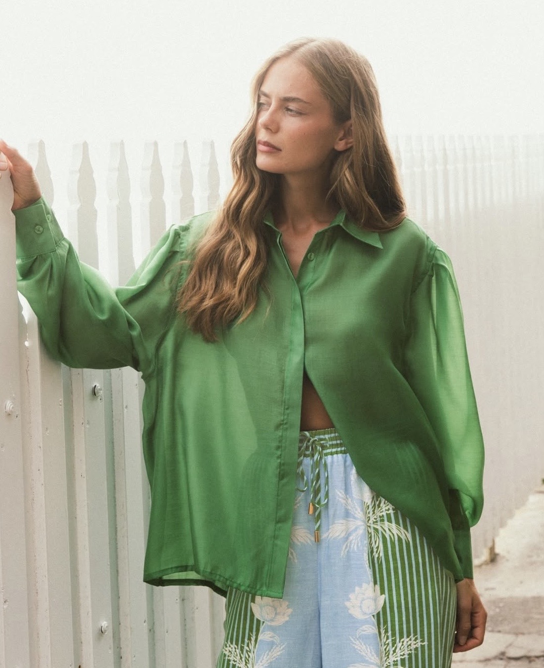 Feminine and refined, our Bellini Shirt will elevate your wardrobe. Featuring a button front opening, semi sheer fabrication and a buttoned cuff sleeves. Team with your mini tote, tailored trousers and strappy heels for an elegant look.
