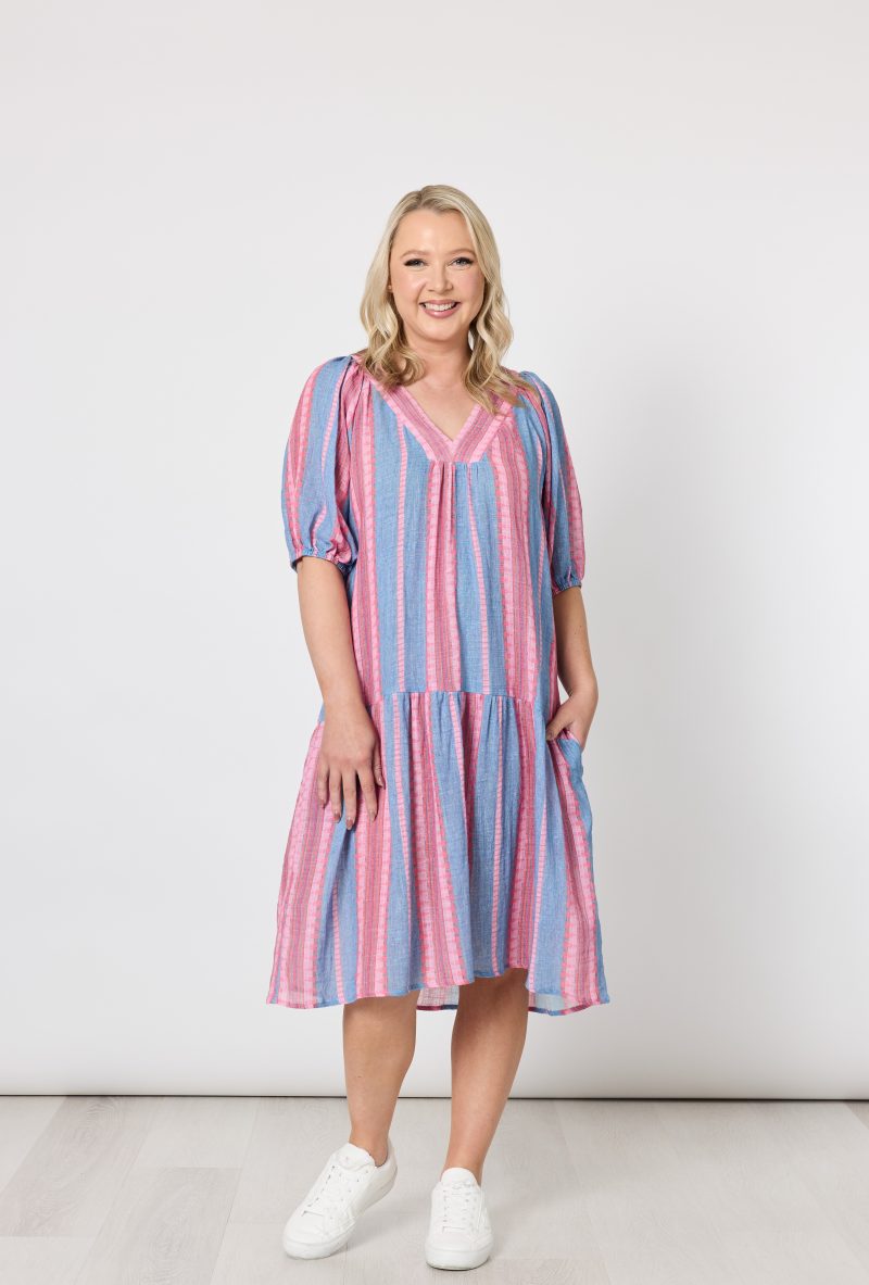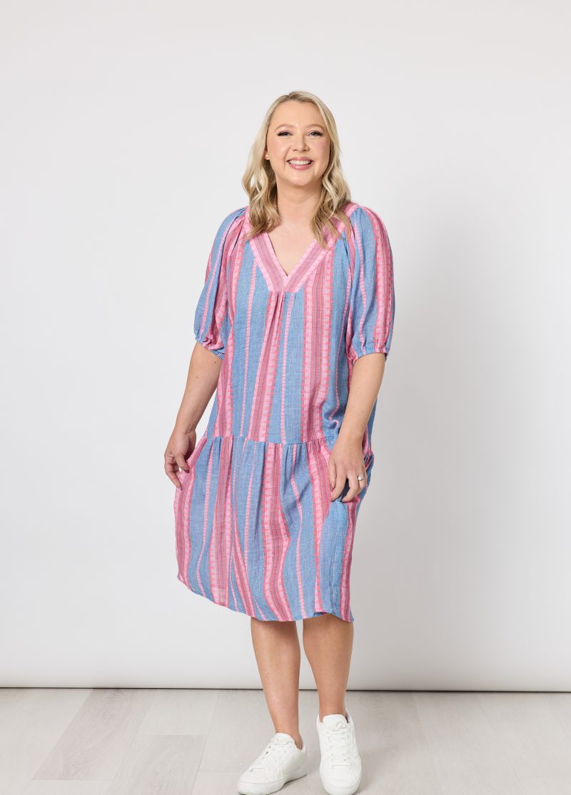 Step into effortless style with the Bloom Stripe Dress, a breezy and bold addition to your everyday wardrobe. Designed with comfort and casual charm in mind, it’s perfect for sunny days, weekend outings, or your next vacation escape.