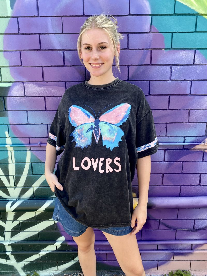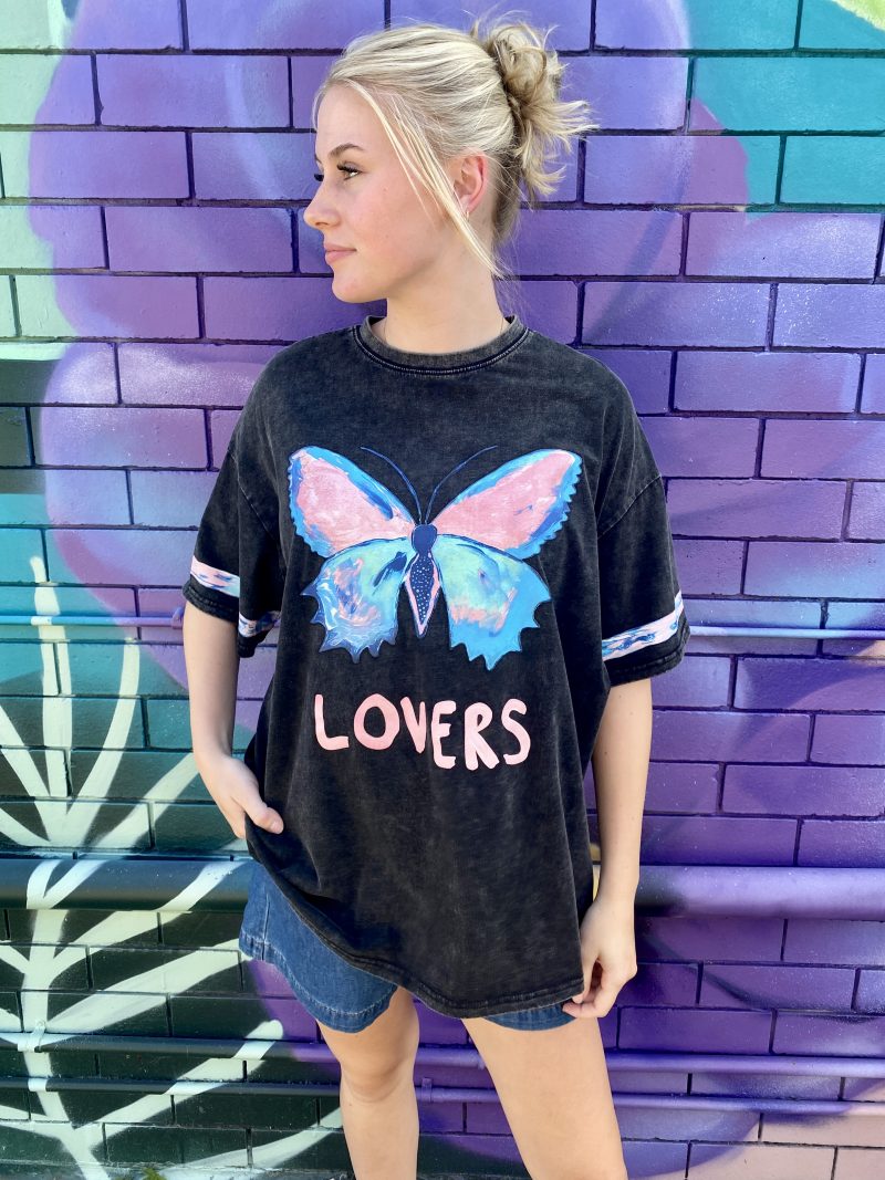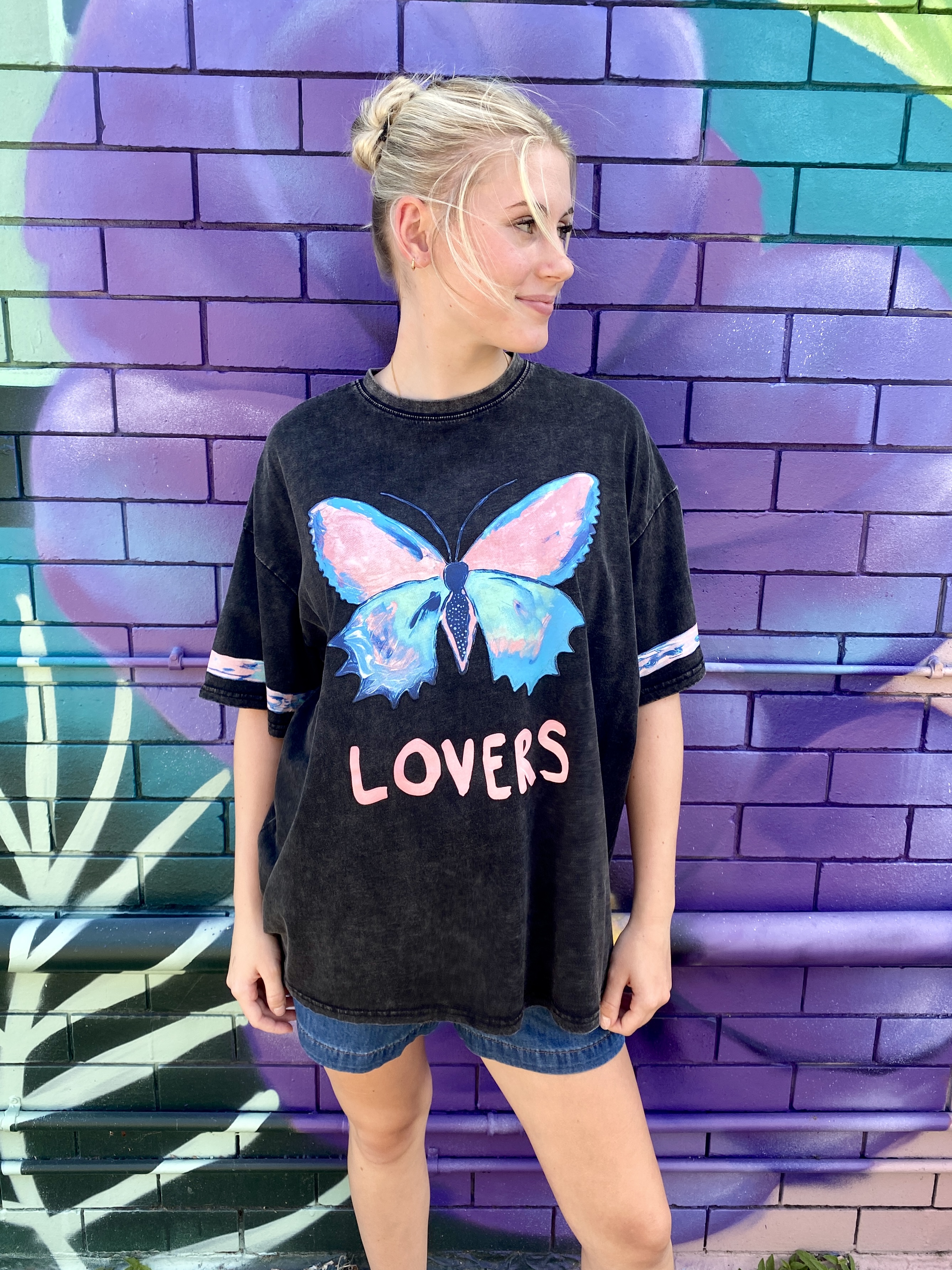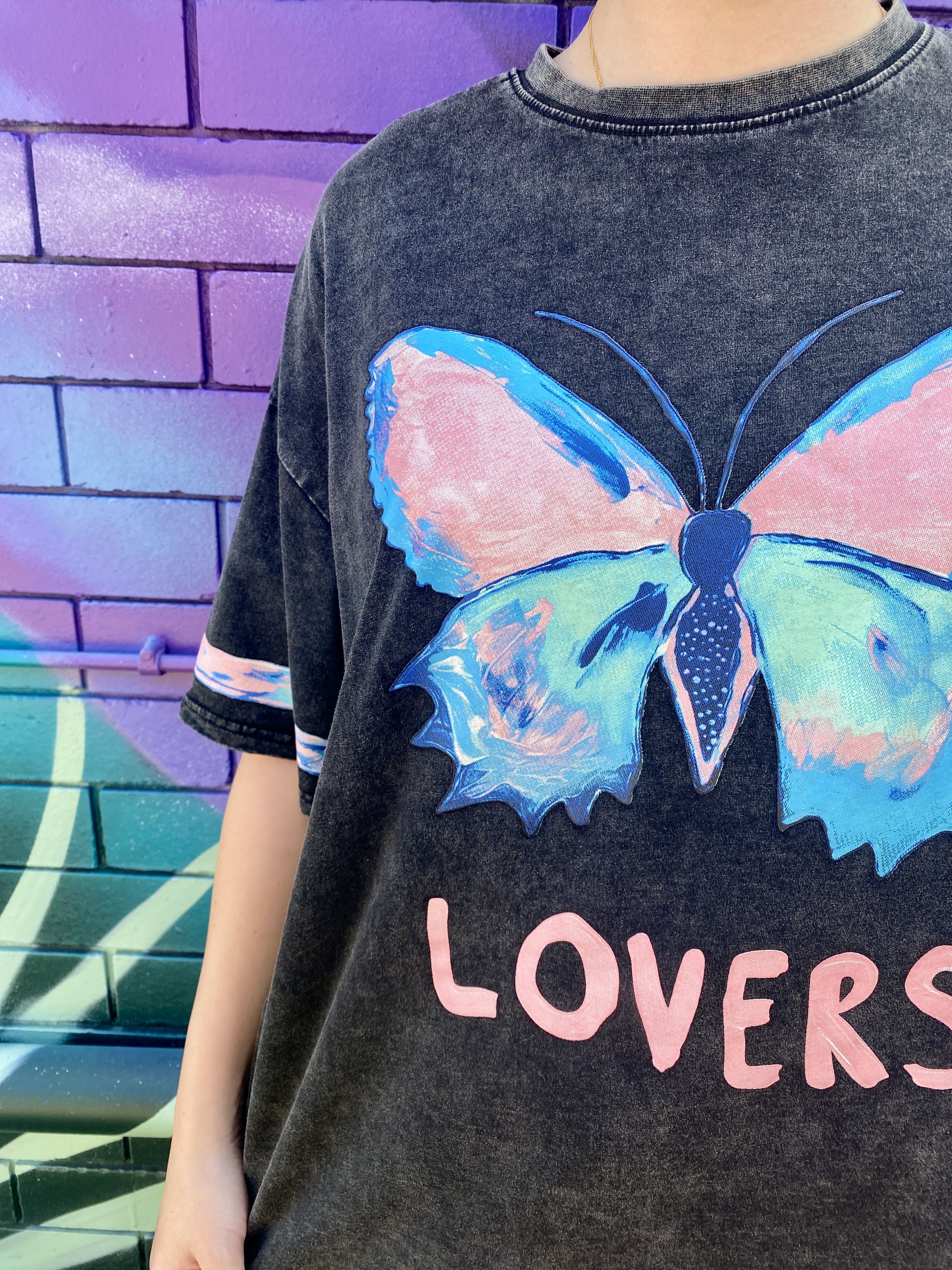 Add a bold touch to your casual rotation with the Butterfly Lovers graphic oversized T-shirt. Made from a cotton material with an oversized fit and graphic print, it’s perfect for off-duty days. Style with shorts, gold earrings and sneakers for a relaxed look.