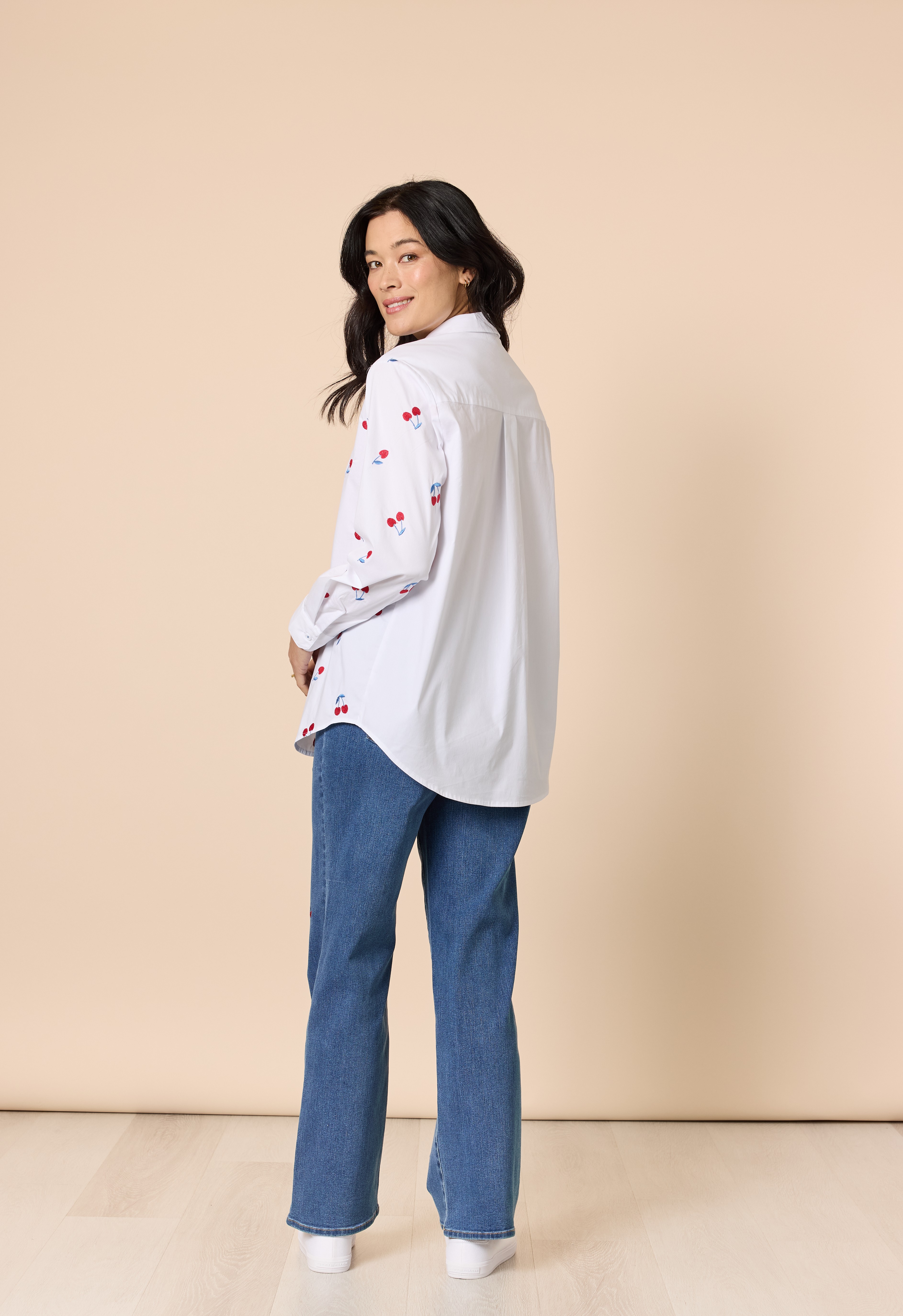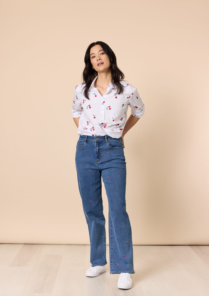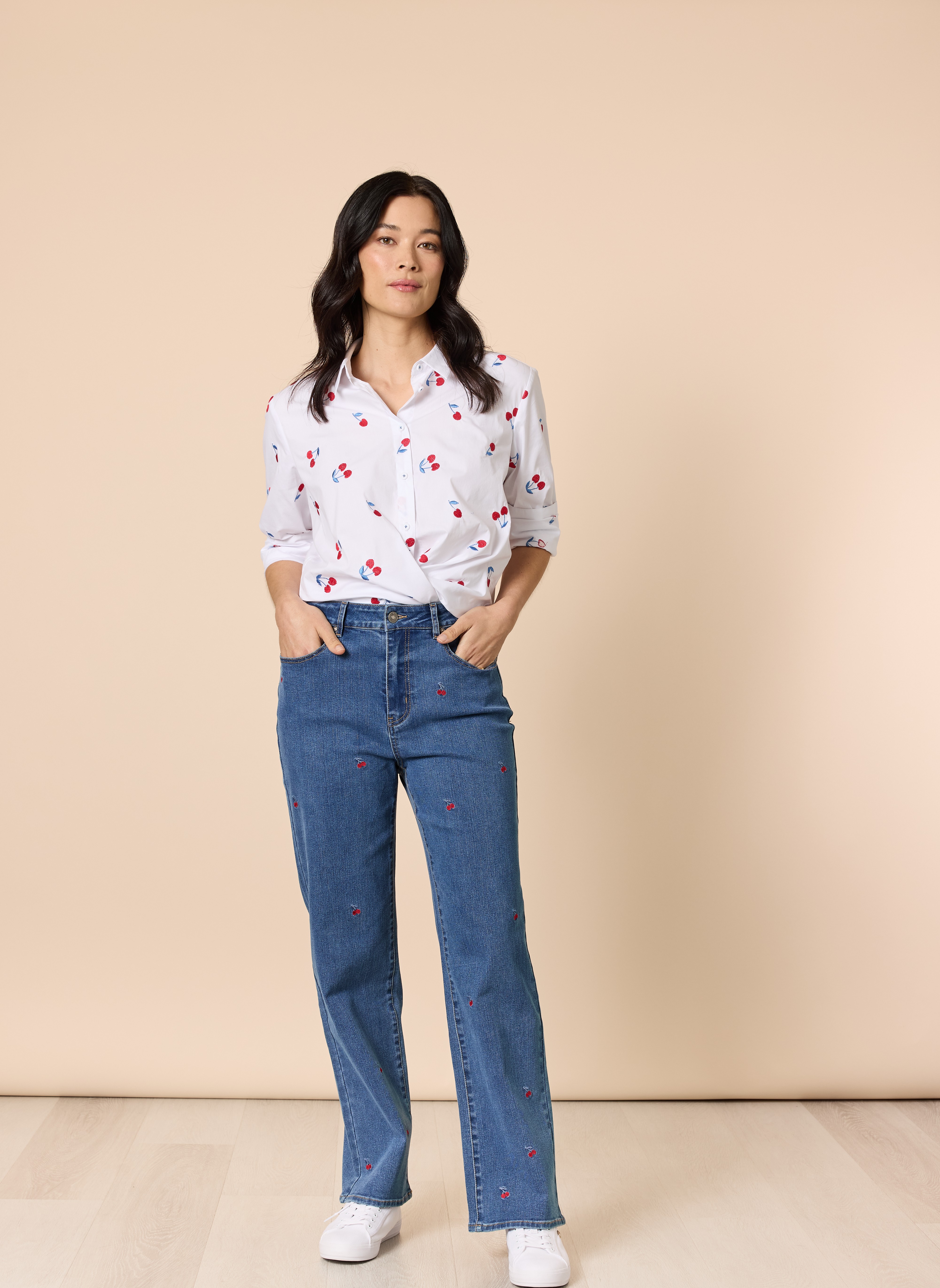 Add a playful twist to your everyday denim with these Embroidered Cherry Jeans. Crafted from soft, durable cotton denim with a touch of stretch, they feature charming cherry embroidery scattered throughout for a fun yet subtle pop of colour.