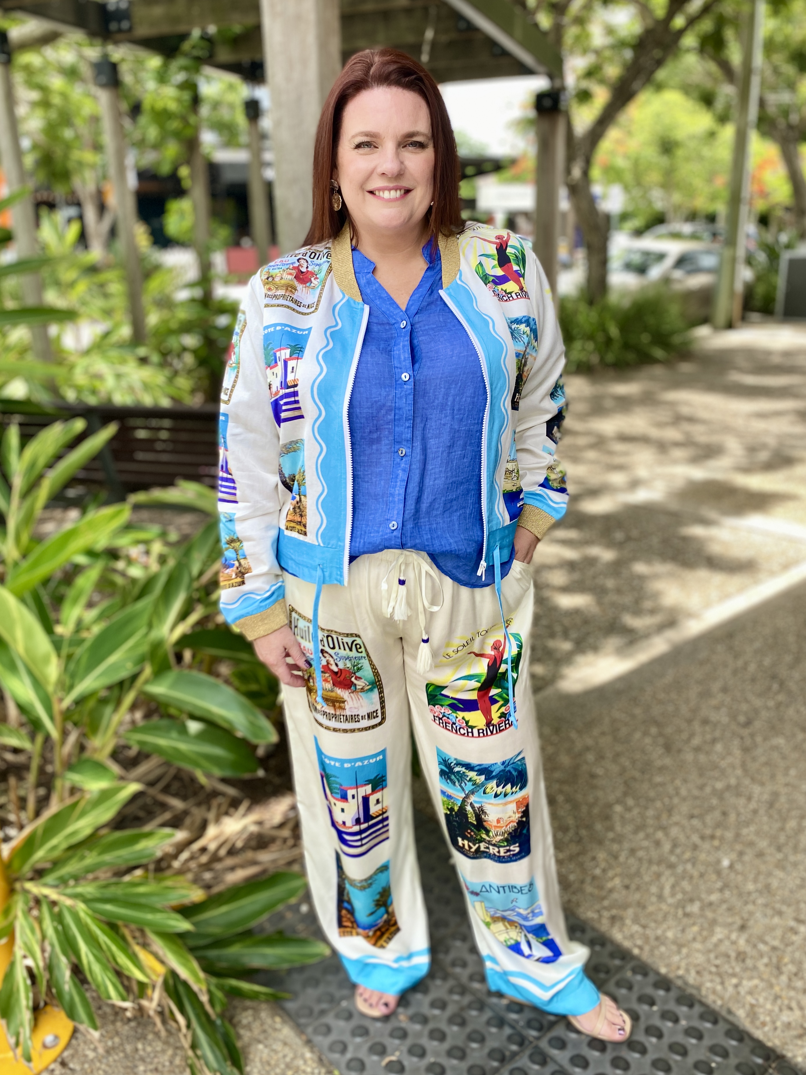 Elevate your outerwear game with the Corsica Bomber Jacket. Crafted from 100% viscose, this lightweight jacket features a gold lurex rib collar and sleeve hem for a touch of luxe. The zip-front closure and adjustable drawstring waistband ensure a perfect fit, while the contemporary design, proudly created in Australia, adds effortless style to any outfit. Perfect for layering over casual or dressy looks, the Corsica Bomber is your new wardrobe essential.
