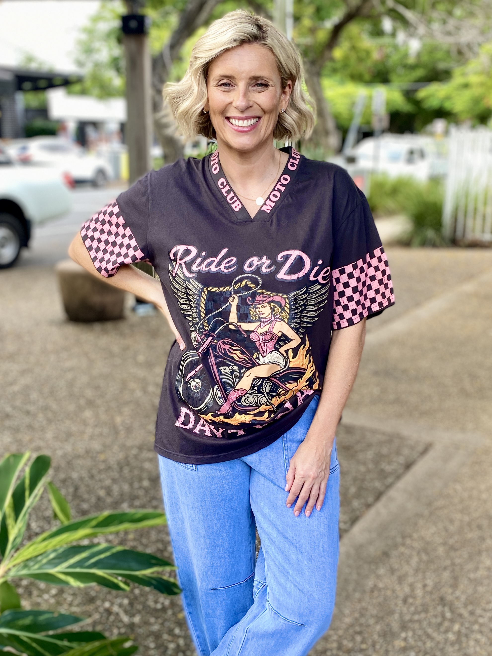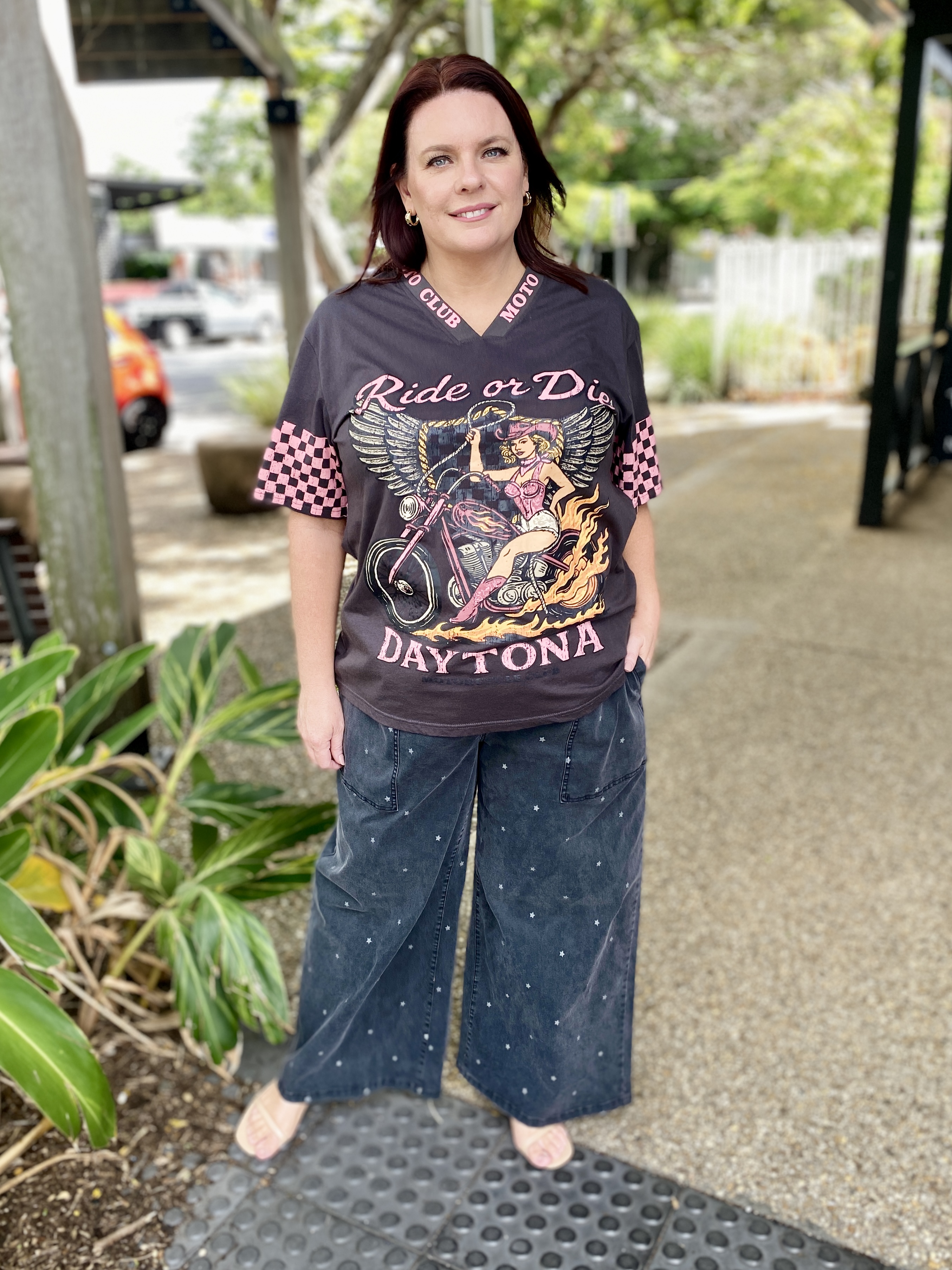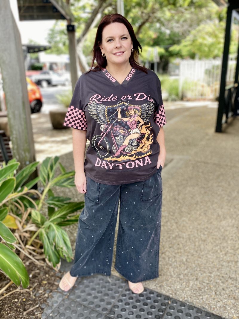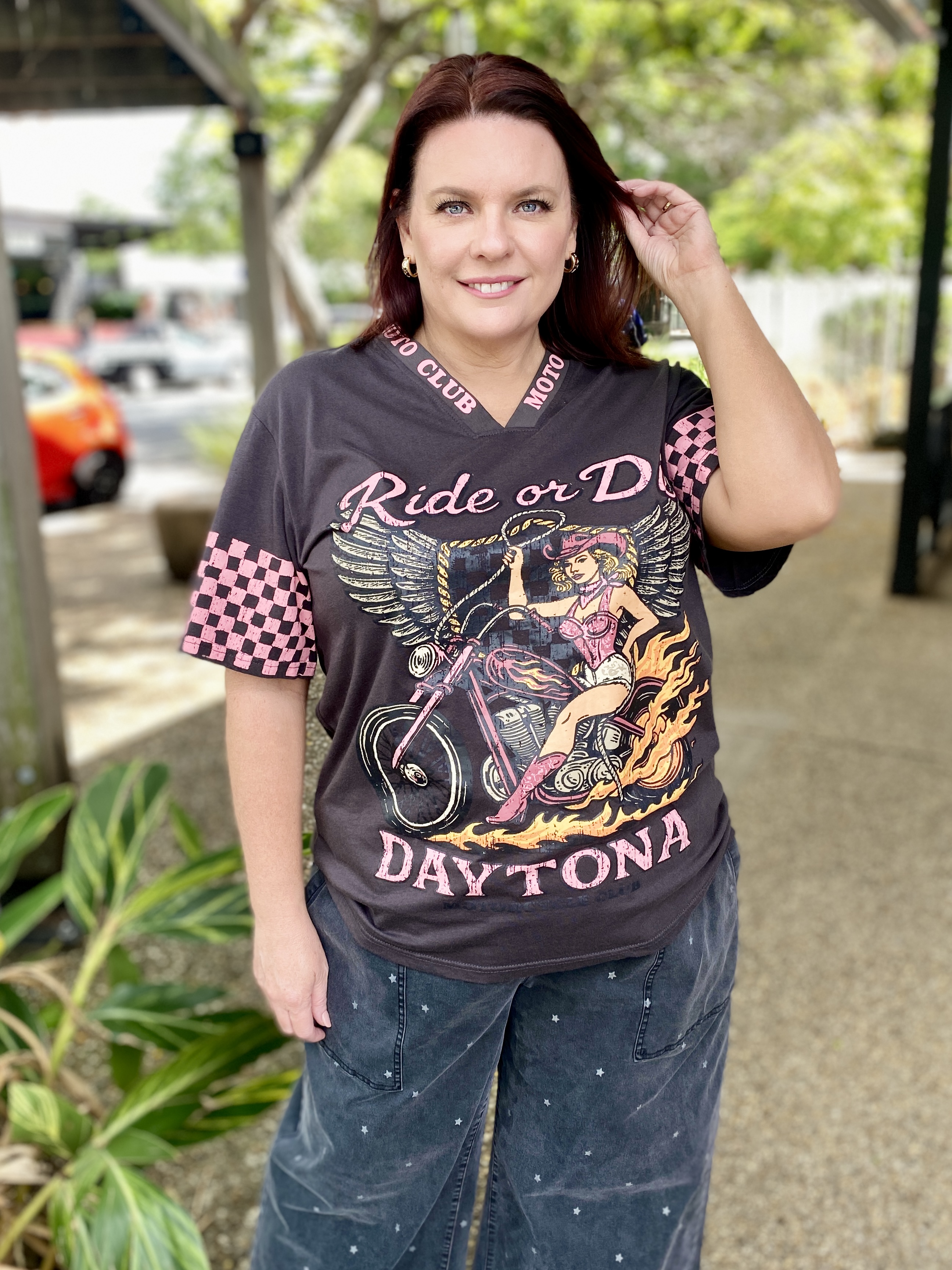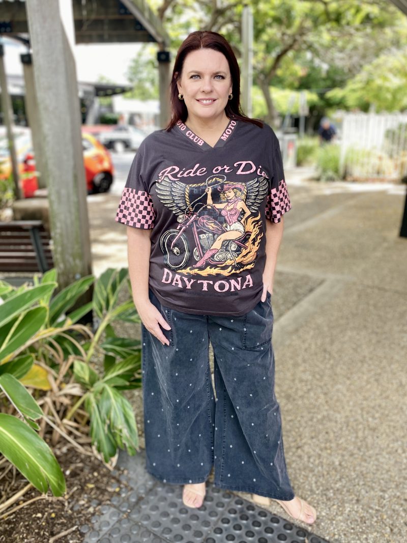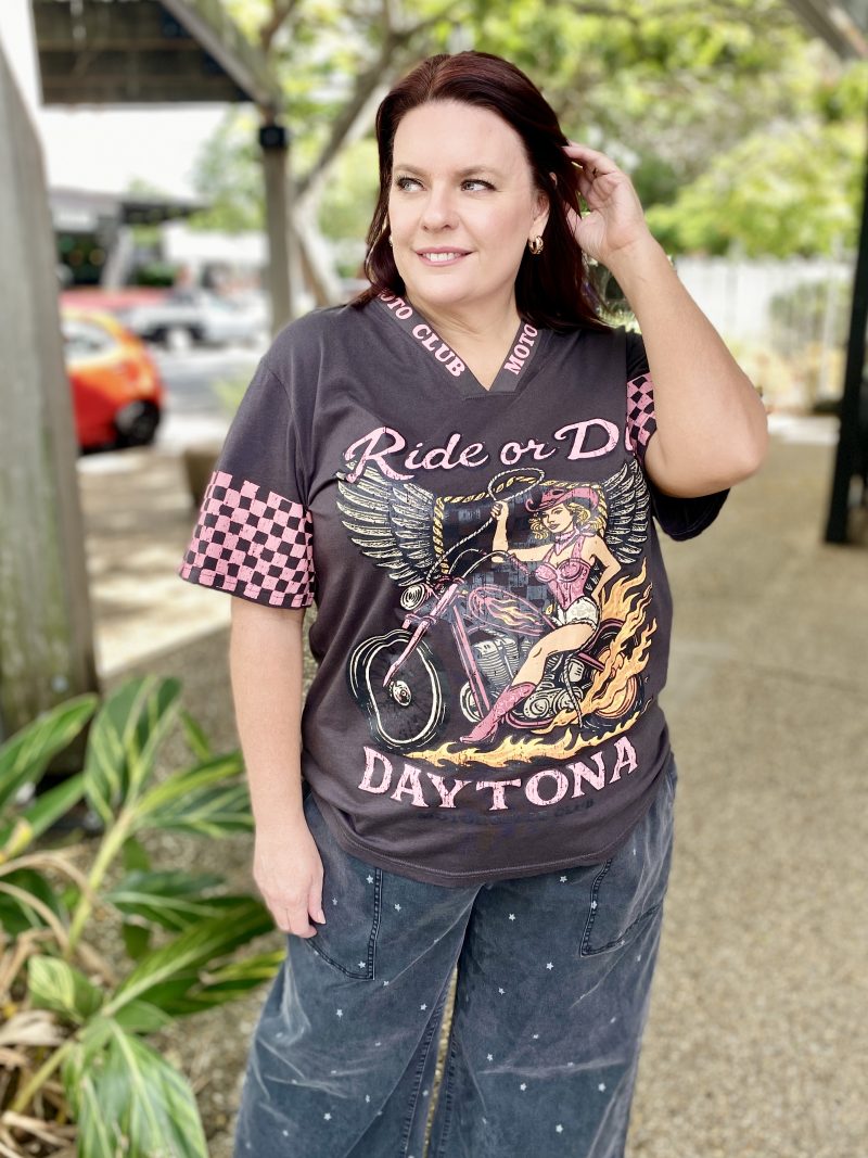 Add a bold touch to your casual rotation with the Daytona graphic oversized T-shirt. Made from a cotton material with an oversized fit and graphic print, it’s perfect for off-duty days. Style with shorts, gold earrings and sneakers for a relaxed look.