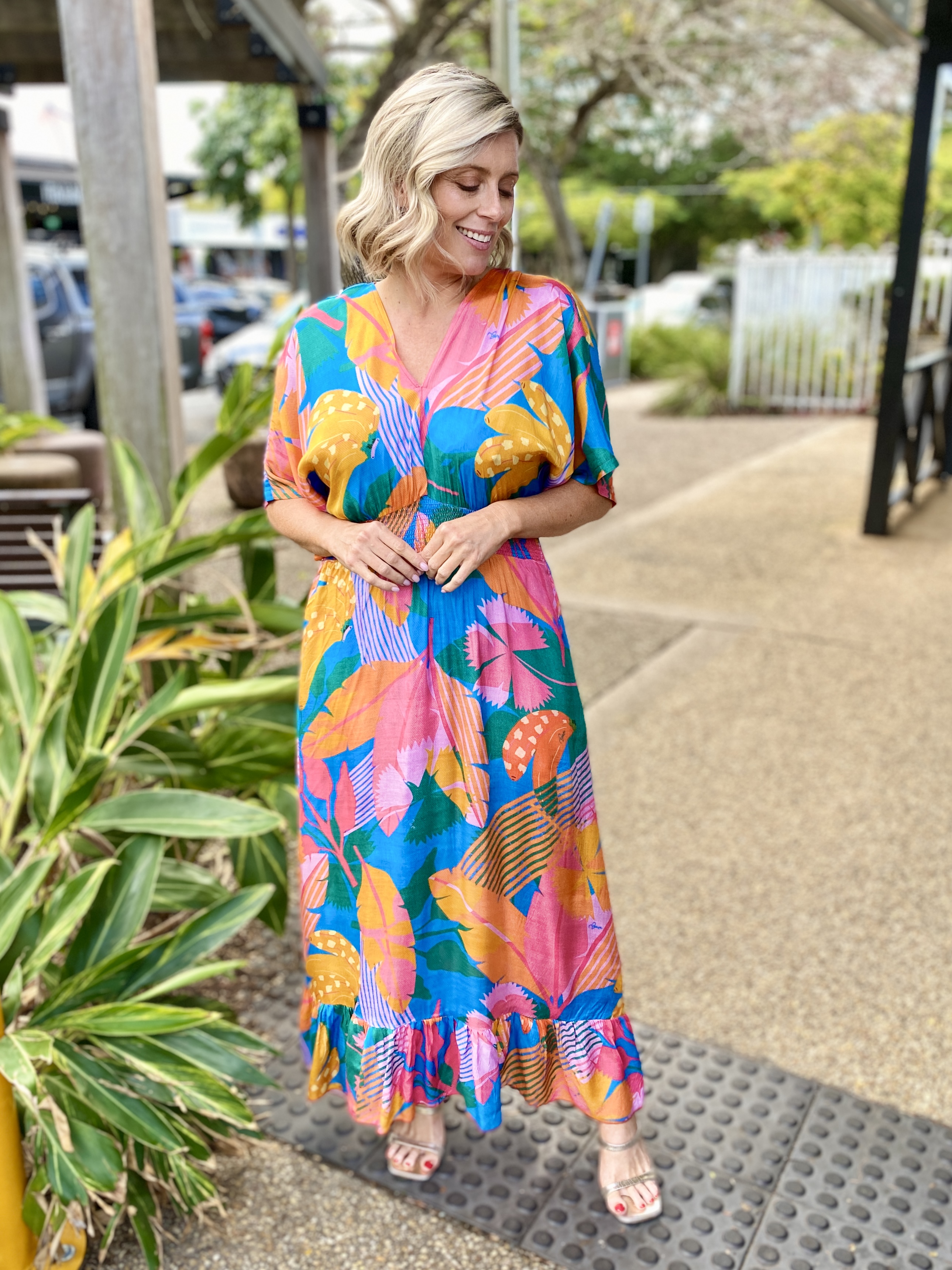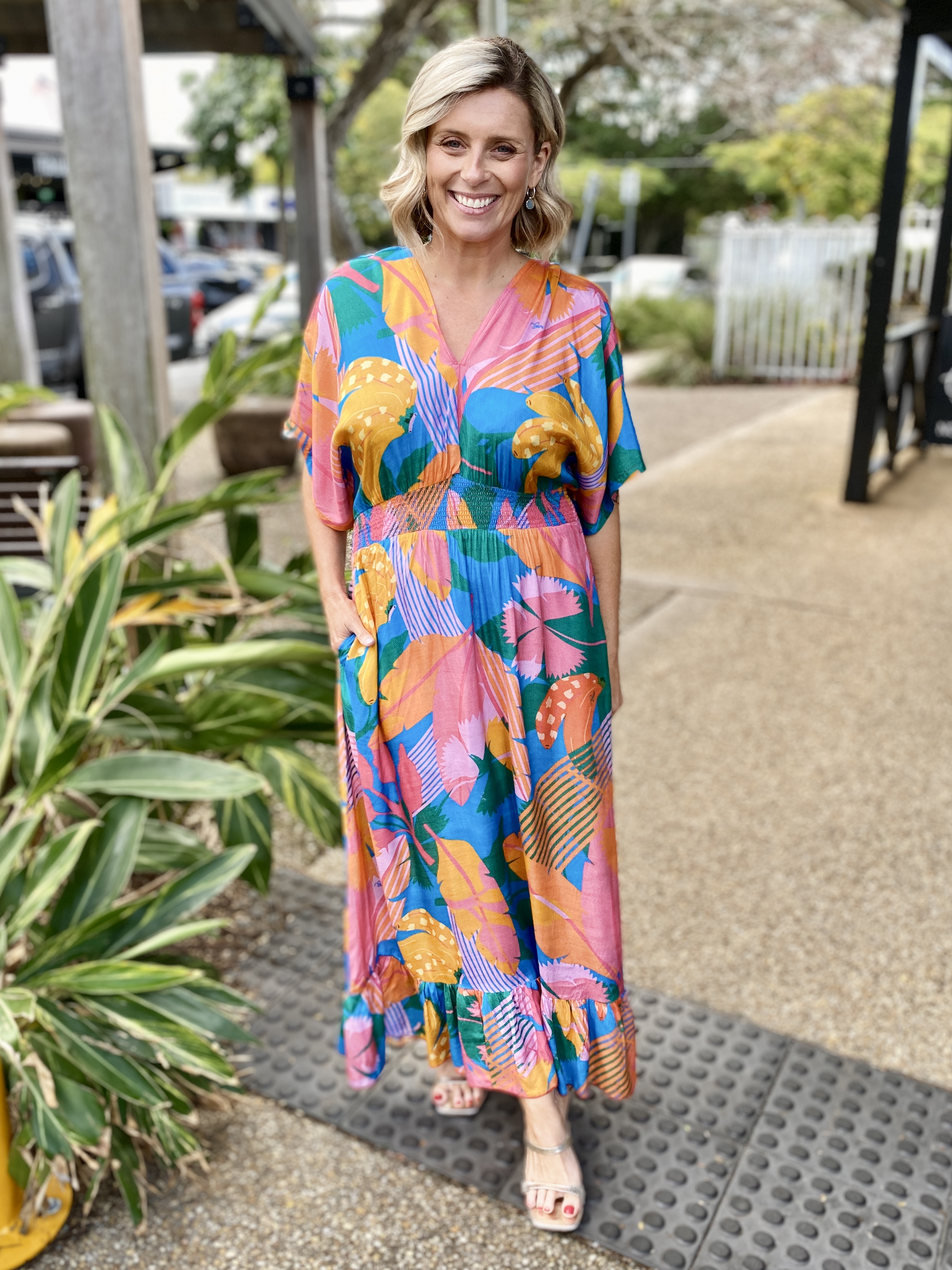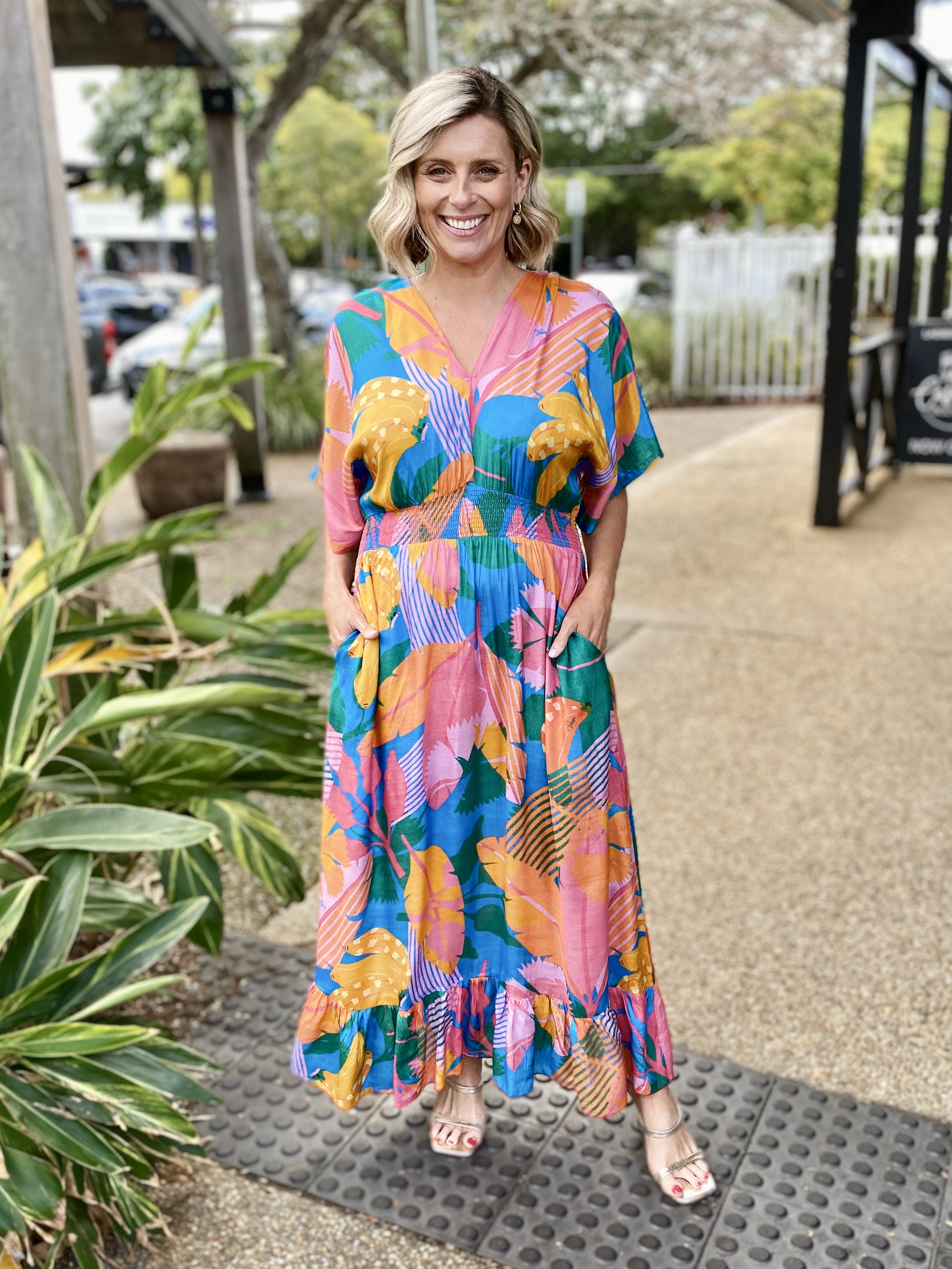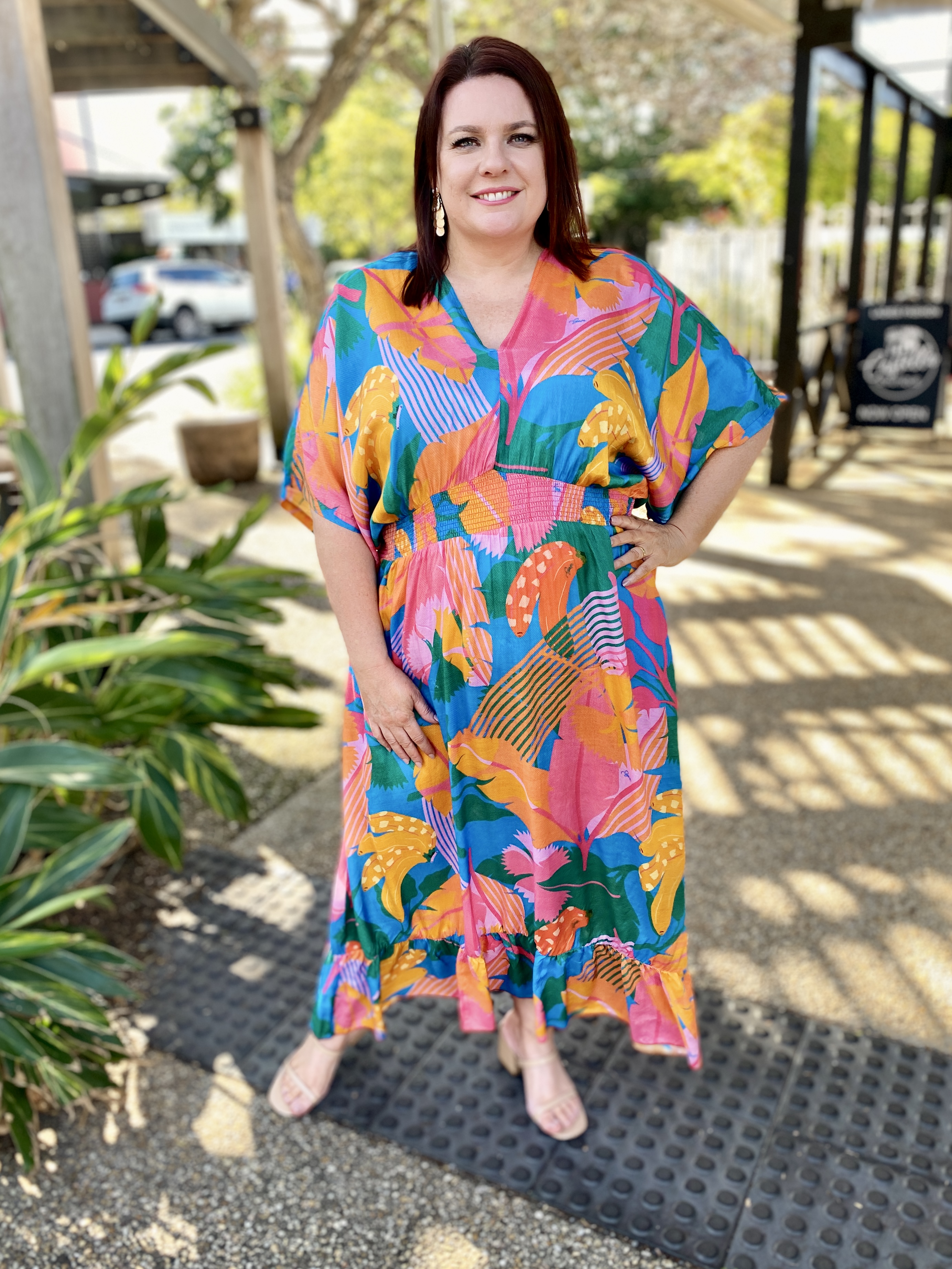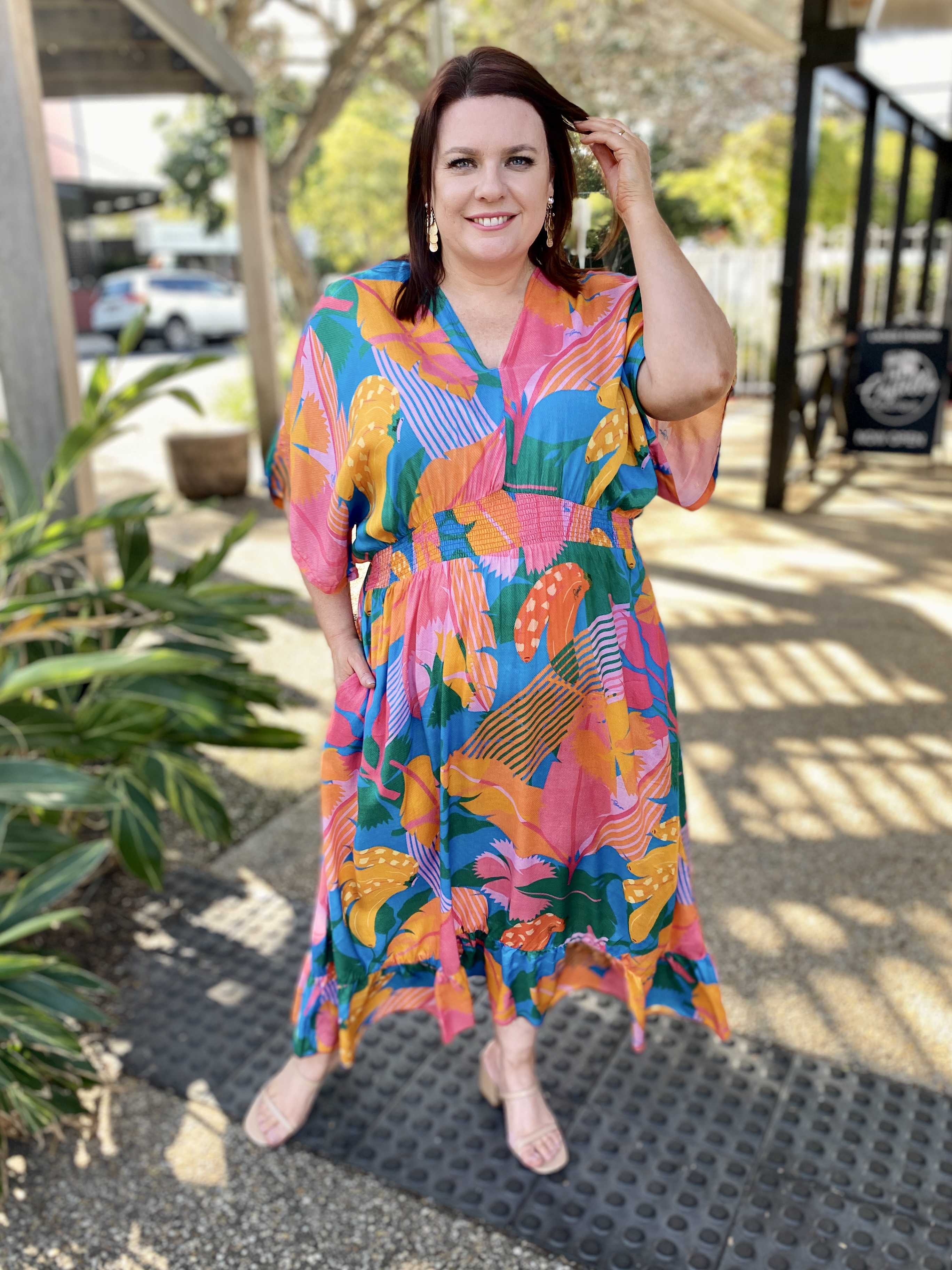 Unveil your grace with the breathtaking Emelia Shirred Waist Dress. Crafted from 100% rayon, its tiered silhouette flows with ease, while a soft shirred waistband ensures all-day comfort. Gorgeous colourful prints make these the make these a vibrant and playful choice for summer!