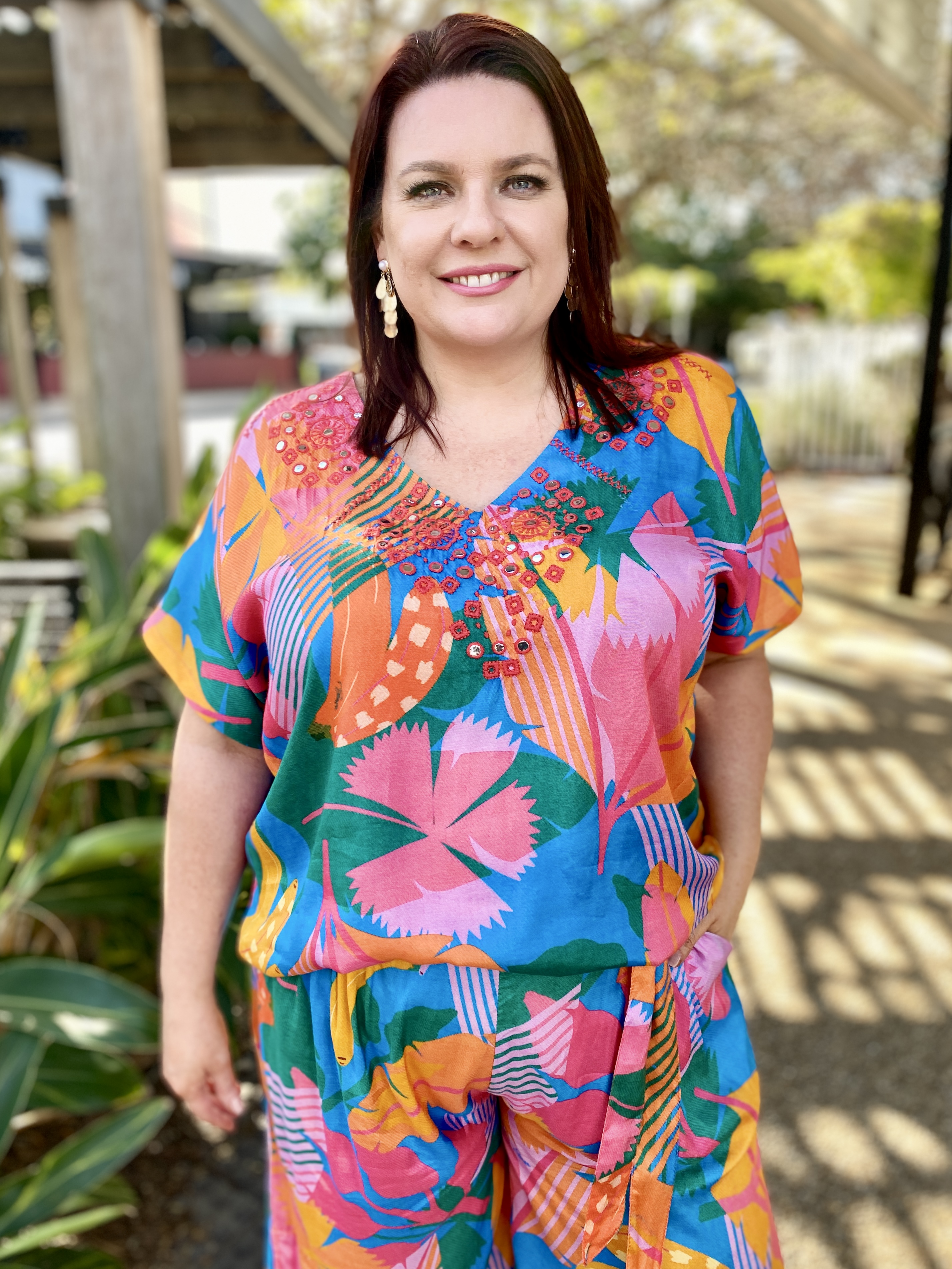 Step into a dream with the breathtaking Emelia V Short Sleeve Top. Awaken your inner soul and bask in the vibrant allure of colour that awakens a playful spirit of this perfect addition to your summer wardrobe, blending style and ease!