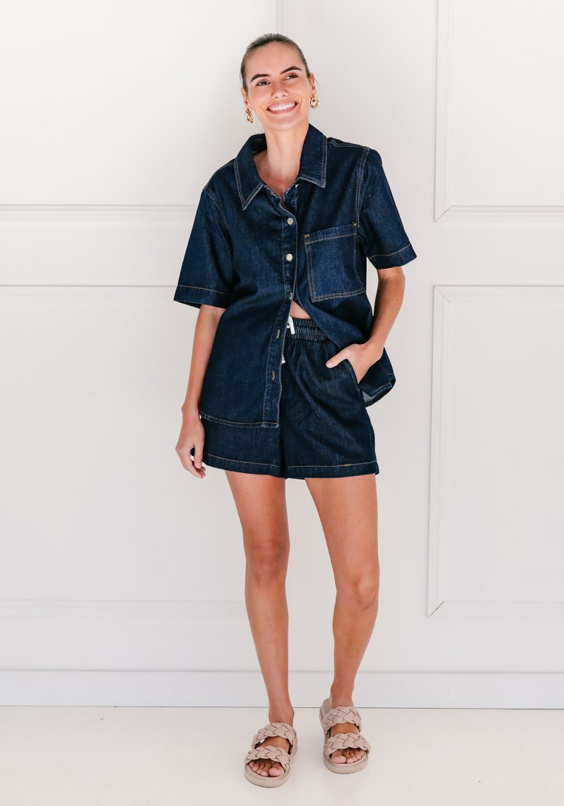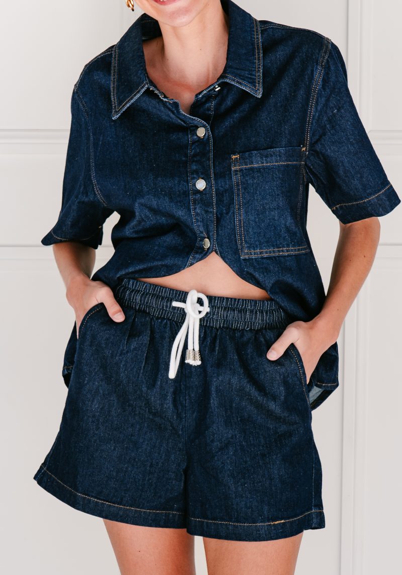 Our Emma Denim Drawstring Shorts is part of a matching set, the perfect combination of comfort and style. With an elasticated waistband and a drawstring closure, these shorts offer a relaxed fit that’s both flattering and easy to wear. Made from soft denim, they provide a casual yet chic look, ideal for laid-back days or weekend outings. Paired with our matching Emma denim shirt, this set creates a coordinated, effortless outfit. The look exudes a playful, easy going vibe, perfect for anyone who loves comfortable, stylish clothing