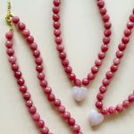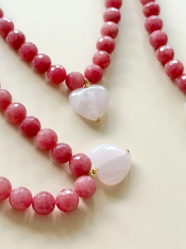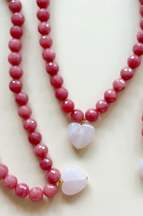 • Semi Precious stone necklace in pink strawberry faceted jade.