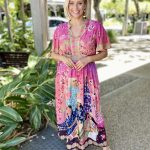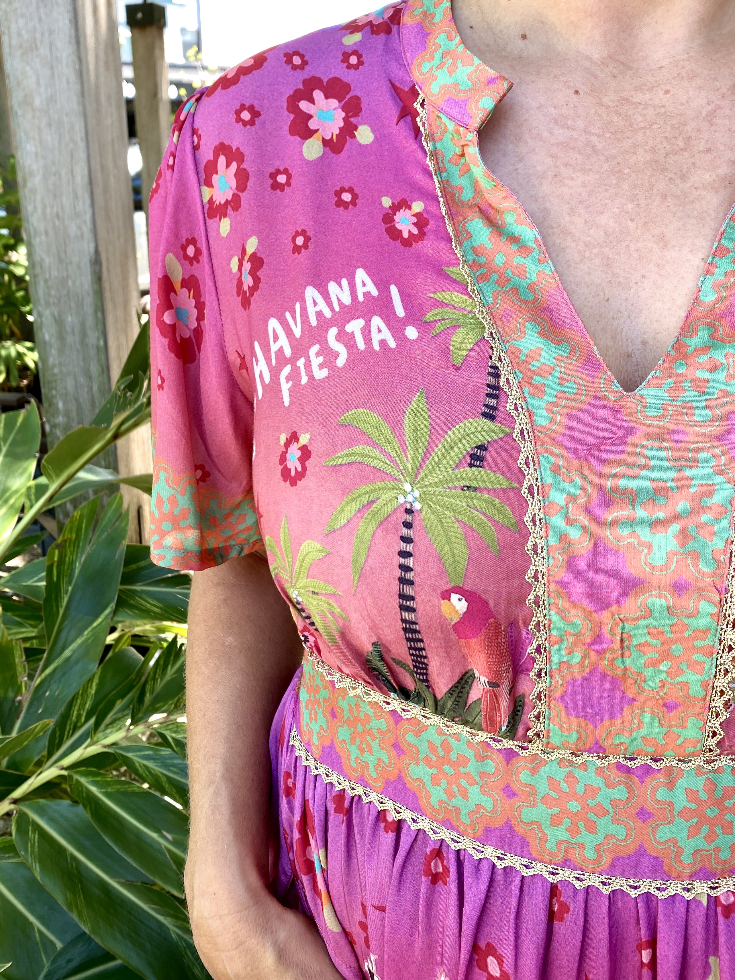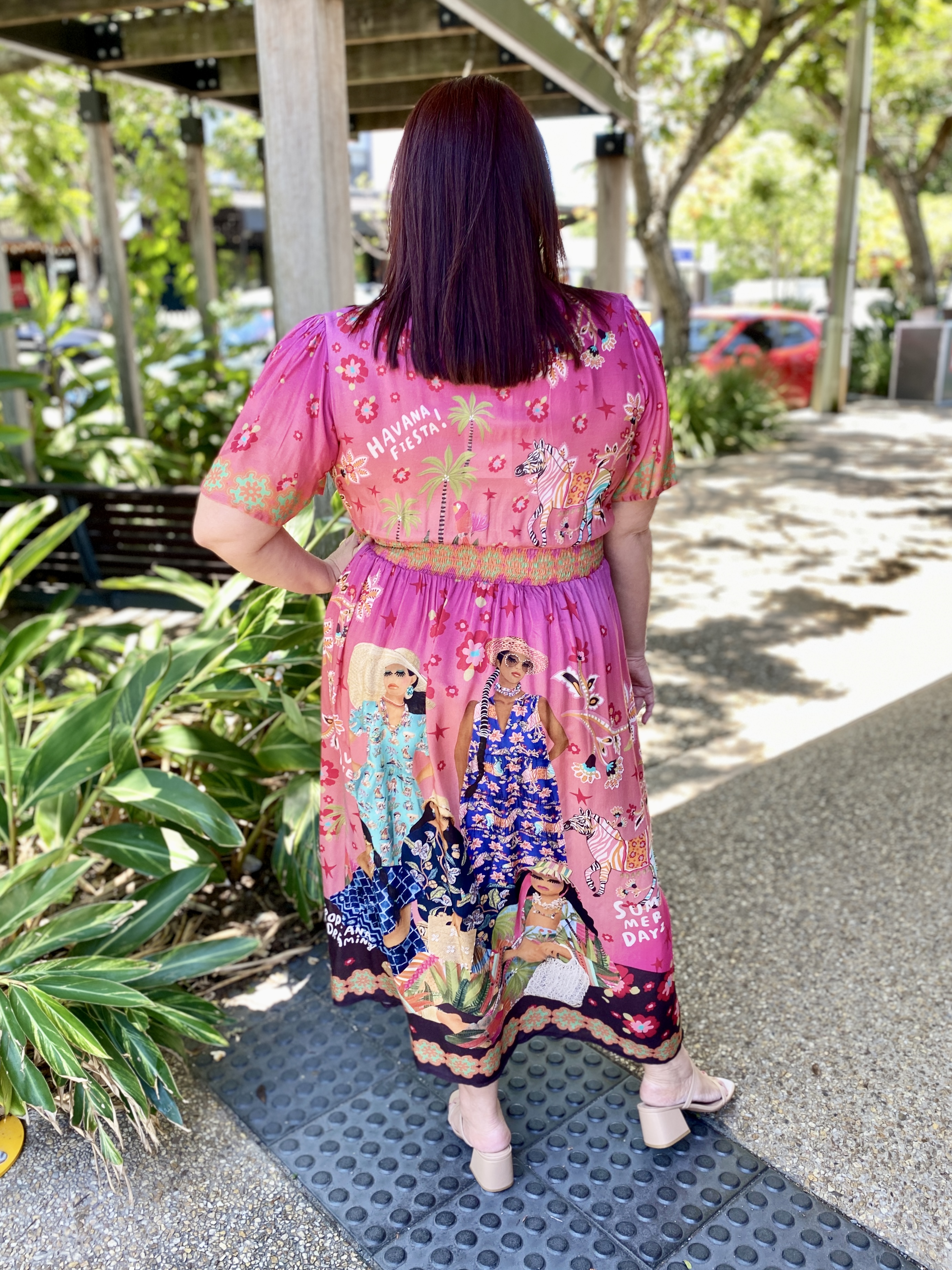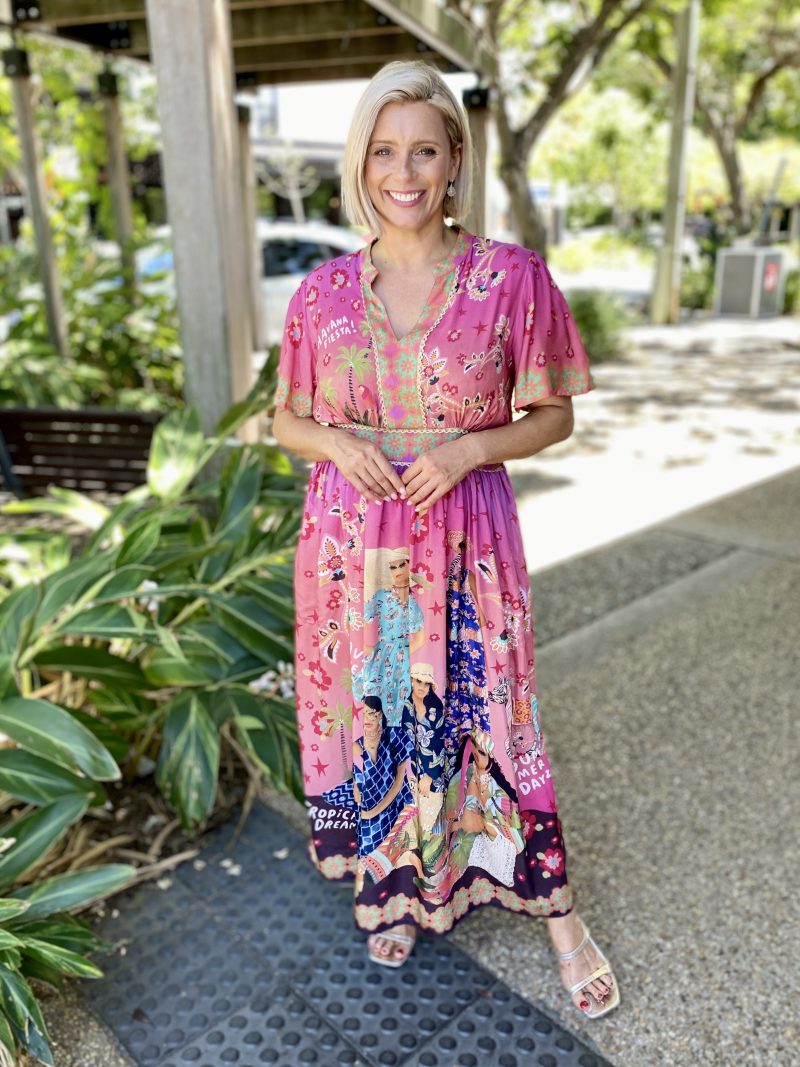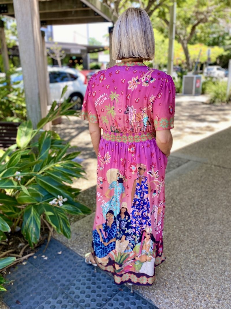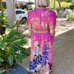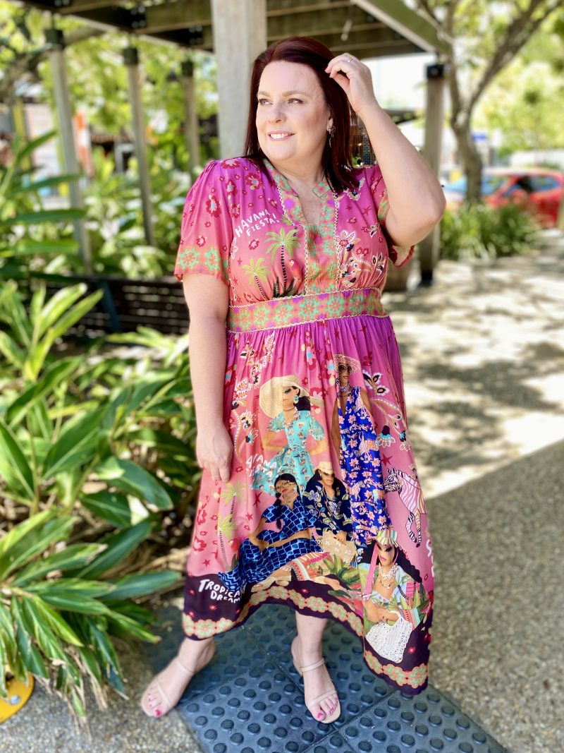 Colourful, feminine, and effortlessly flattering, the Fiesta Midi Dress is designed to brighten your everyday style. Crafted from smooth 100% satin modal, it offers a soft, lightweight drape that feels beautiful on the skin. The Nauru collar and V-neckline create a fresh, modern look, while the gathered bodice and empire band—shirred at the back for comfort—provide a flattering silhouette. The A-line skirt moves gracefully, side pockets add practicality, and the above-elbow sleeves give it an easy, polished feel. Finished in an exclusive digital print and designed in Australia, this below-calf midi is the perfect mix of comfort, colour, and contemporary style.