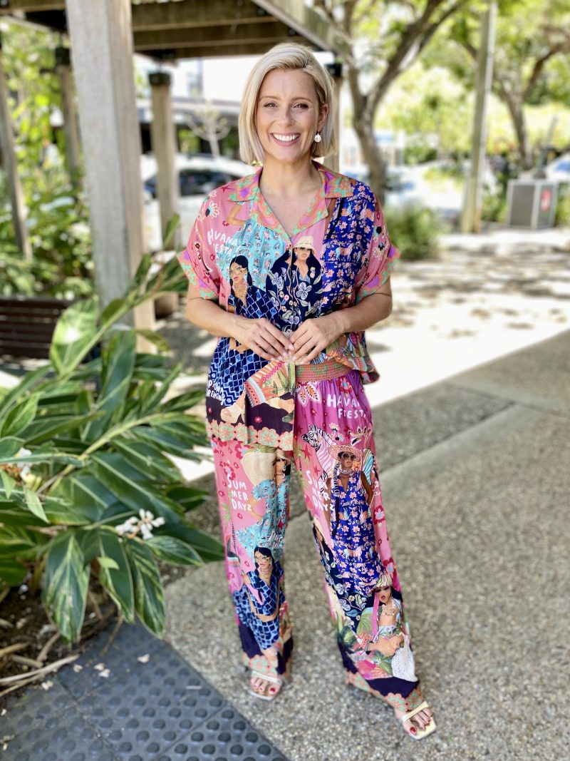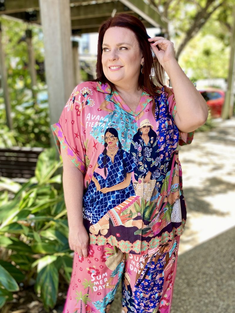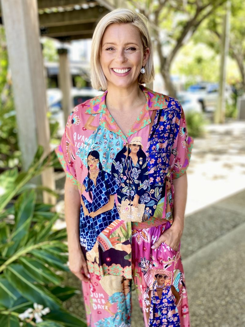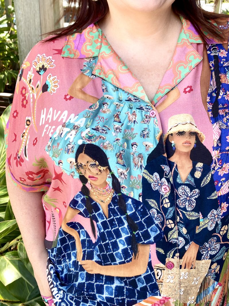Bright, fun, and effortlessly polished, the Fiesta Shirt is designed to bring colour and ease to your everyday wardrobe. Crafted from smooth 100% satin modal, it drapes softly with a silky, lightweight feel. The relaxed fit, lapelled collar, and full button-through front keep the look clean and versatile, while the short sleeves with cuffs add a modern, tailored touch. Finished with an exclusive digital print and Australian-designed flair, this shirt pairs perfectly with denim, linen, or the matching Fiesta Pant for a bold, standout set.