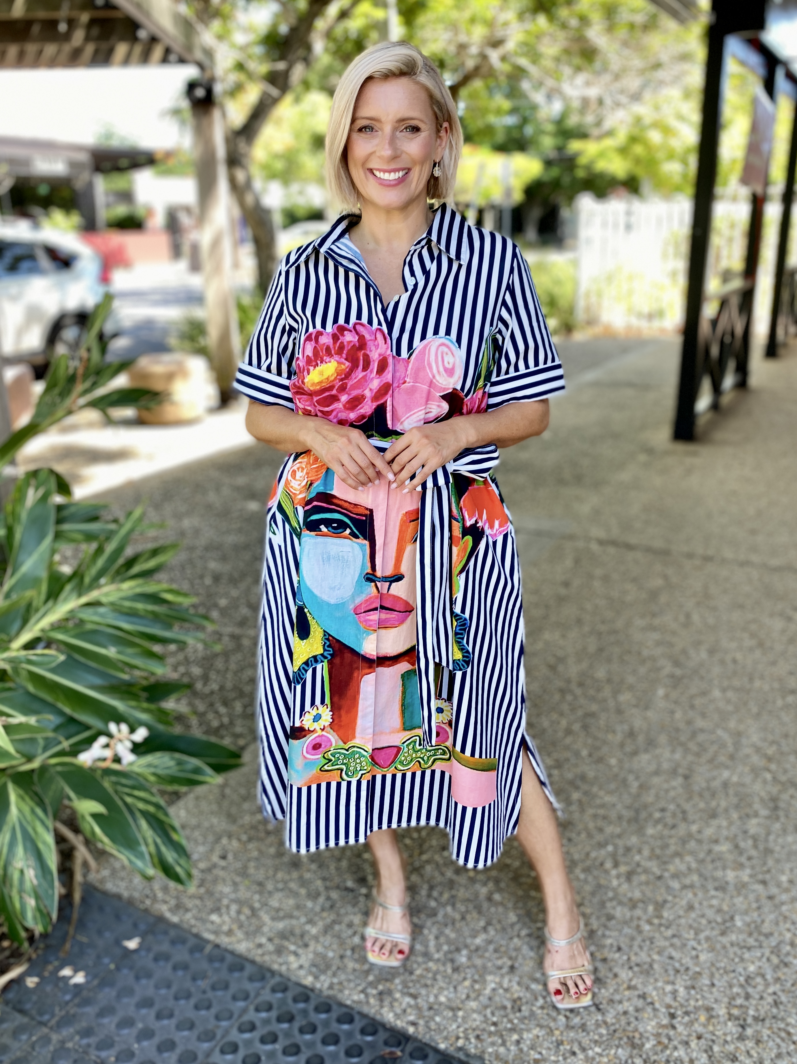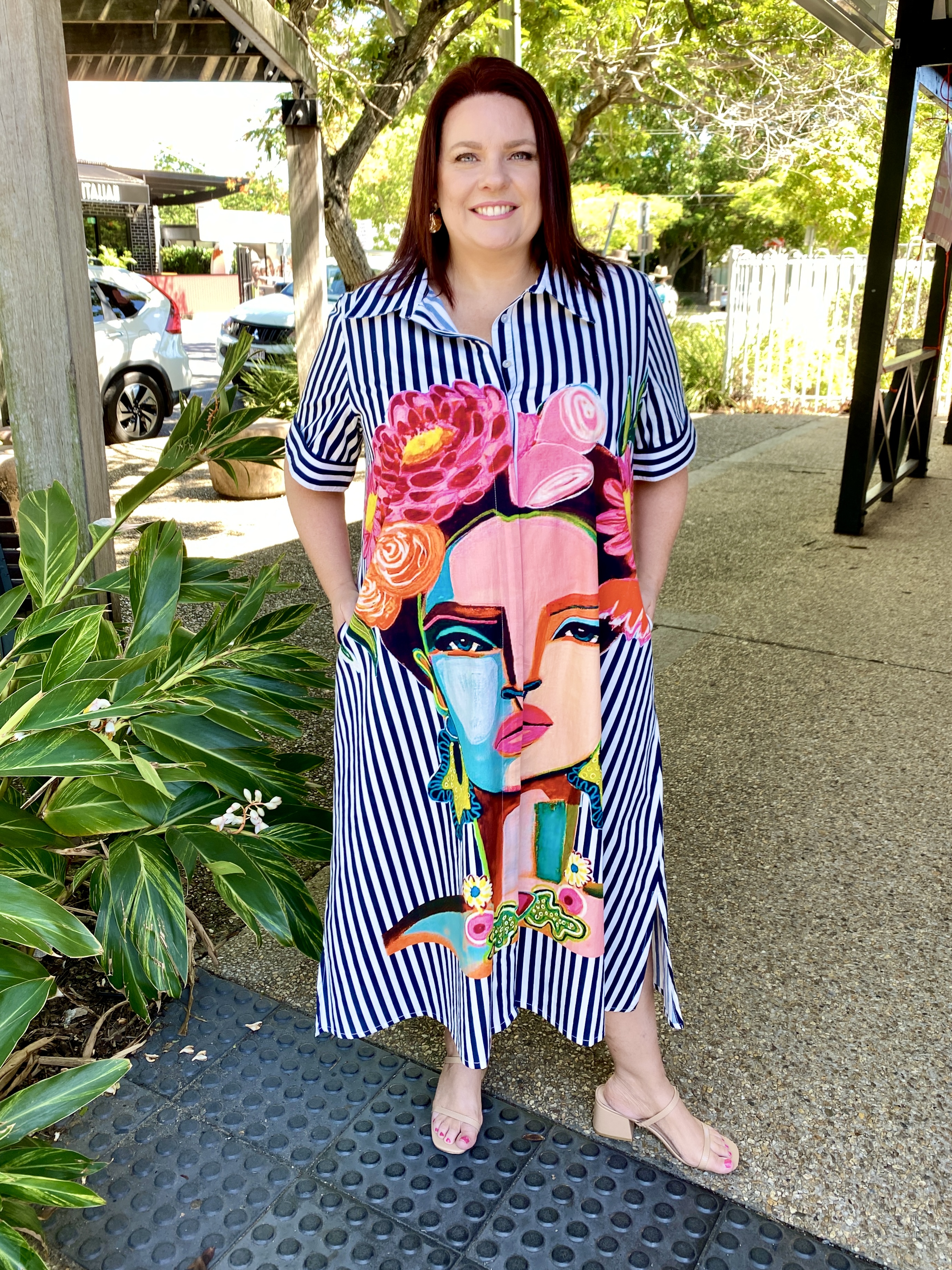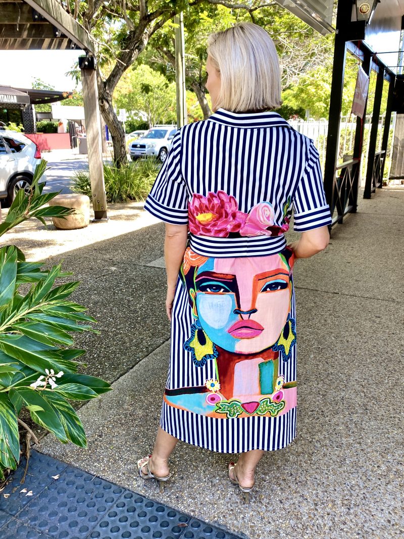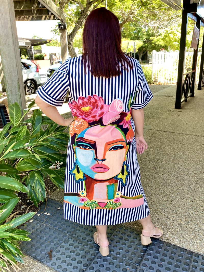 Introducing our fabulous Frida Dress in navy with short sleeves for Summer. Made from 100% cotton, it effortlessly combines playful style with comfort.