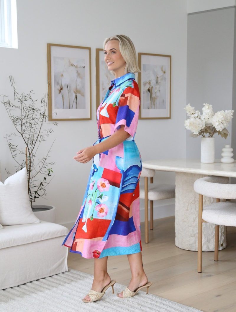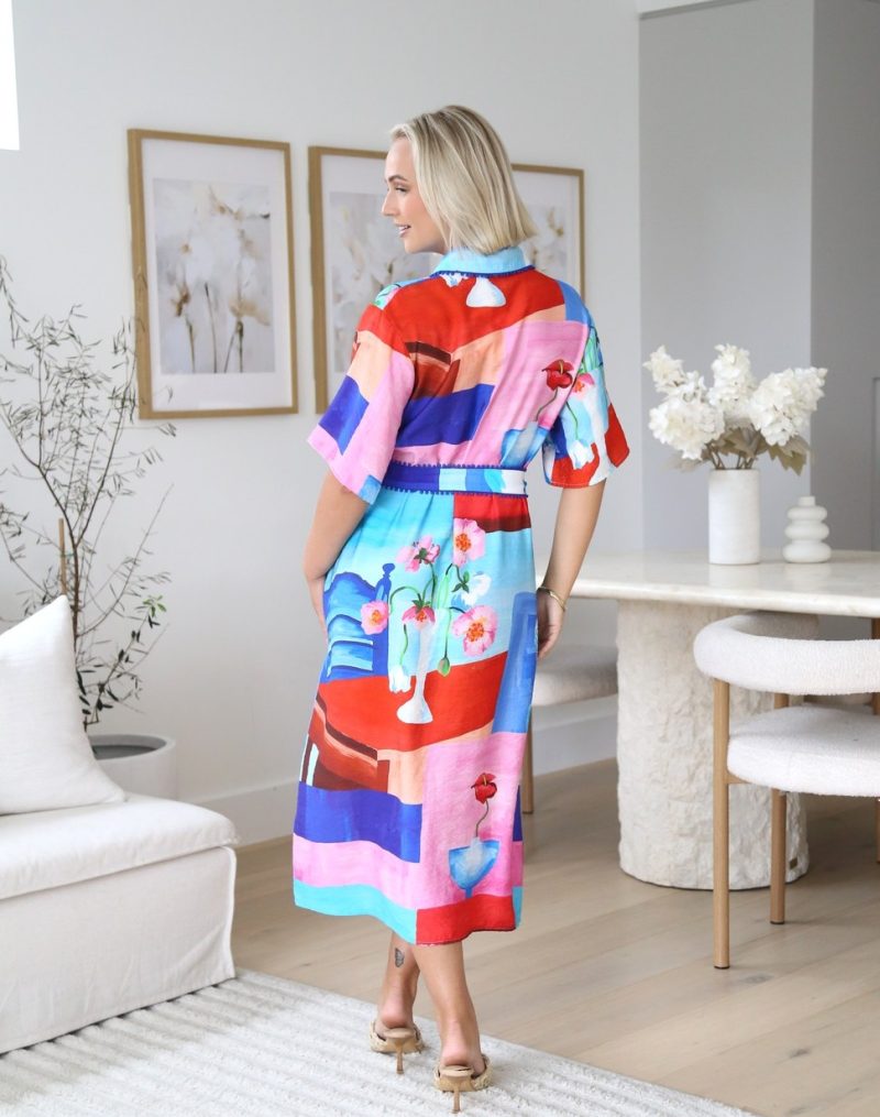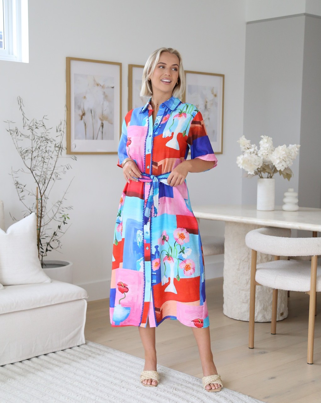 The Lexie Midi Shirt Dress brings a romantic flair to your everyday wardrobe. Featuring a vibrant print, it blends charm with a relaxed polish that’s perfect for desk-to-dinner dressing.