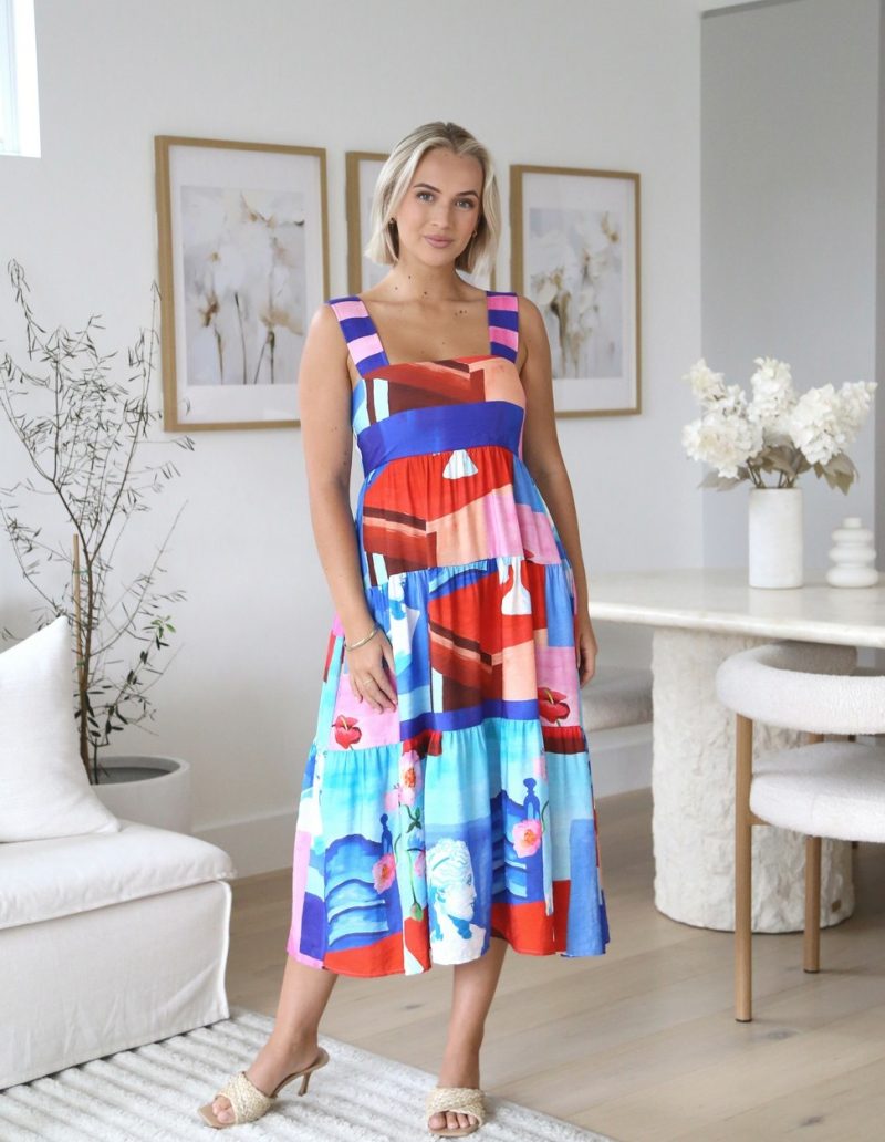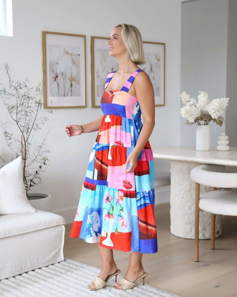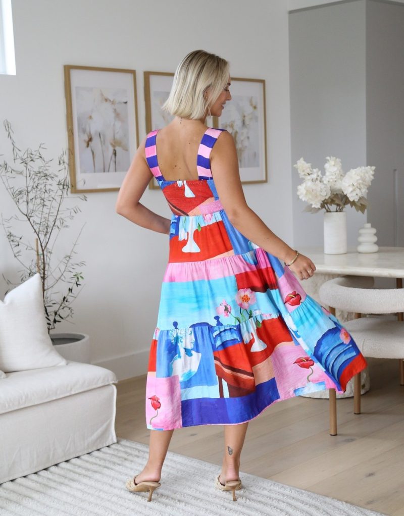Sun-drenched brunches, beachside strolls and spontaneous getaways call for the Lexie Midi Sundress. Designed to keep you cool, stylish and effortlessly put together, this vibrant midi is made for all your warm-weather plans.