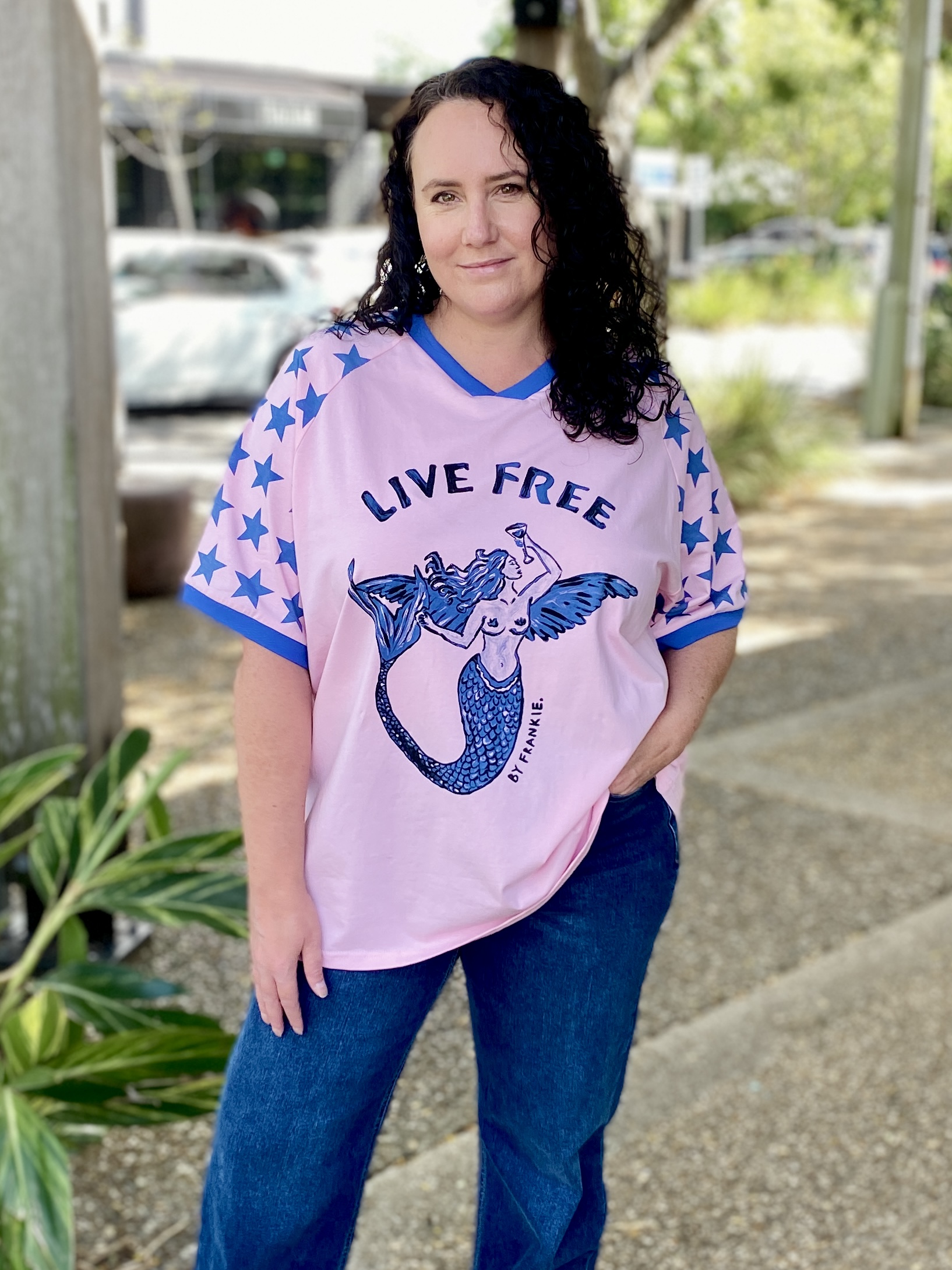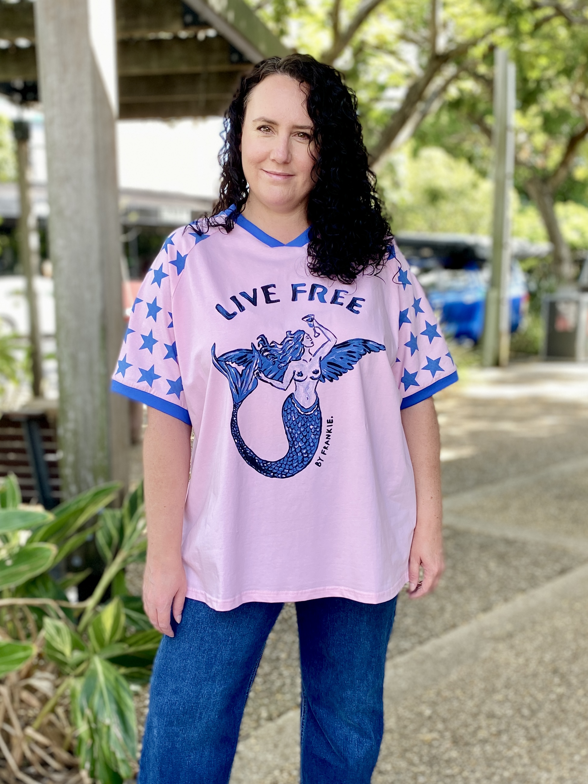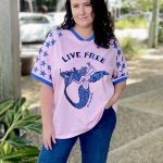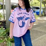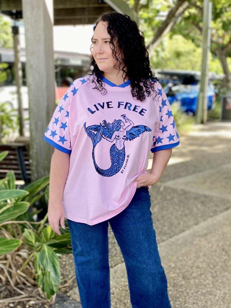 Add a bold touch to your casual rotation with the Live Free graphic oversized T-shirt. Made from a cotton material with an oversized fit and graphic print, it’s perfect for off-duty days. Style with shorts, gold earrings and sneakers for a relaxed look.