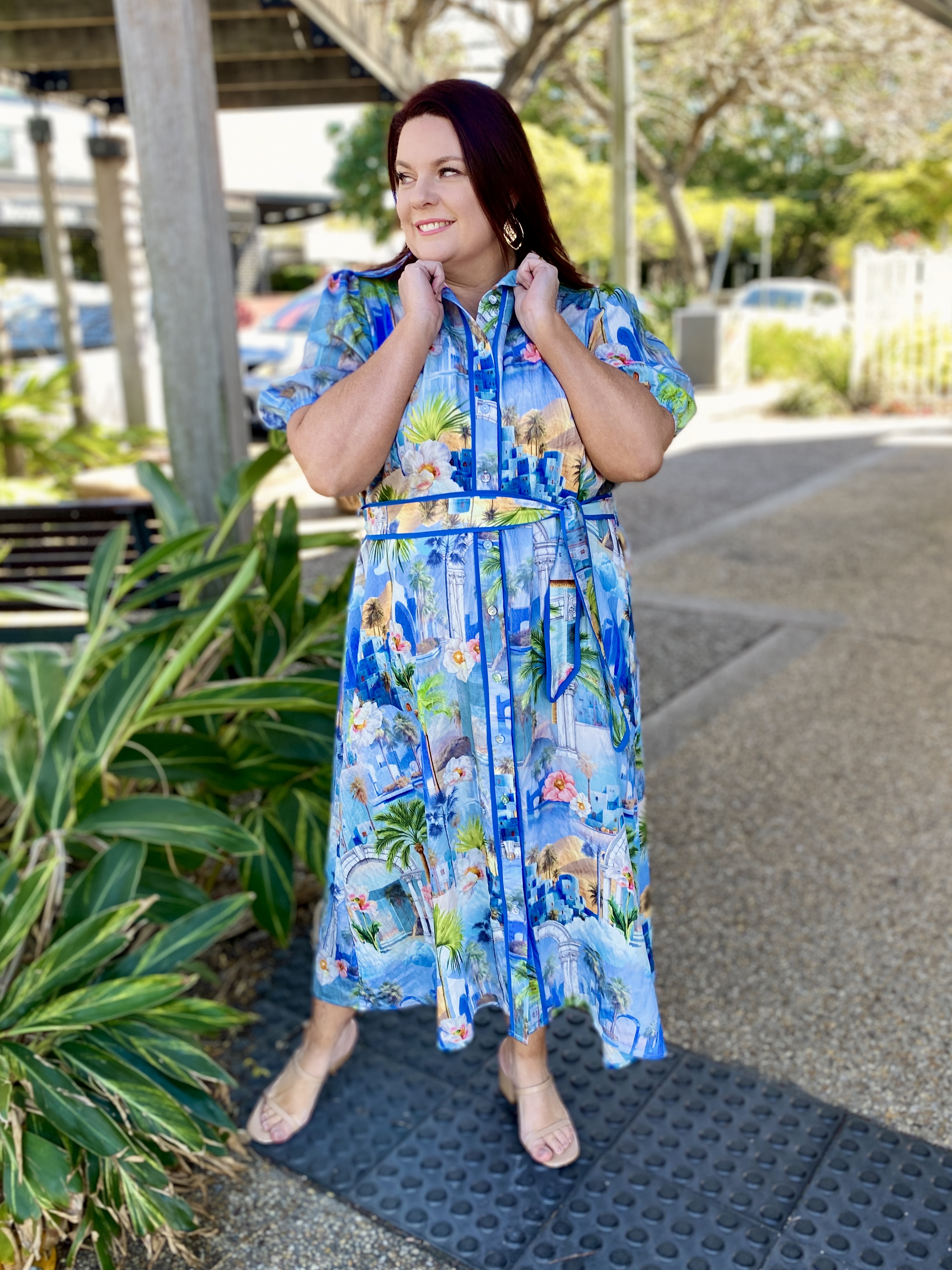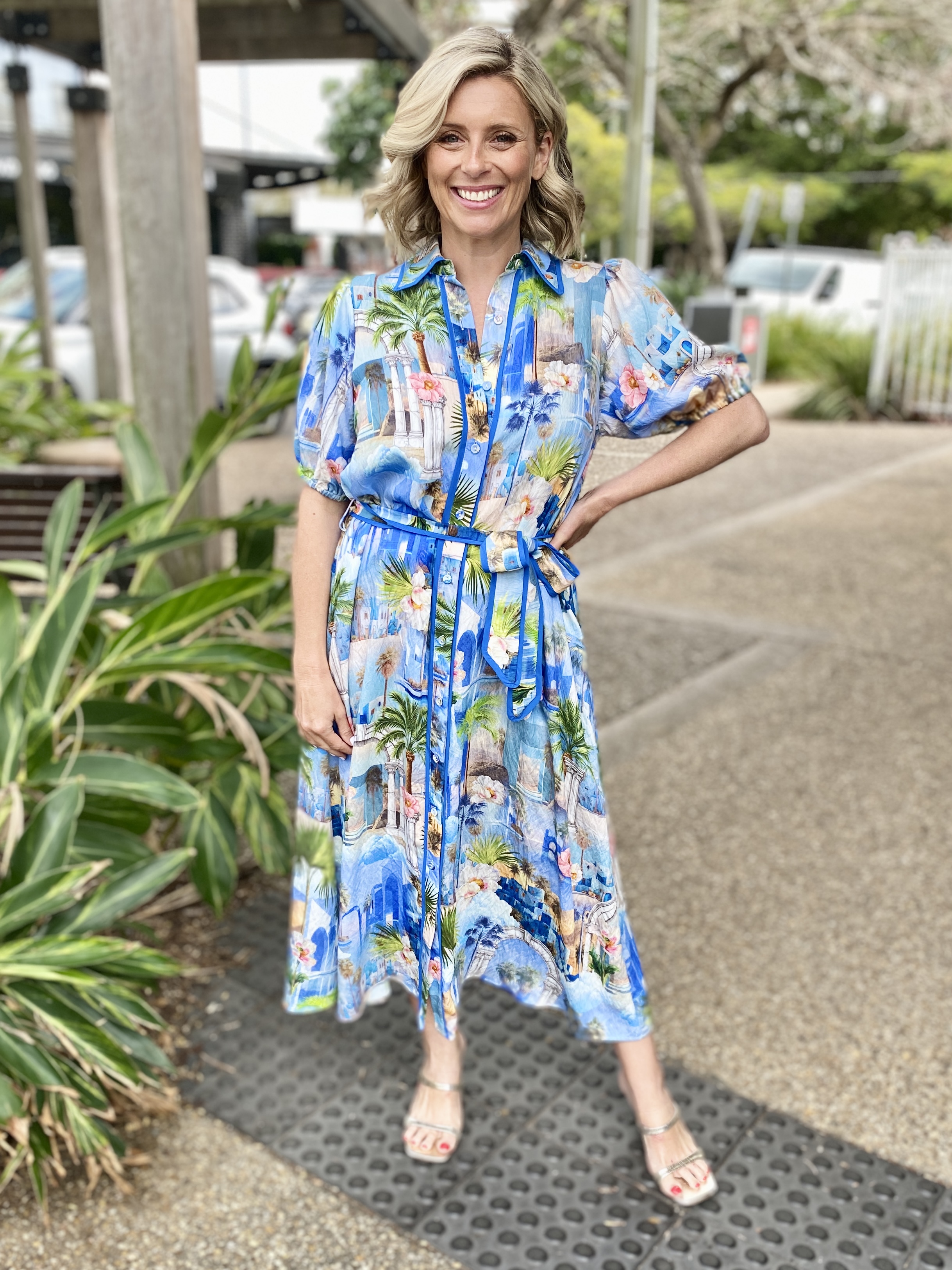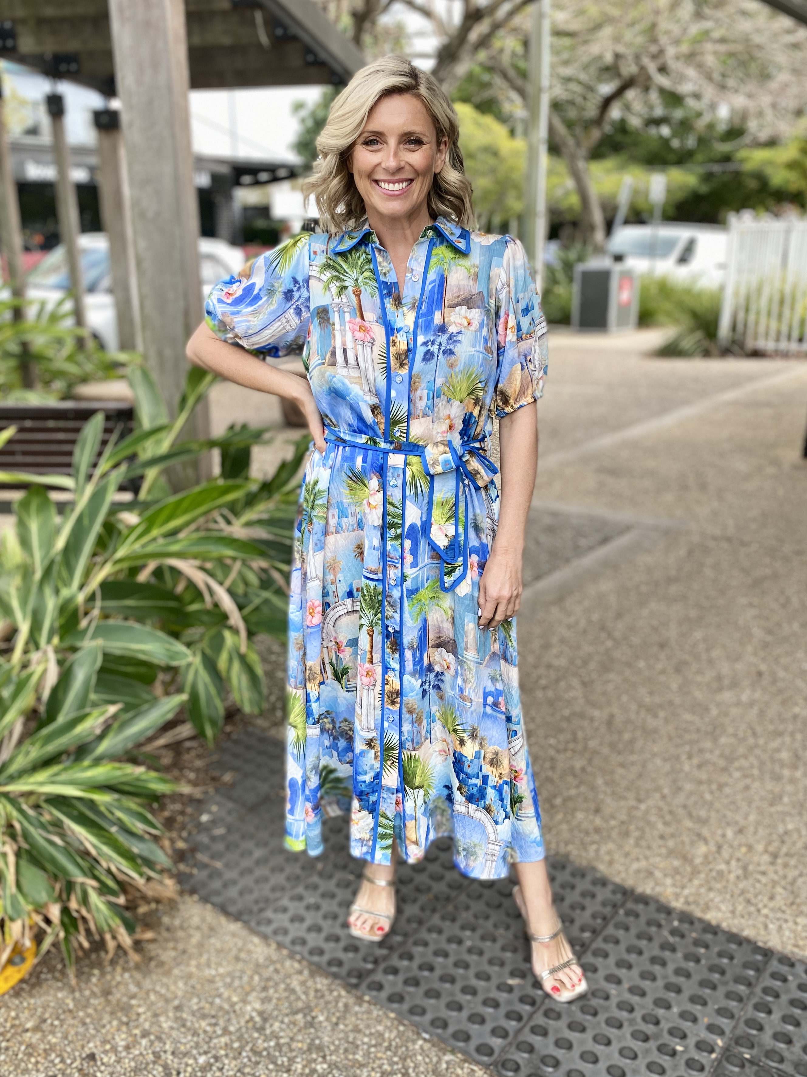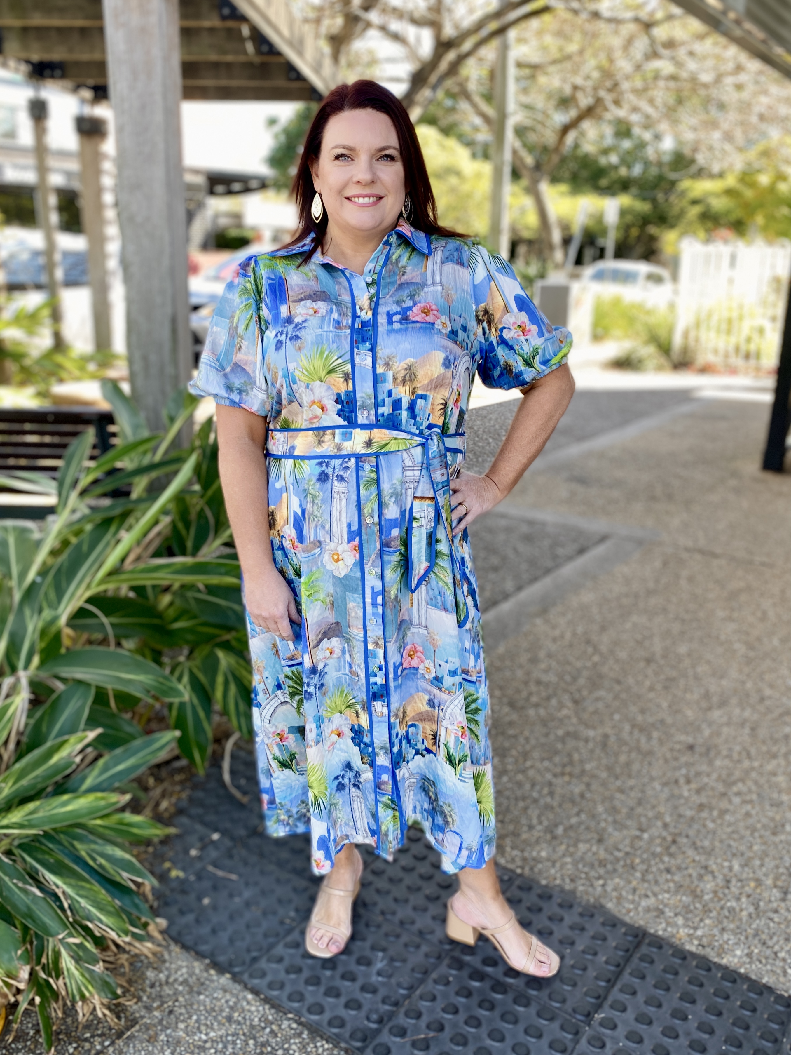 Flowing, feminine and bold, the Lynette Shirt Dress is a standout piece for spring escapes, resort dinners or stylish weekends. Feminine puff sleeves and midi length give this dress romantic flow with easy personality.