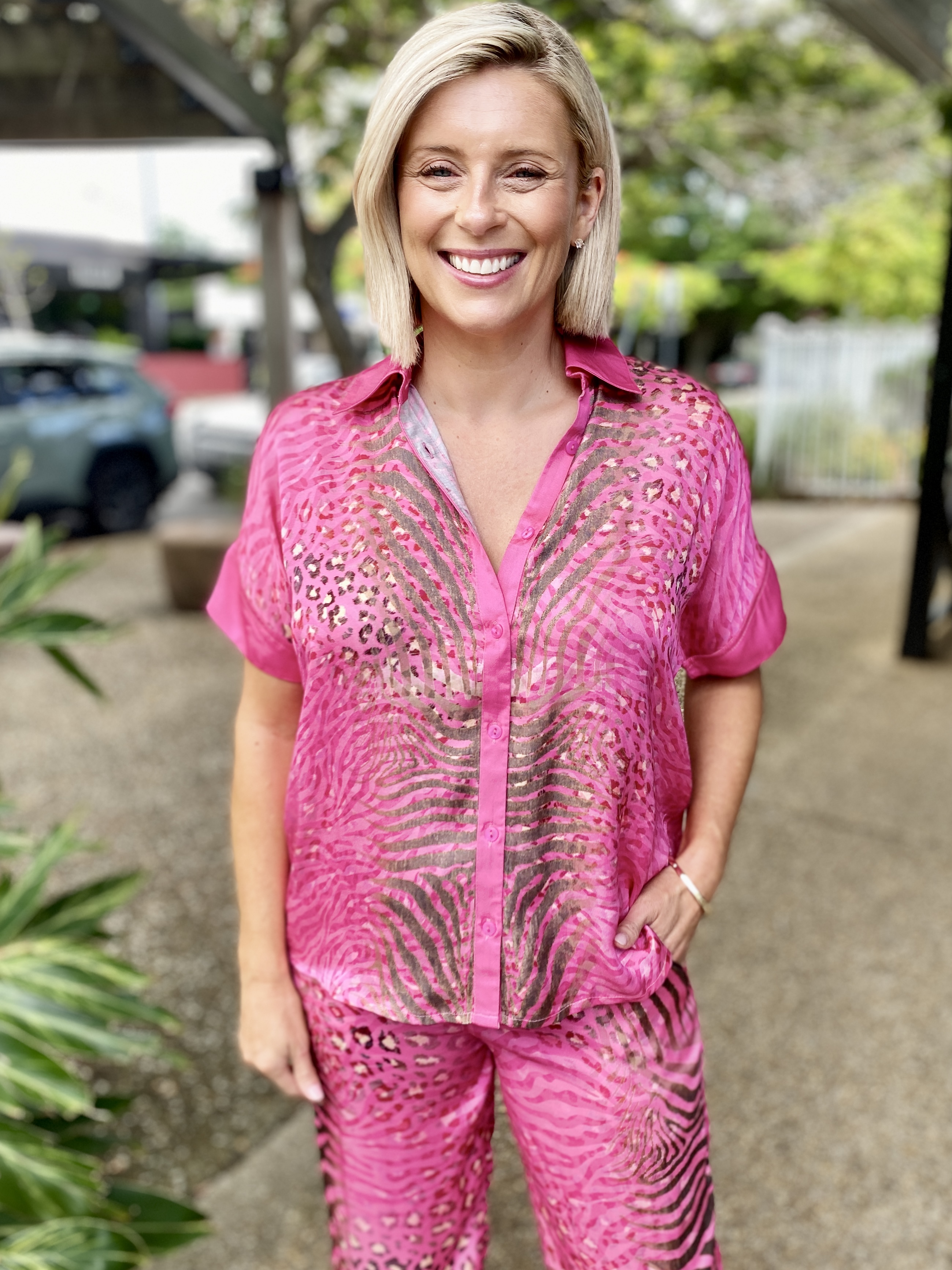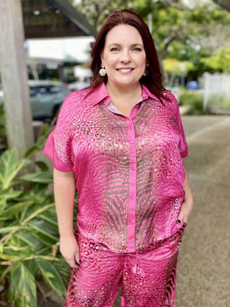 Easy, vibrant, and full of personality, the Maasai Shirt brings colour and comfort together in the best way. Made from smooth 100% satin modal, it has a soft, silky feel that drapes beautifully. The relaxed fit, shorter length, and button-through front make it an effortless throw-on style, while the collared neckline keeps it looking polished. Finished with an exclusive exotic animal–inspired digital print, this shirt is designed in Australia and adds a bright, modern twist to jeans, shorts, or linen pants.