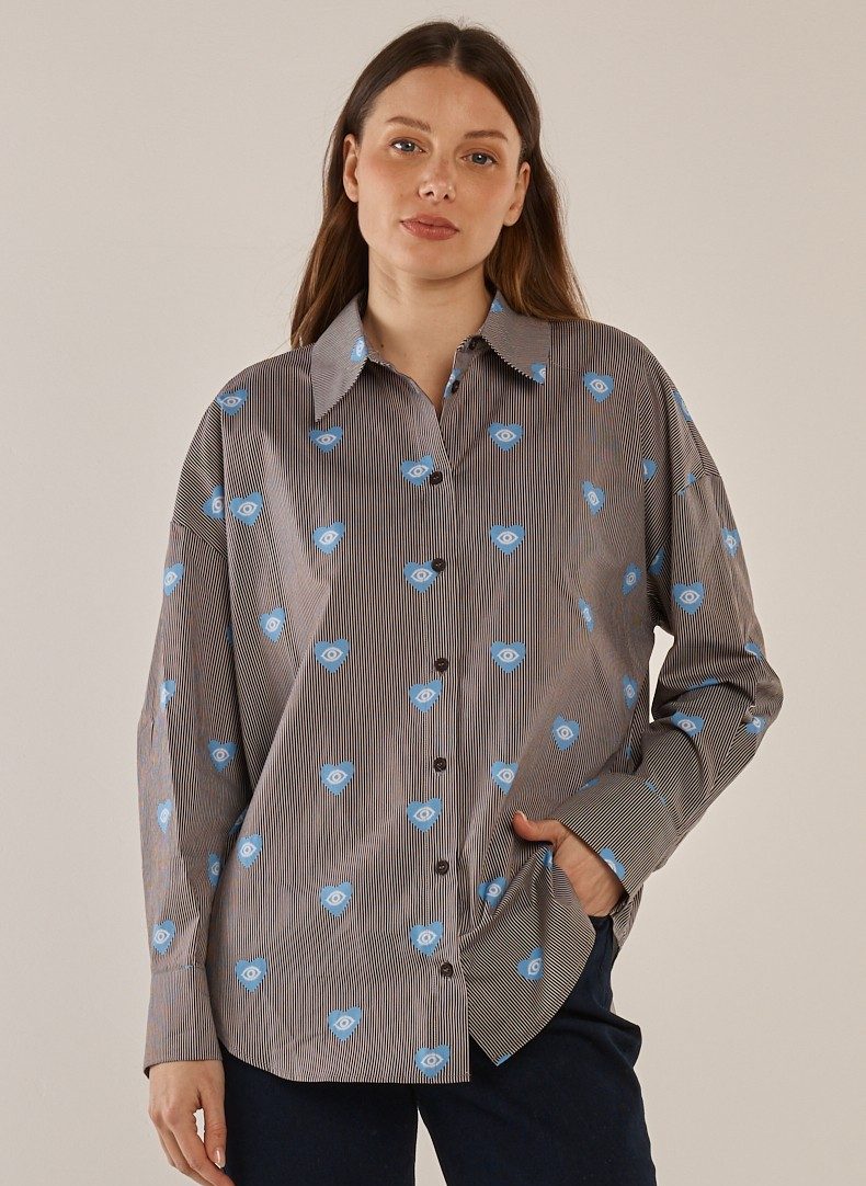 A polished shirt crafted from a crisp cotton blend. The button-through front and collar keep the look timeless. Comfortable long sleeves add versatility for trans-seasonal dressing. A refined wardrobe essential made effortless.