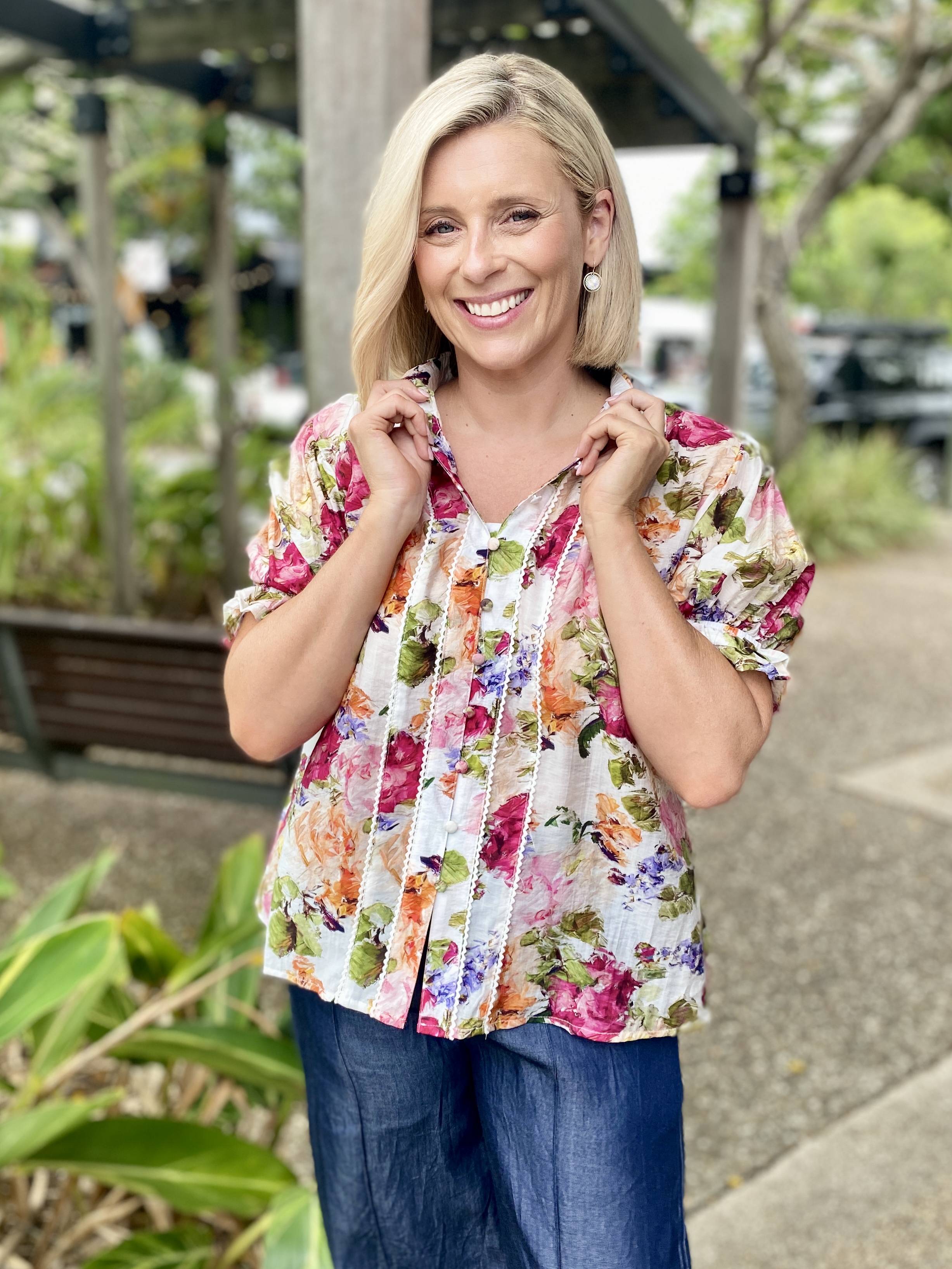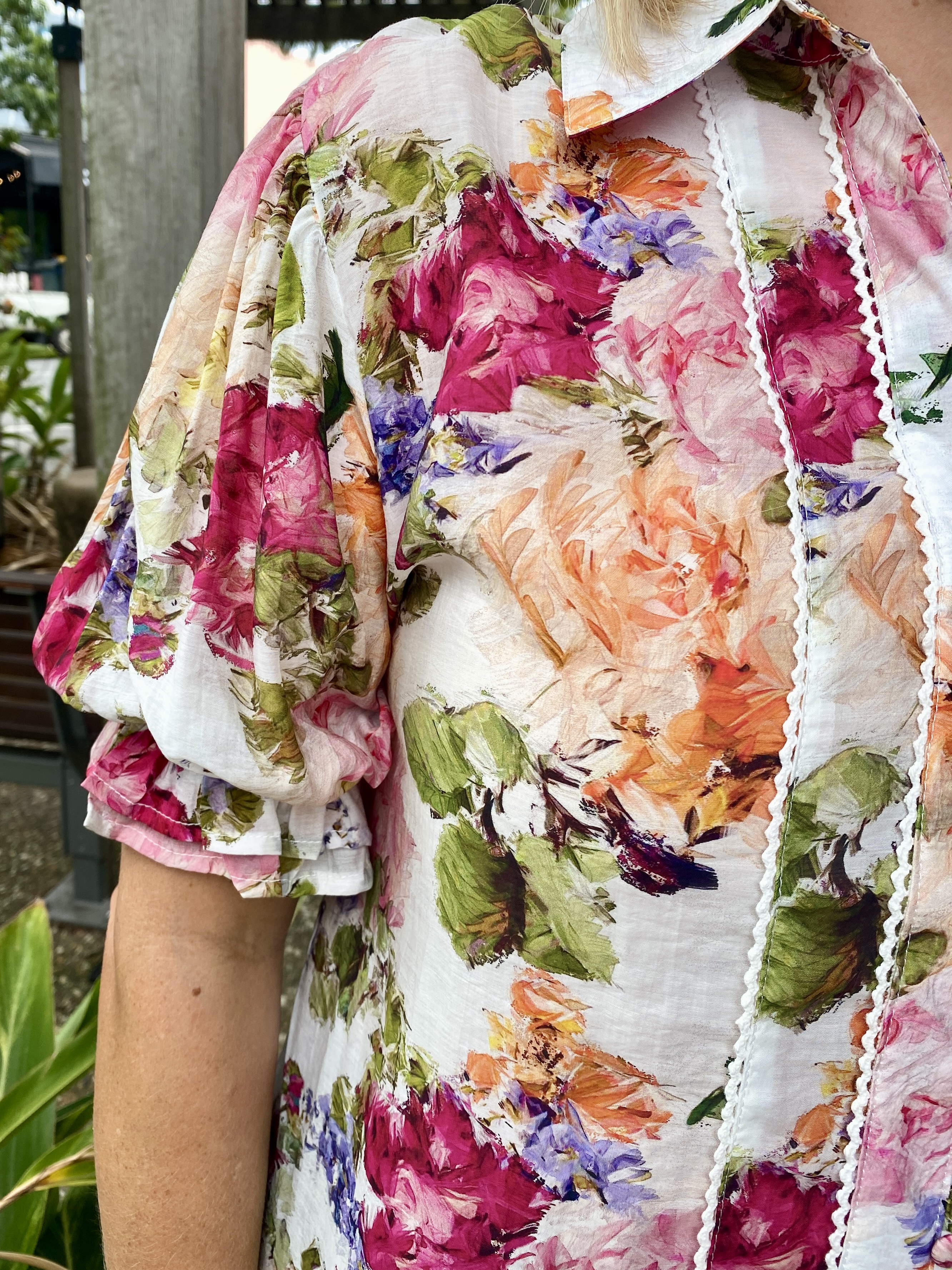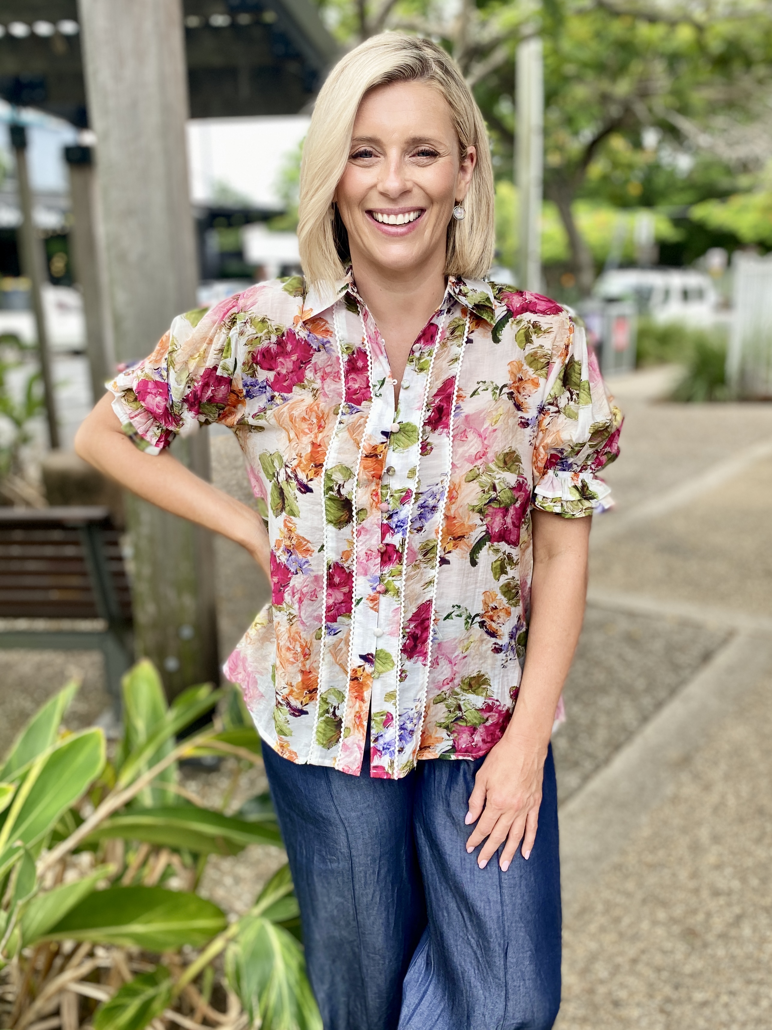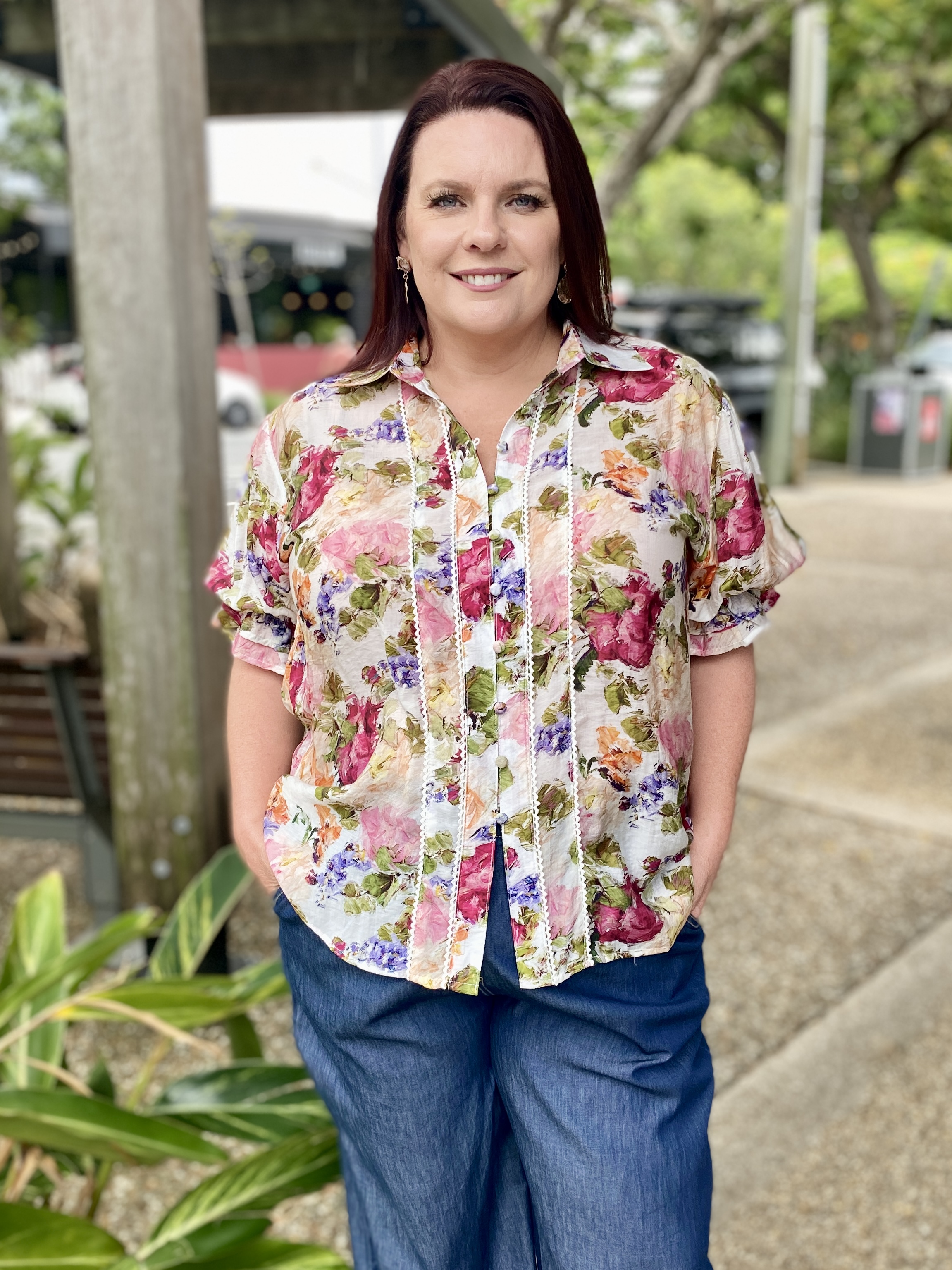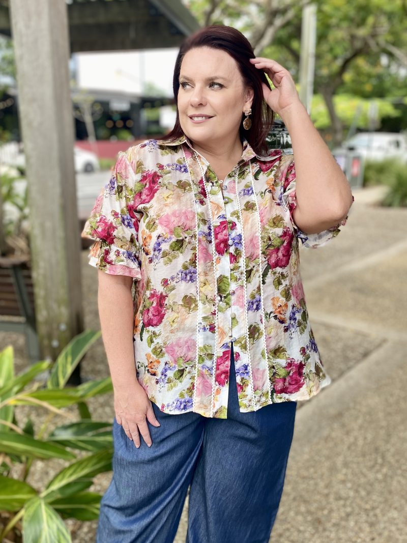 Our Nancy Shirt is all about effortless sophistication. It’s the perfect piece that your closet is practically begging for! Style it with denim & mules for the ultimate ensemble.