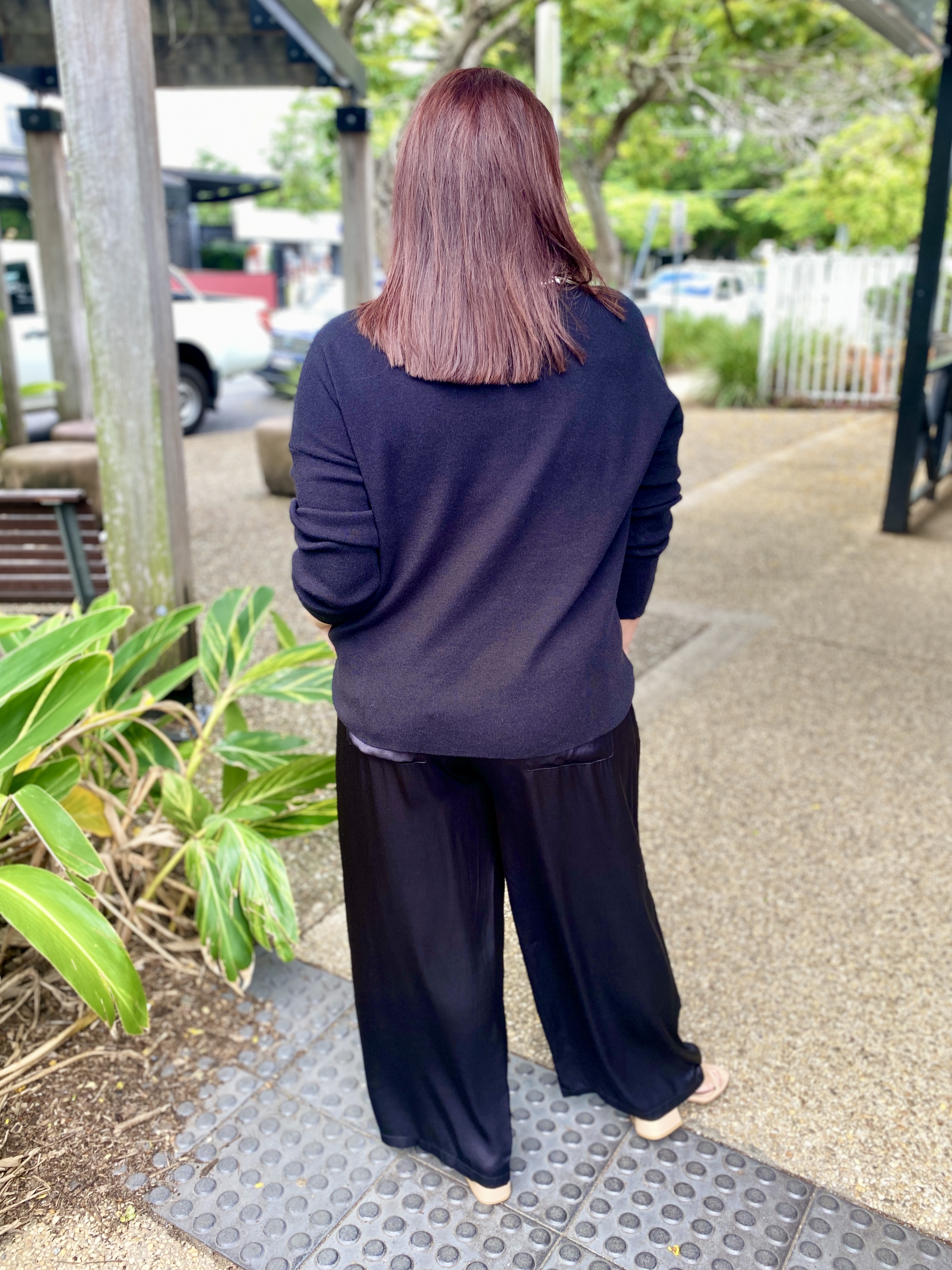 Add a touch of sparkle to your everyday wardrobe with the Nero Diamante Knit. This elegant knit features a beautifully embellished diamante neckline, giving it a luxurious feel that transitions effortlessly from day to night.