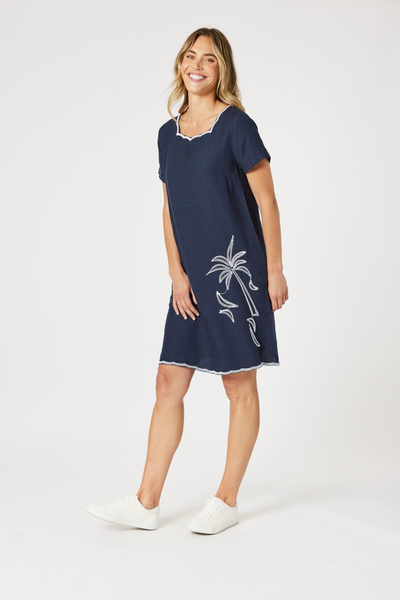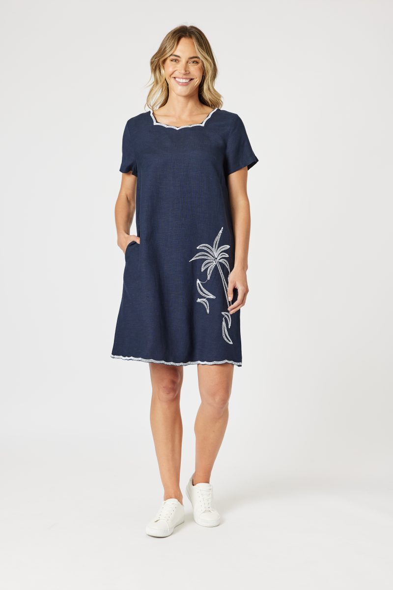 Effortlessly stylish with a touch of tropical charm, the Lino Palm Embroidered Dress is perfect for warm-weather days.