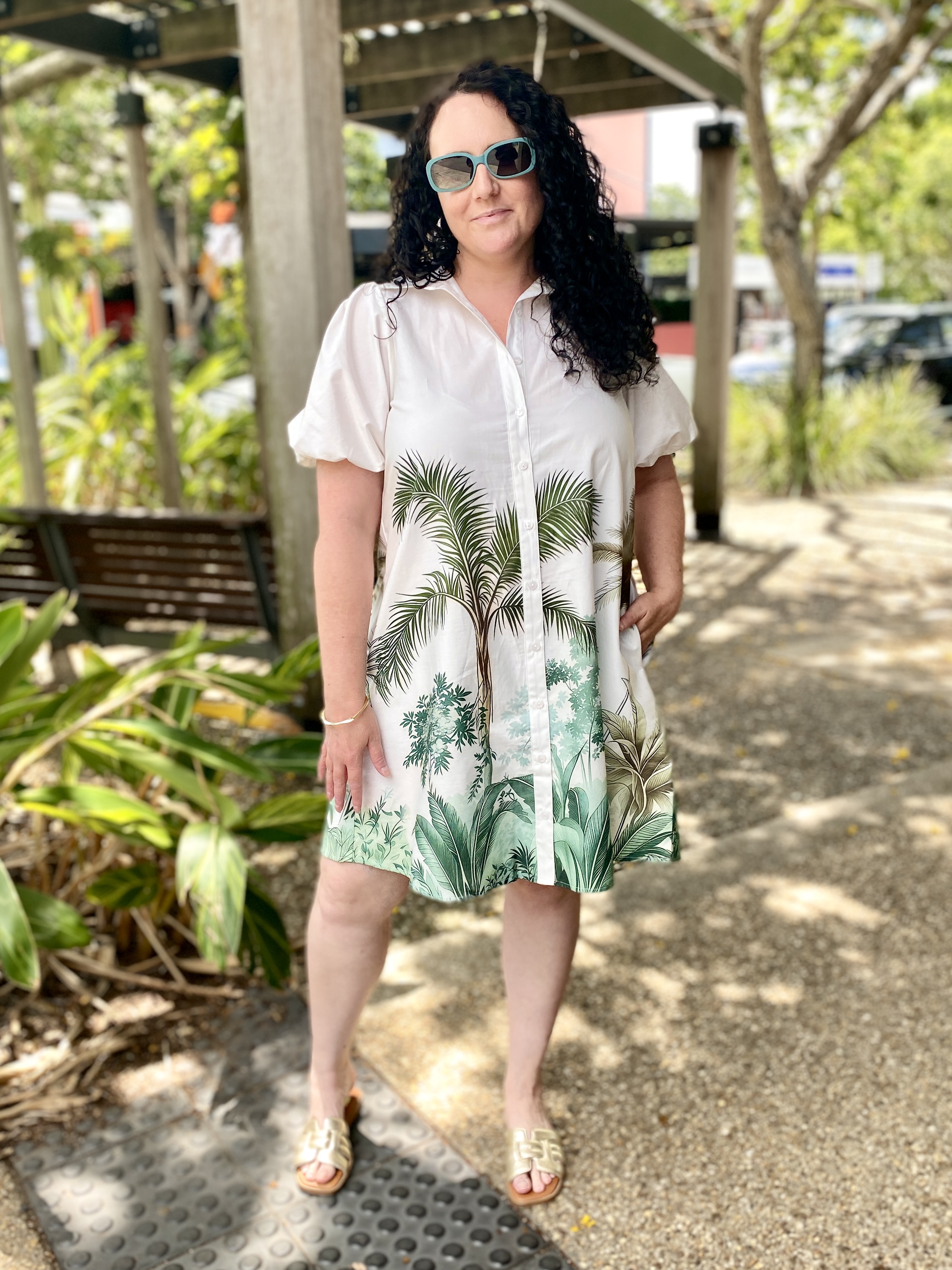 Keep your look beautiful & breezy this season with our Patsy Palm Dress! This lovely lightweight dress is perfect for the warmer seasons, and can be dressed up or down with ease. Wear it for a casual day date with sandals and gold accessories to match!