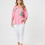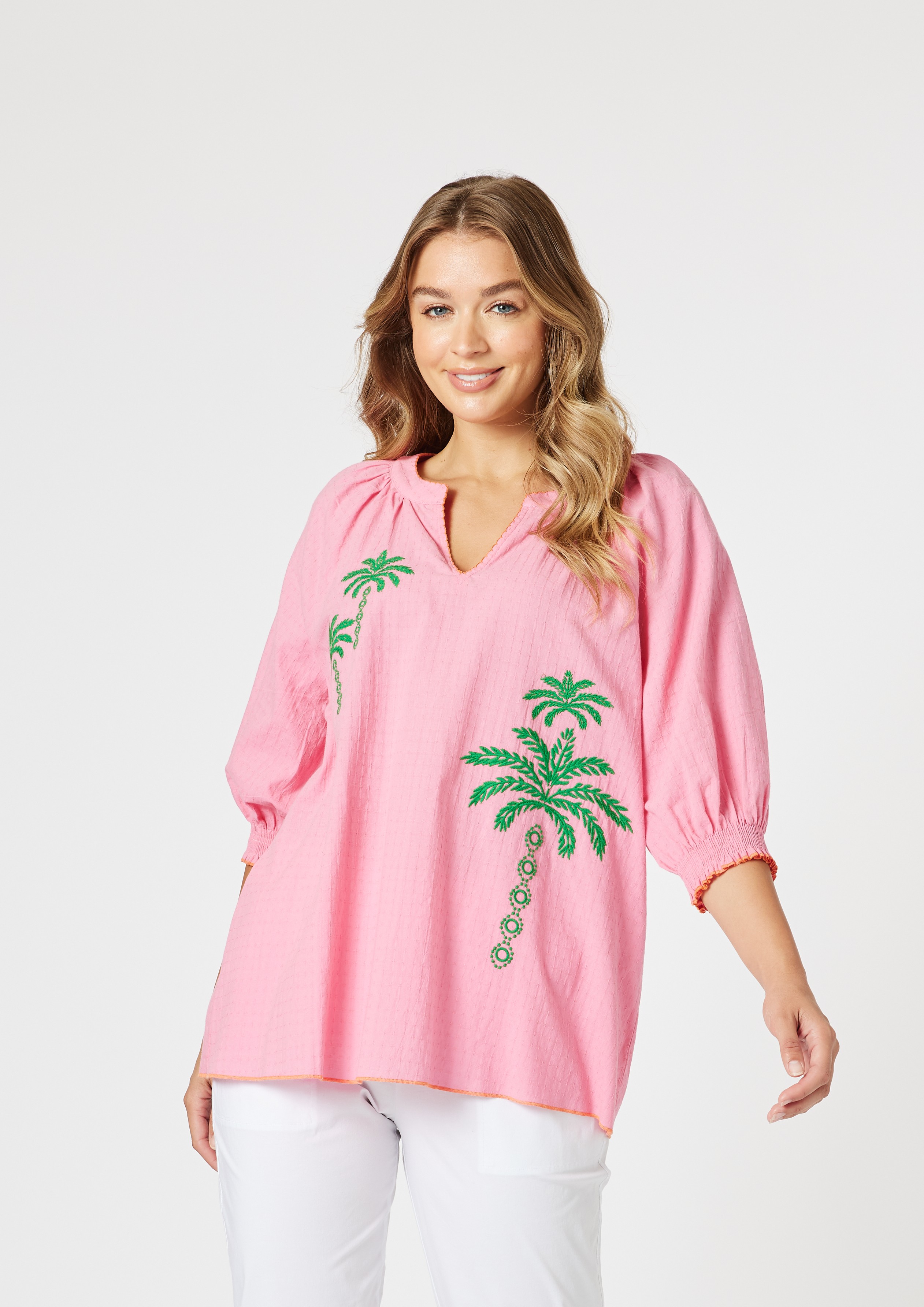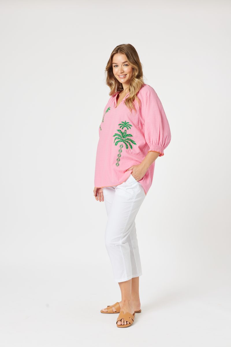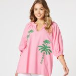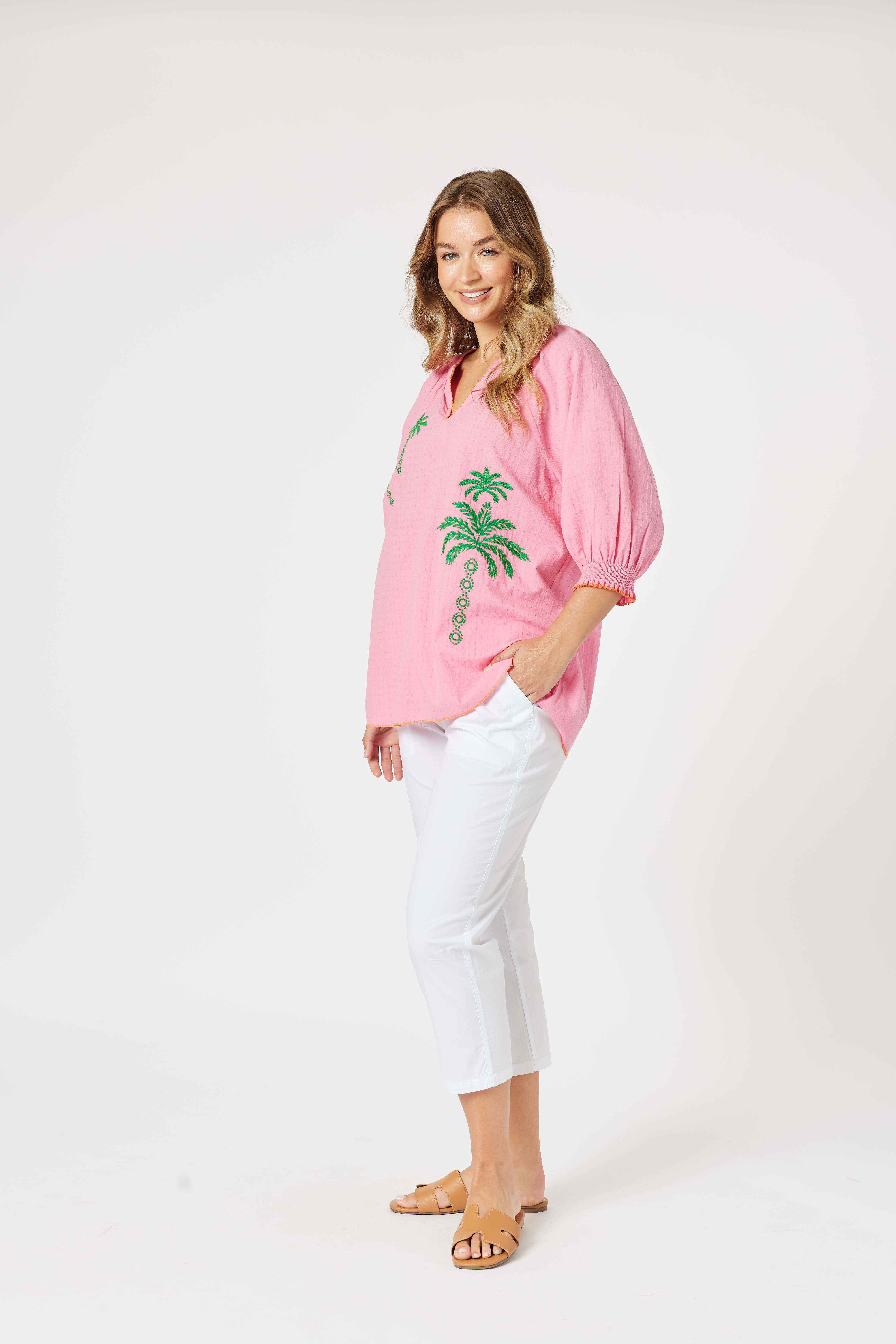 Add a playful splash of the tropics to your wardrobe with the Pina Colada Embroidered Top.