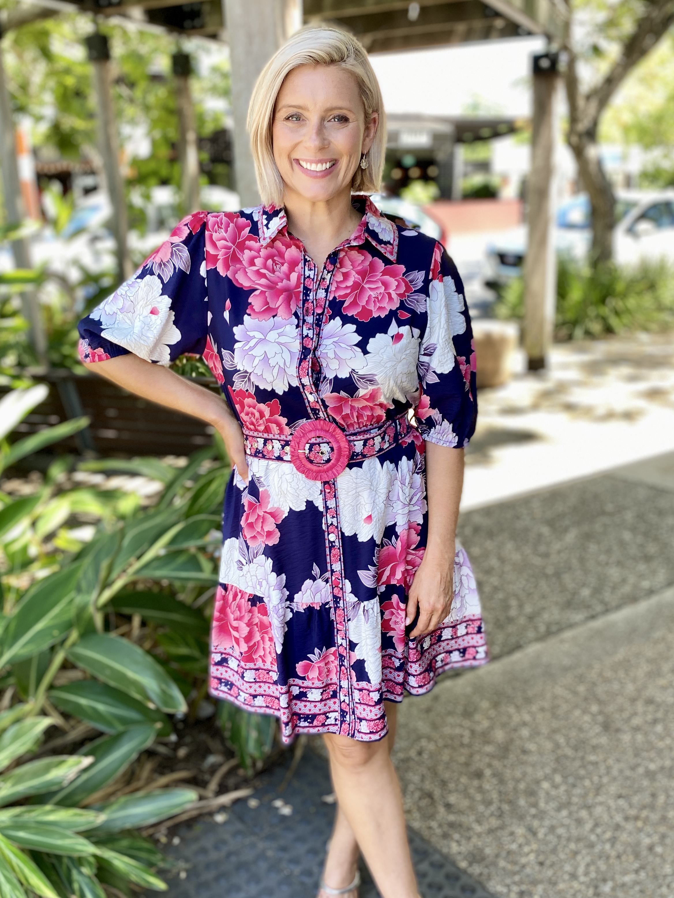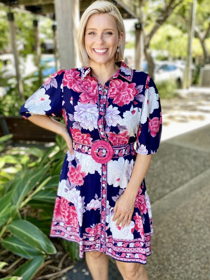 Let your holiday wardrobe bloom with the Tamera Mini Dress in Navy Blossom print. Whether you’re packing for a weekend away or stepping out for brunch in the sun, this dress delivers fresh, feel-good style in a flattering silhouette.