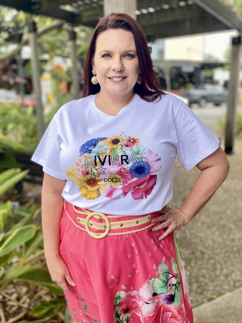 Add a playful touch of summer to your wardrobe with our Riviera Tee! Featuring an short sleeves, curved hemline and a graphic print, this tee combines effortless comfort with casual style. Whether you’re heading out for a laid-back day or lunch with friends, pair it with your favourite jeans and sneakers for a cool, everyday look!