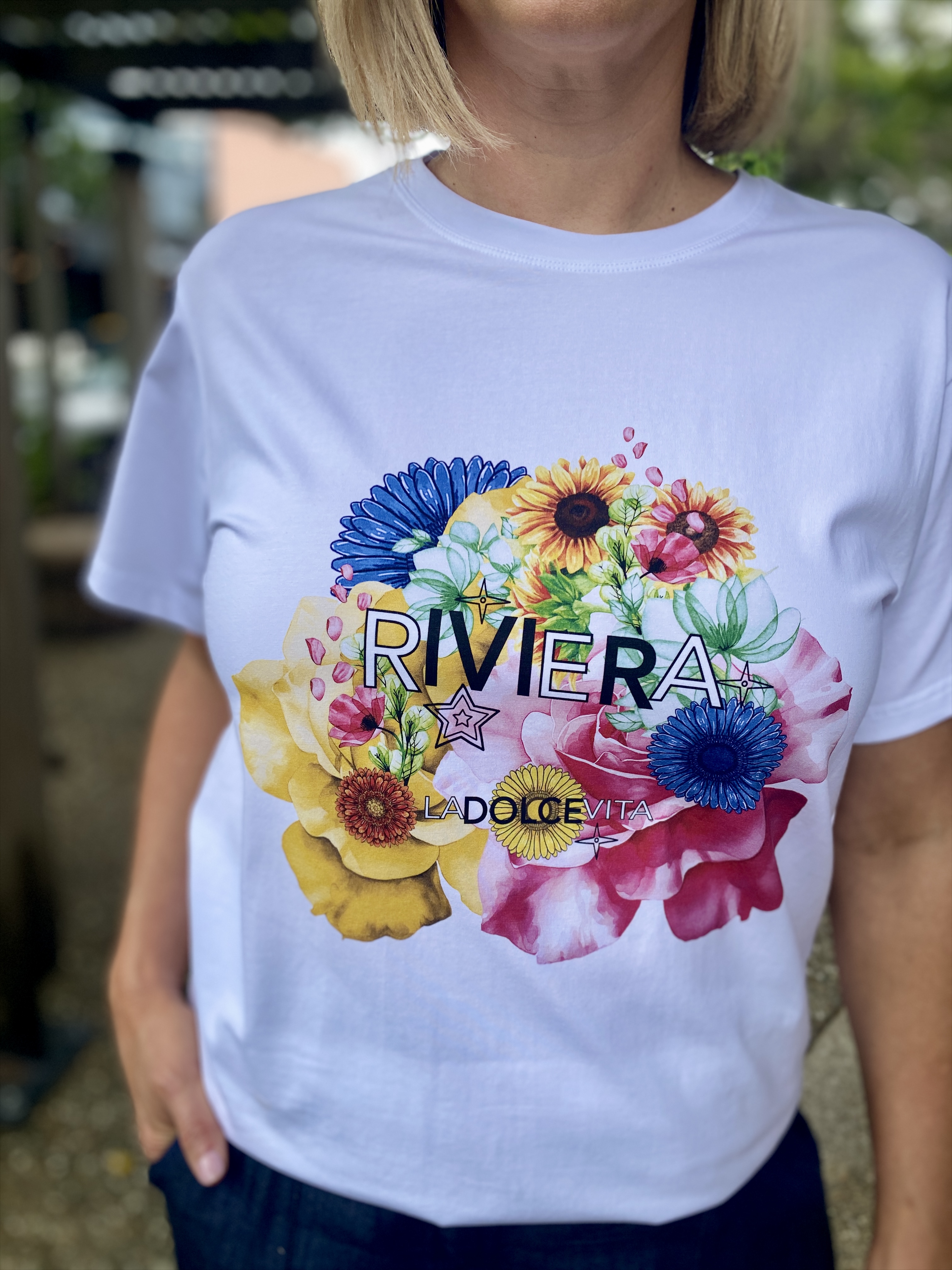Add a playful touch of summer to your wardrobe with our Riviera Tee! Featuring an short sleeves, curved hemline and a graphic print, this tee combines effortless comfort with casual style. Whether you’re heading out for a laid-back day or lunch with friends, pair it with your favourite jeans and sneakers for a cool, everyday look!
