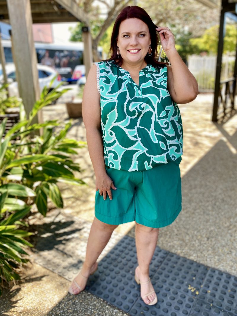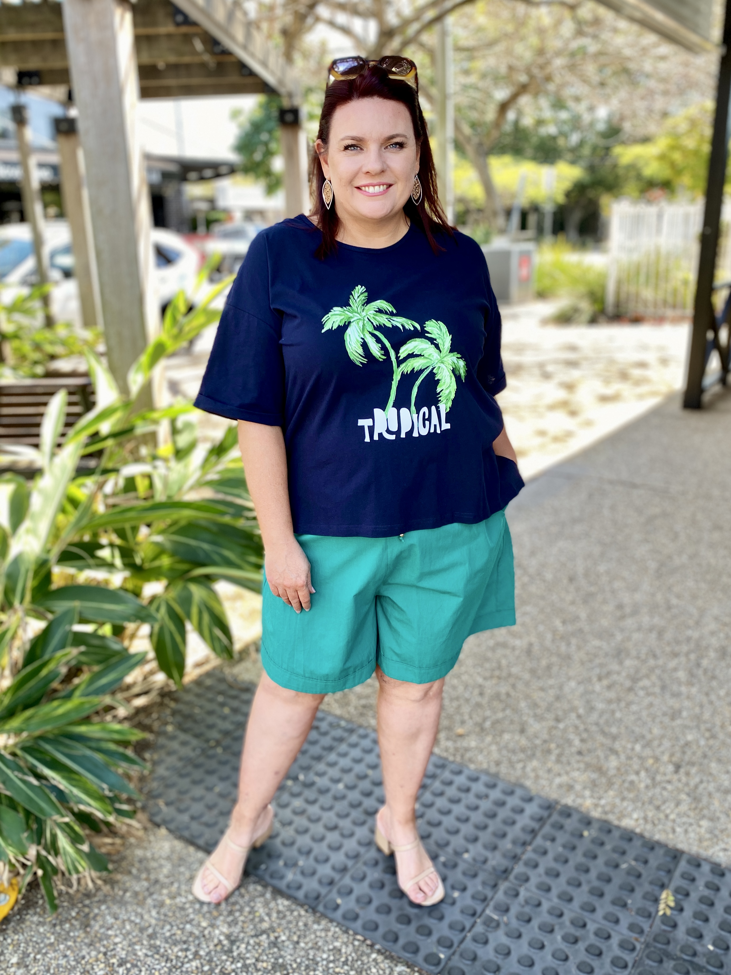 The Santos Short is your go-to for effortless summer dressing, featuring a relaxed A-line leg, soft 100% cotton finish, and an above-the-knee length that offers just the right amount of coverage. A self-fabric drawstring with subtle gold bead detailing adds a hint of shine, while internal side pockets and a hem band seam keep the look elevated yet easy.