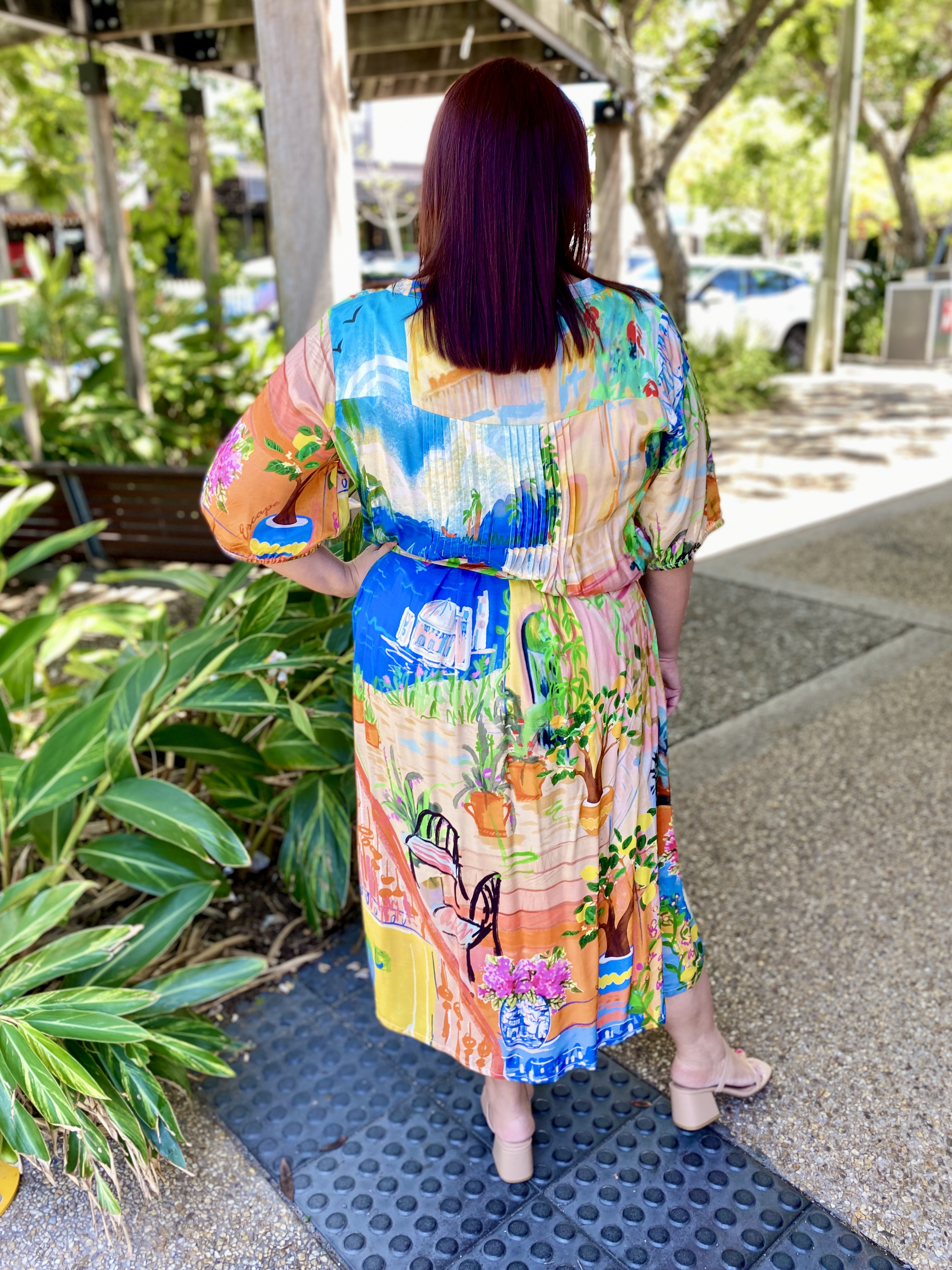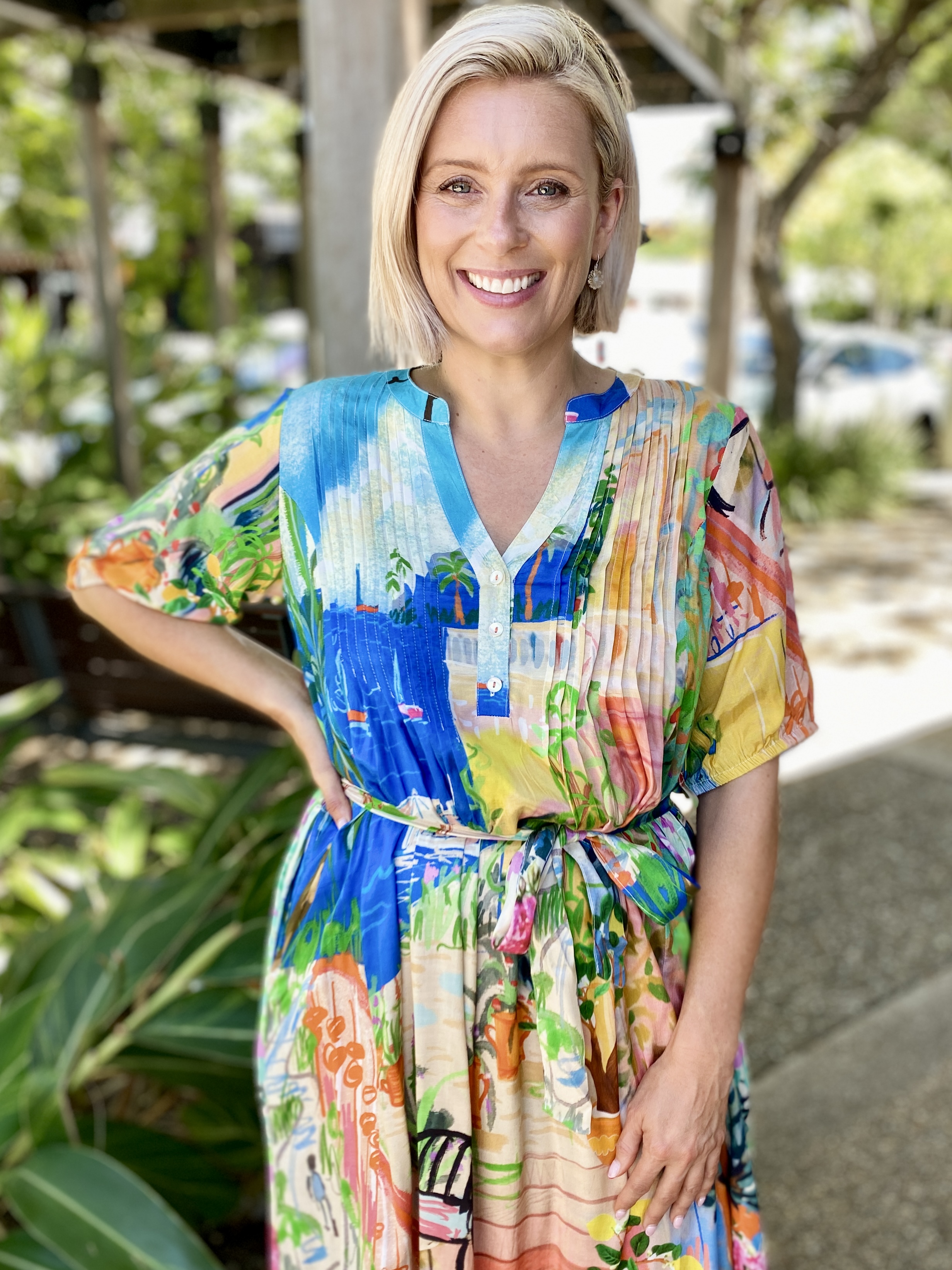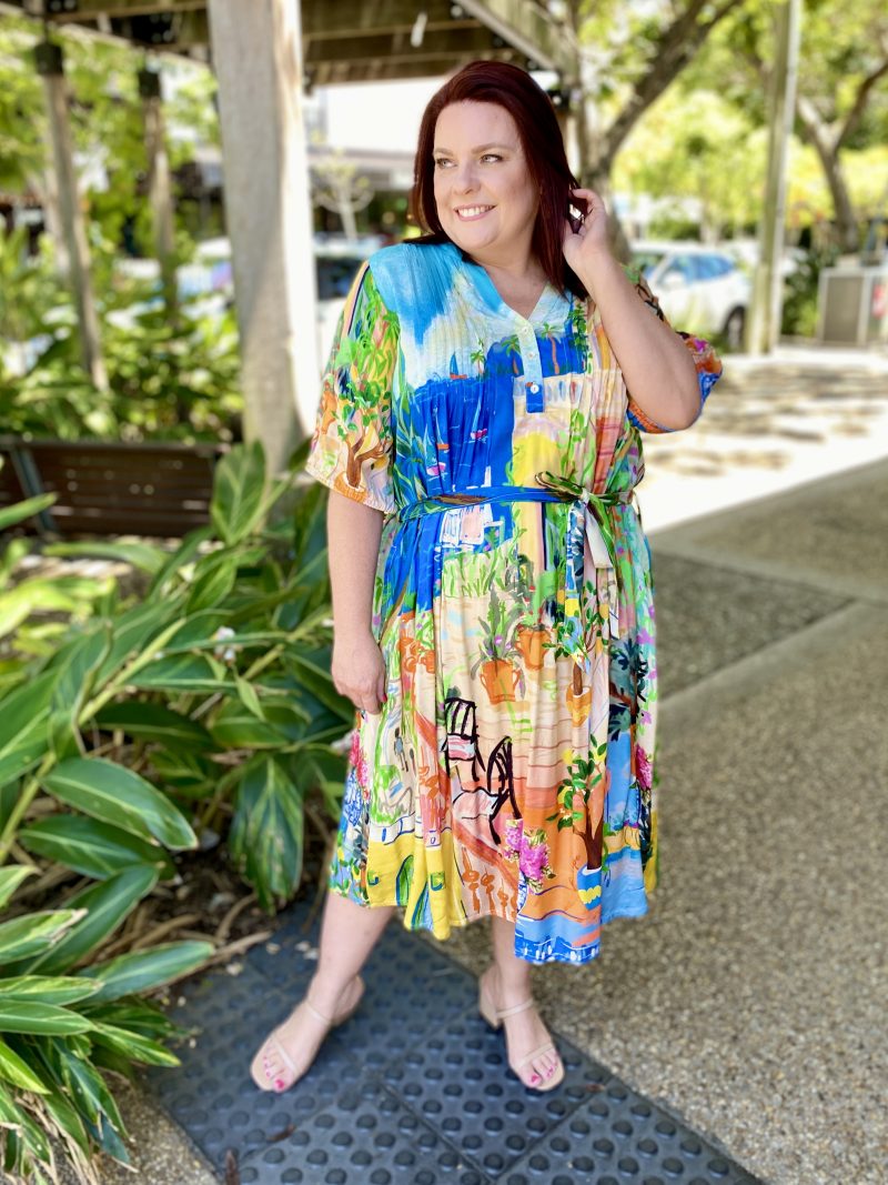 Answer the call of adventure in the waterscape and terracotta gardens that feature in the Sardinia Tie Waist Dress. You can let your elegance bloom. Captured in this beautiful design is the light and soft touches of a gathered half sleeve, fabric waist tie and light pleating.