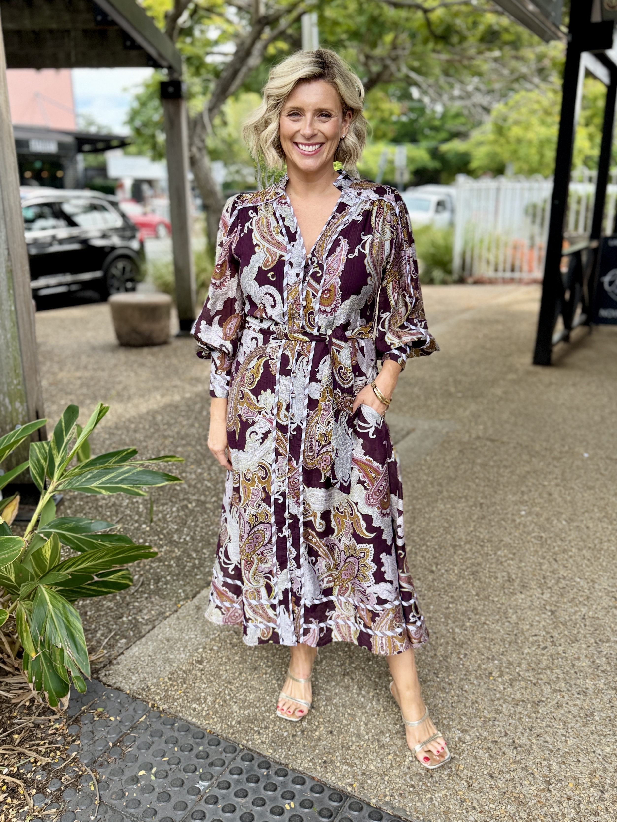 The Tamera Midi Dress in Choc Paisley features soft hues and thoughtful detailing for a refined everyday look. From the mandarin collar, contrast trim and full length sleeves, it’s the perfect blend of form and function.