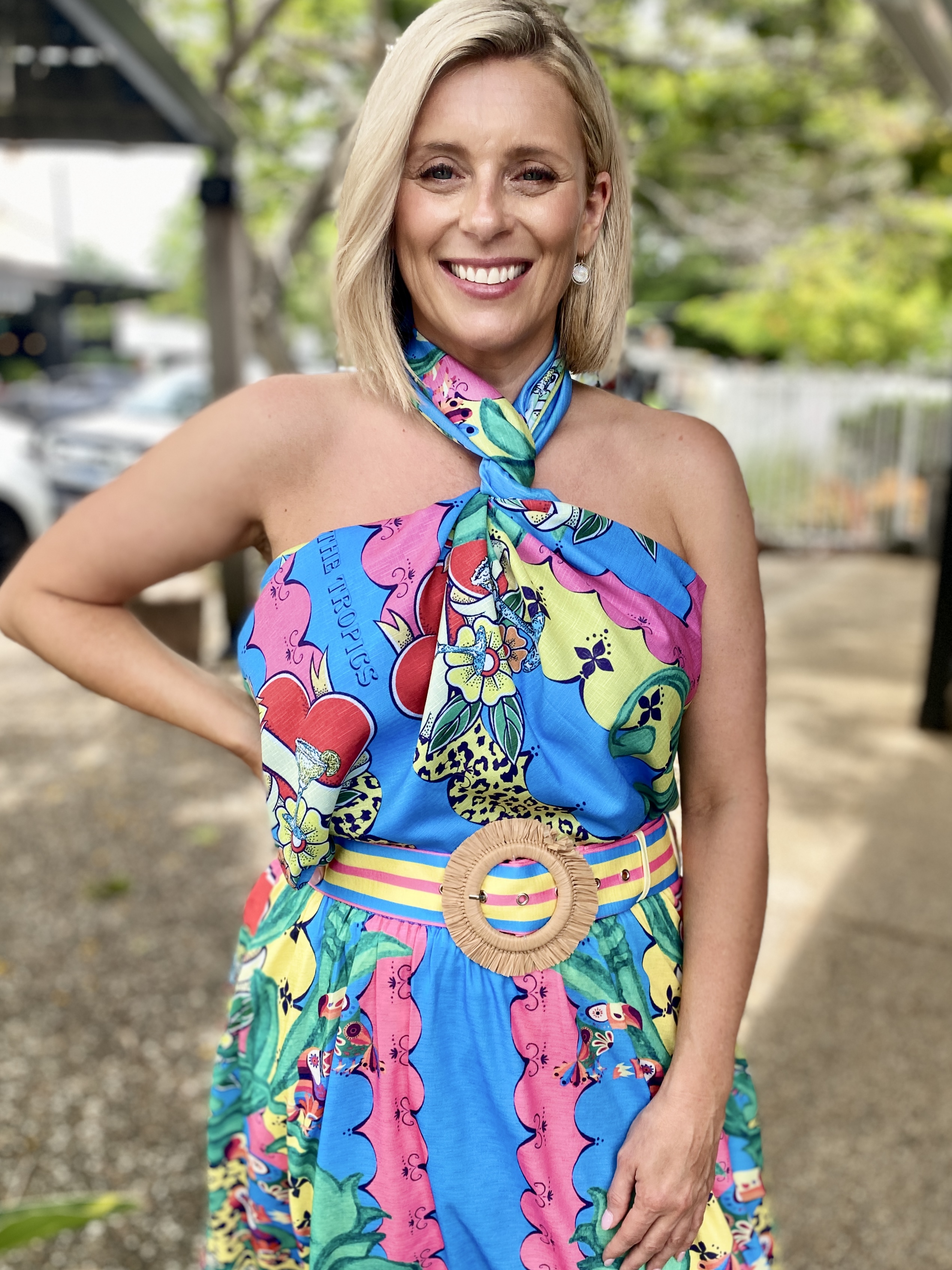 Elevate your accessories game with the Tropical State Scarf. Whether worn as a head wrap, sarong or styled as a top, this scarf brings sunshine energy and versatility to your wardrobe.