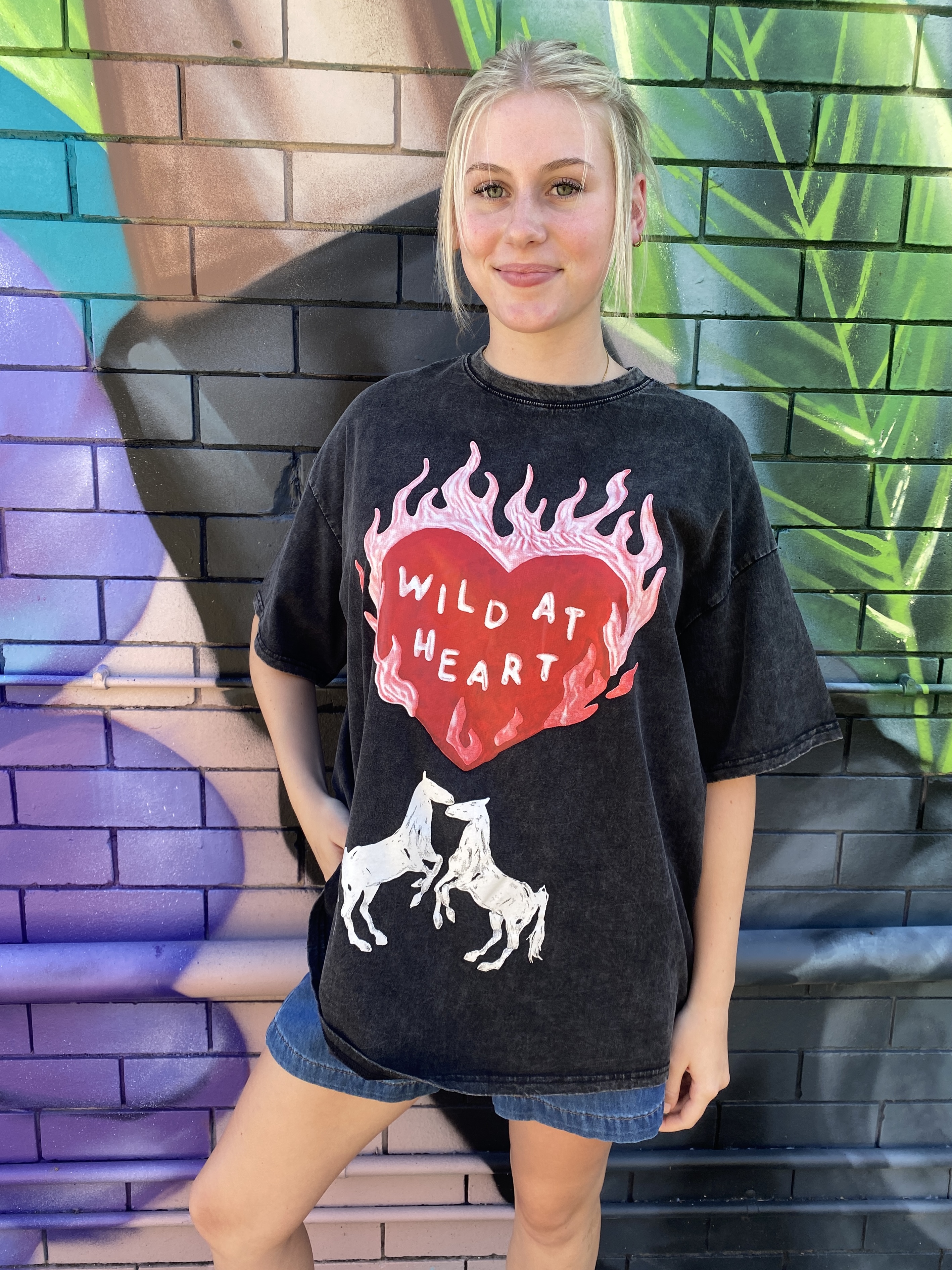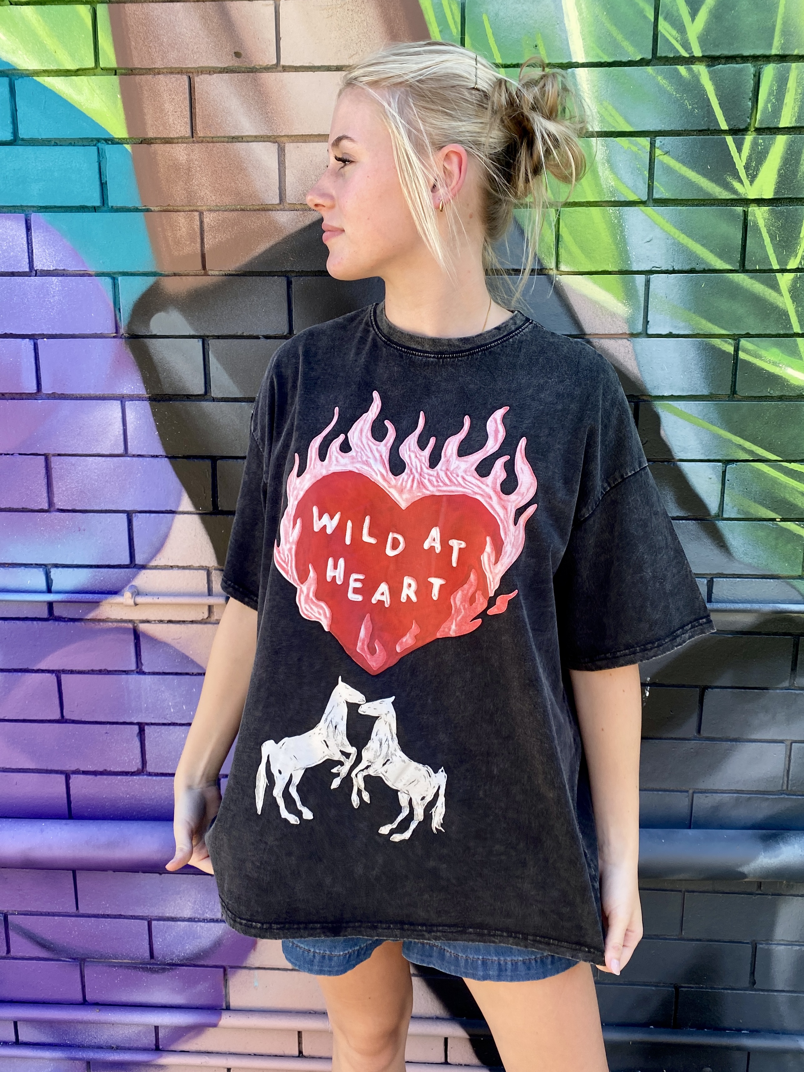 Add a bold touch to your casual rotation with the Wild At Heart graphic oversized T-shirt. Made from a cotton material with an oversized fit and graphic print, it’s perfect for off-duty days. Style with shorts, gold earrings and sneakers for a relaxed look.