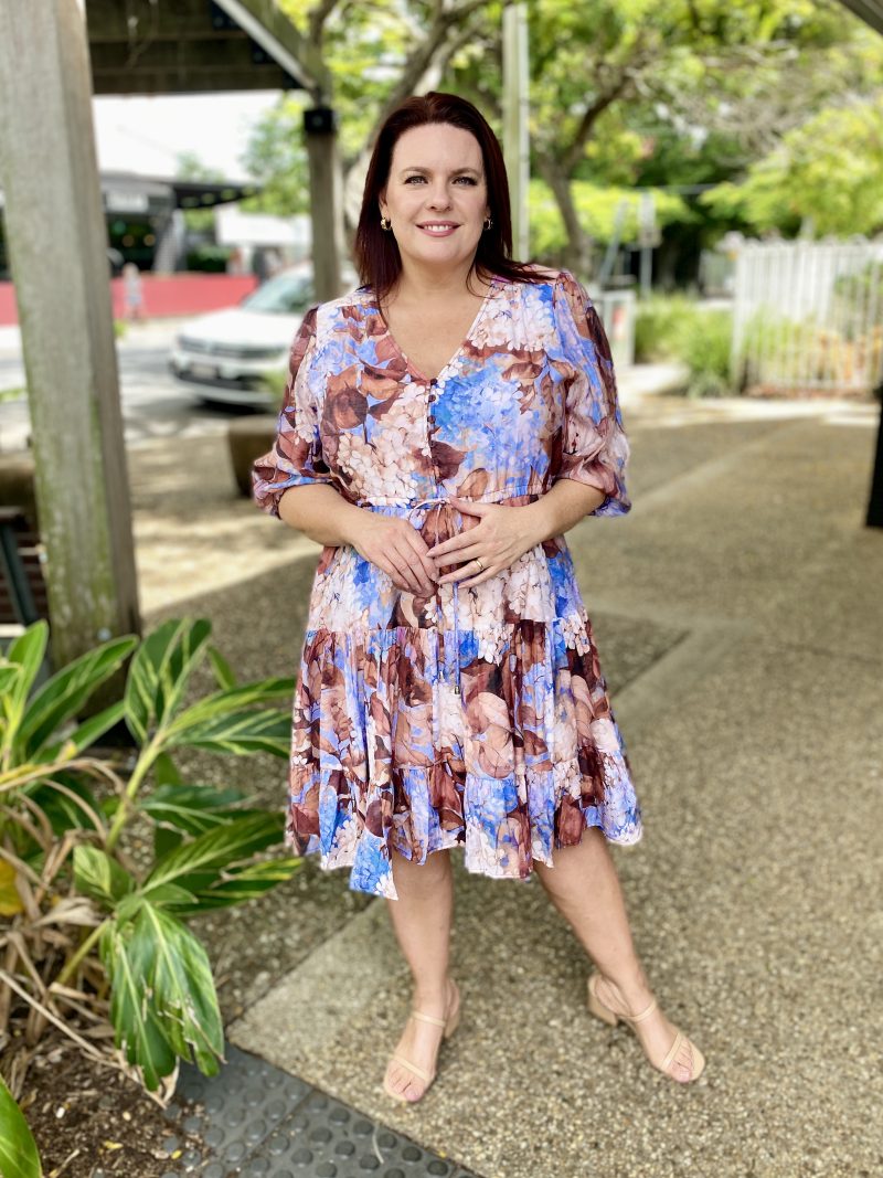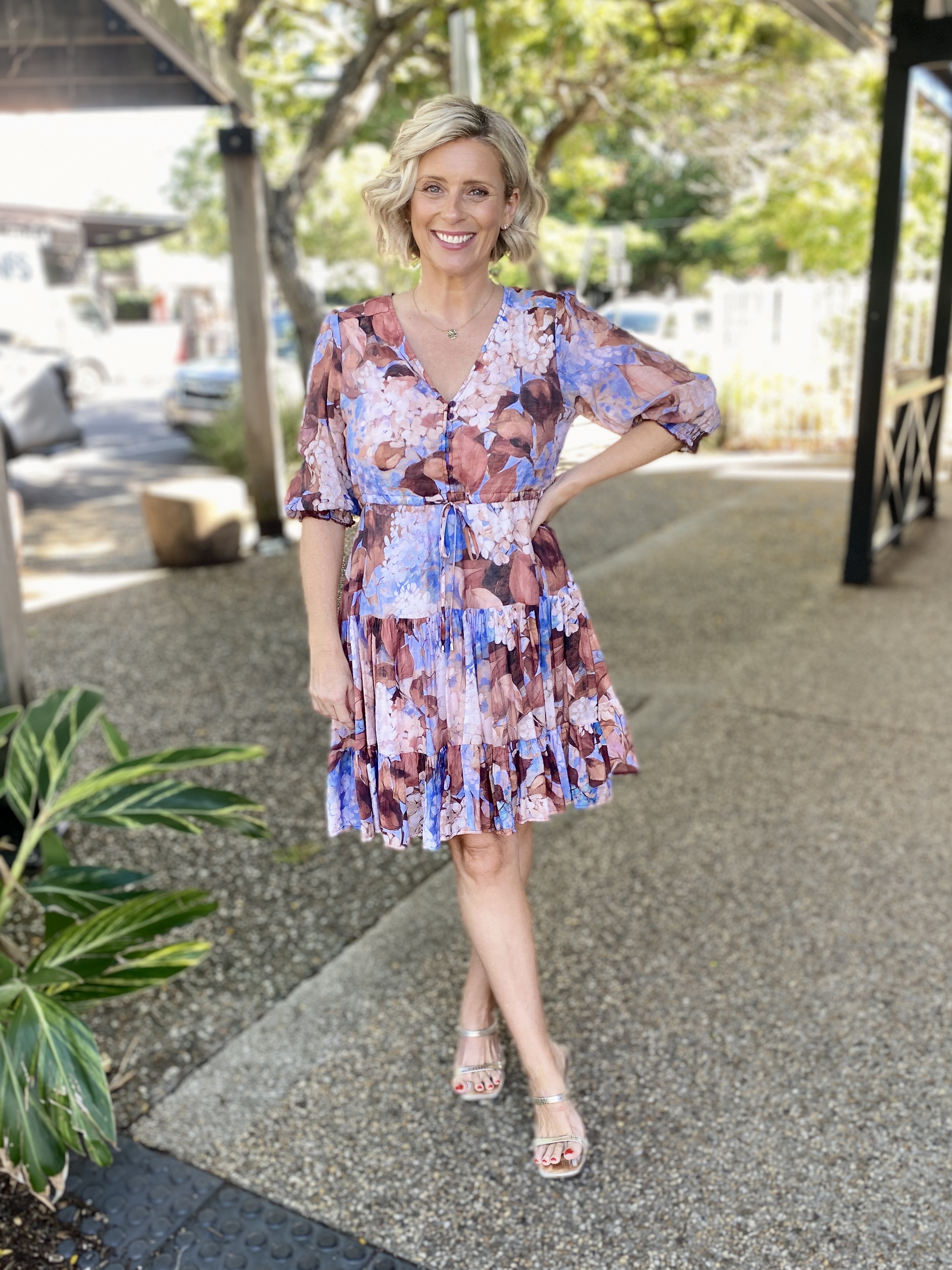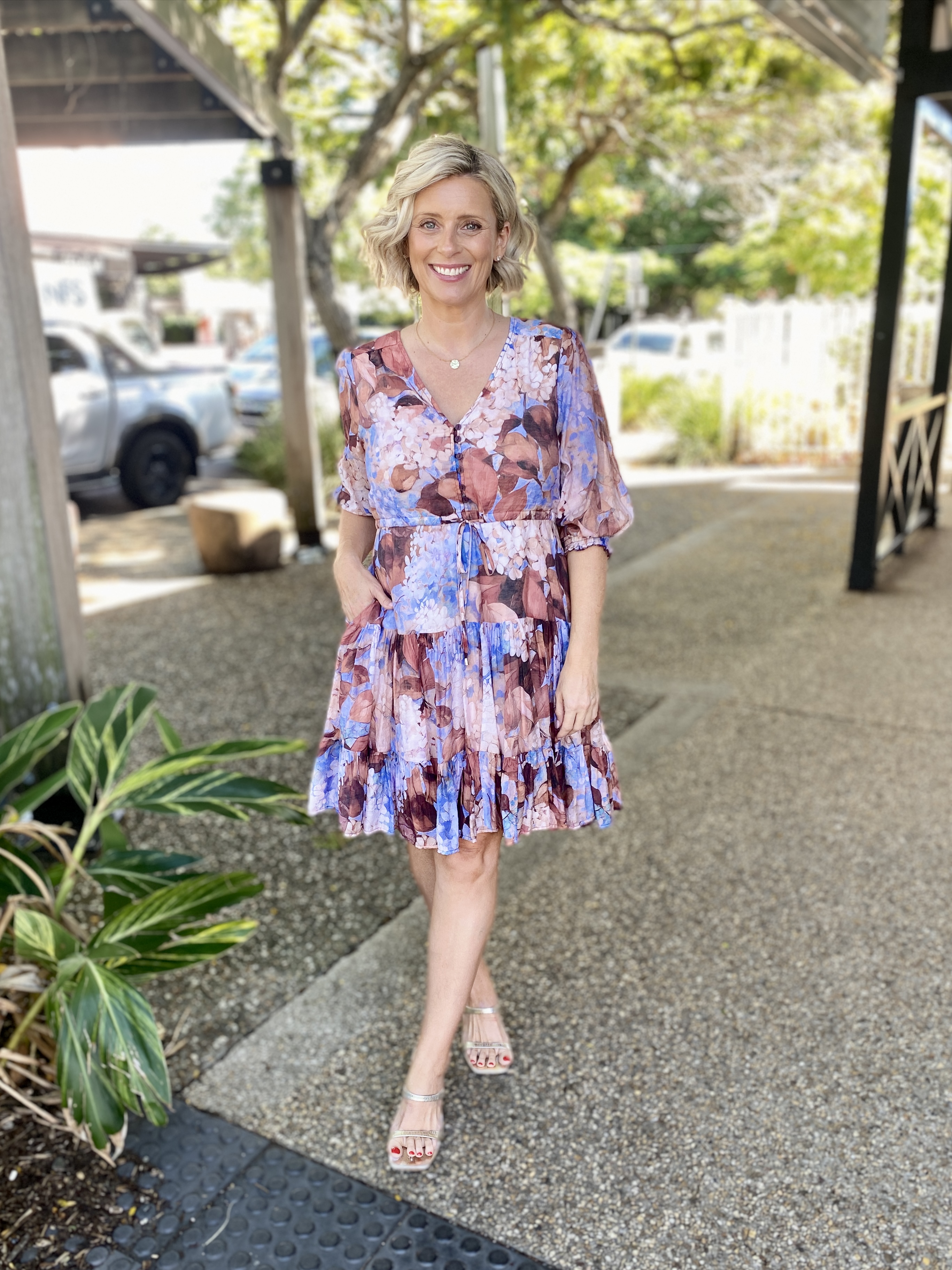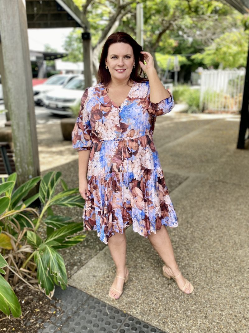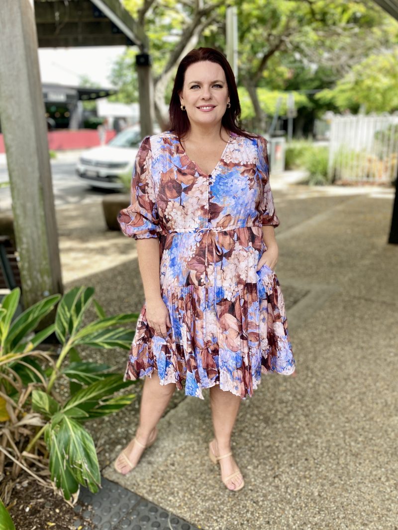 The Wisteria Dress in Floral is made for weekend weddings, garden parties or stylish Sunday lunches. With its blue and soft blush floral print and relaxed A‑line silhouette, it’s effortless elegance at its finest.