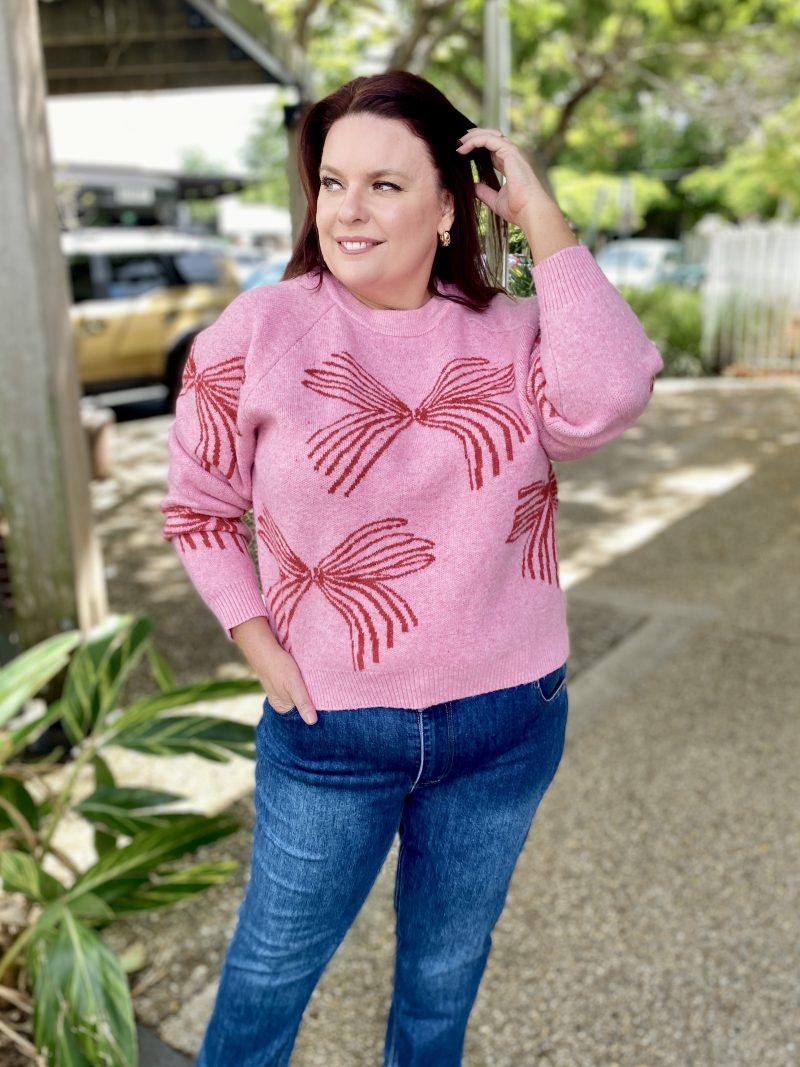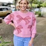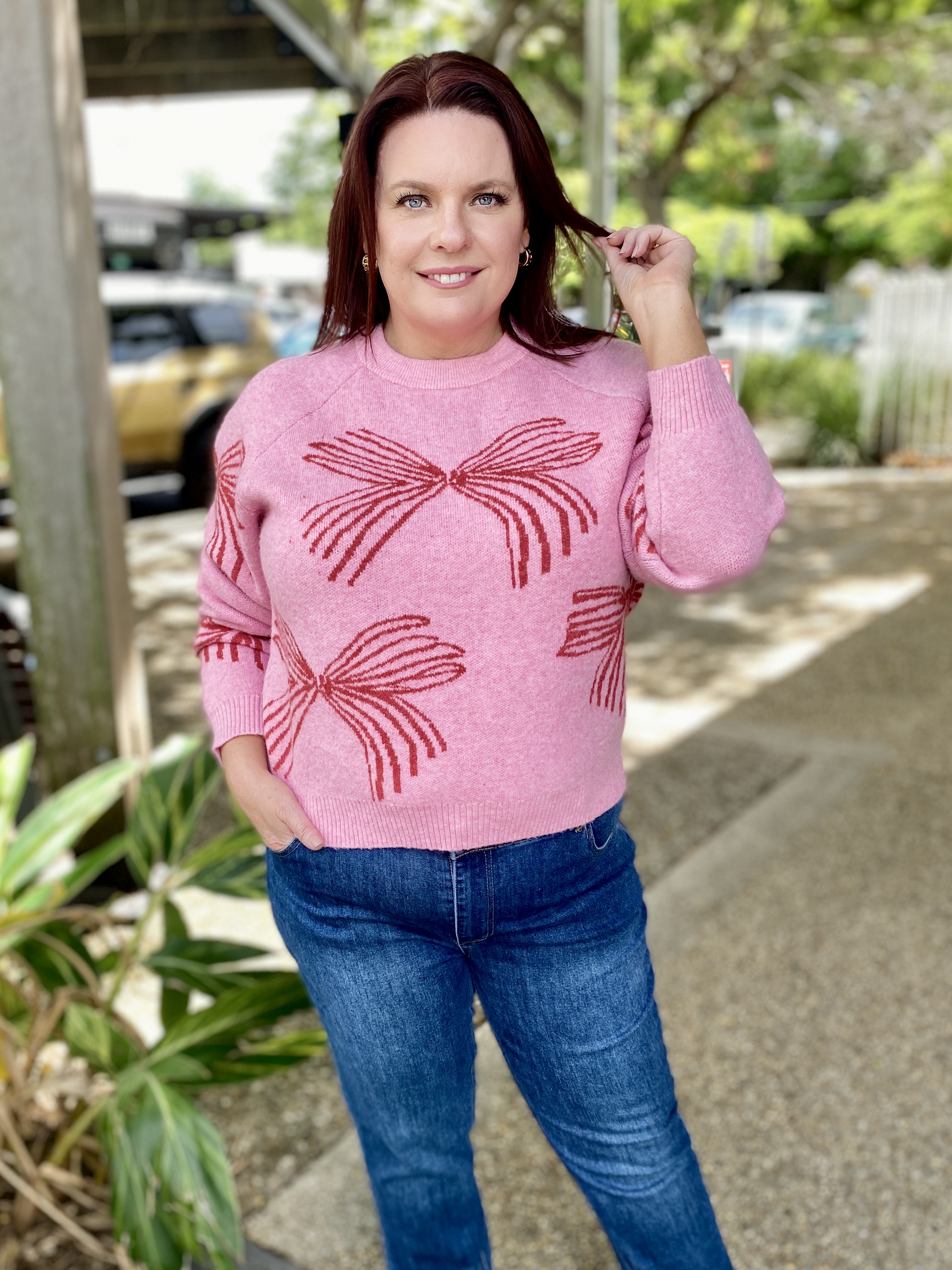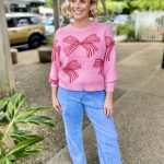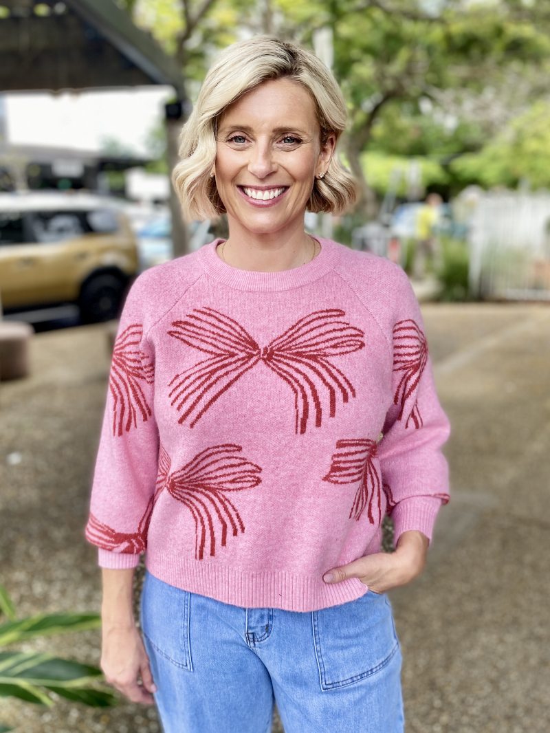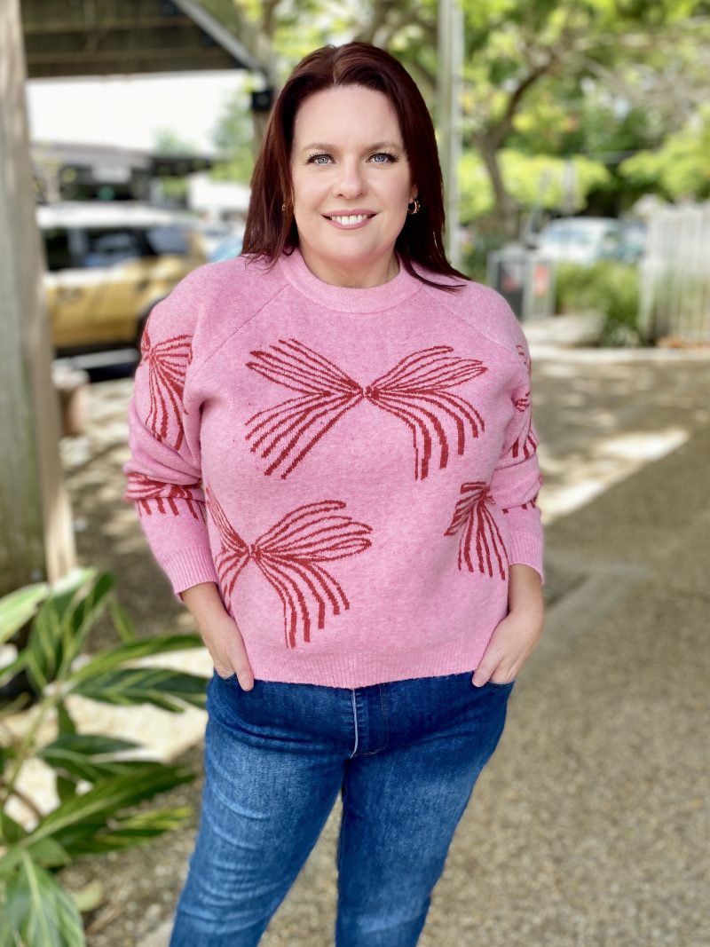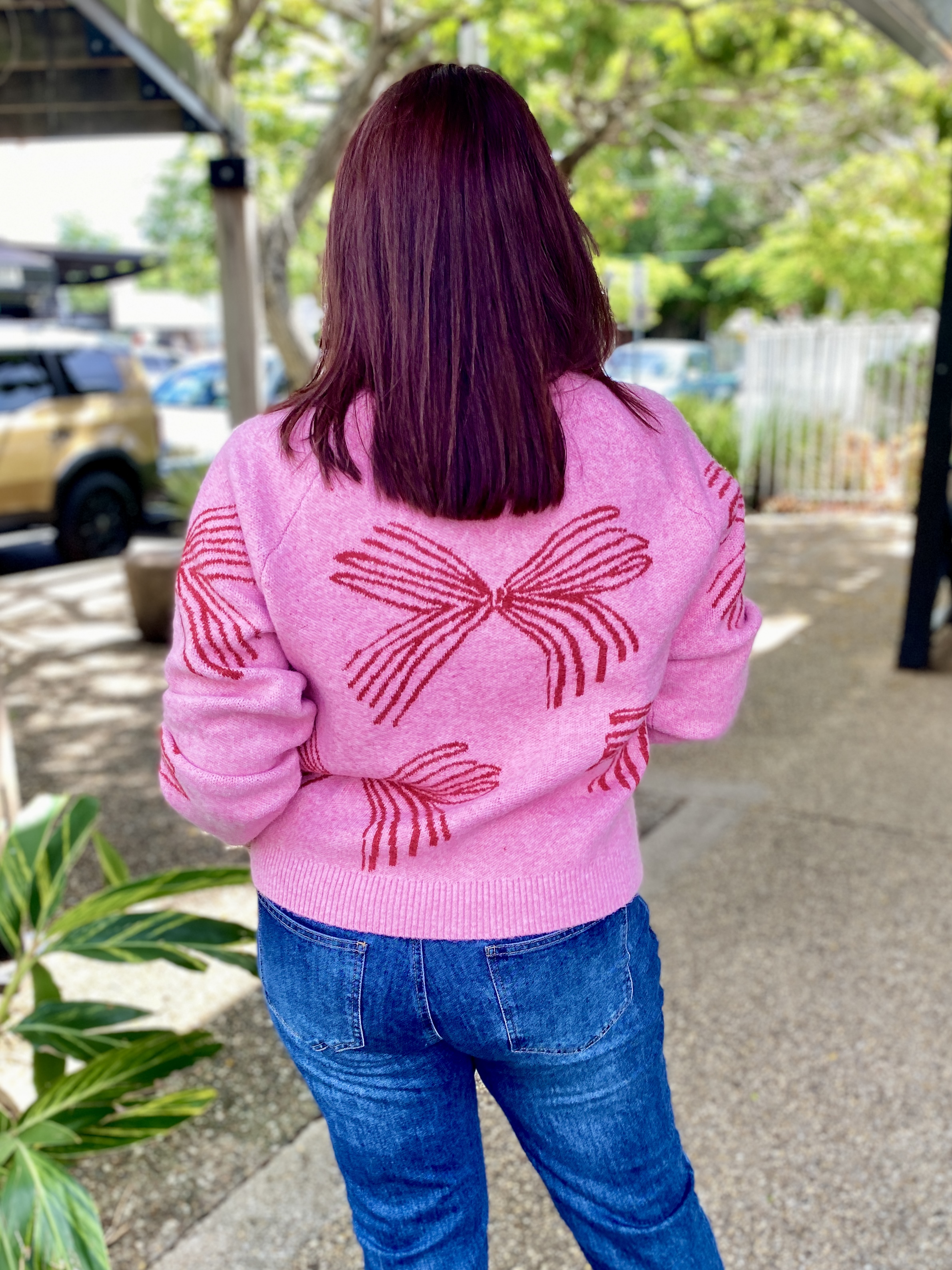 The Yuko Ribbon Knit in Pink with Red Bows brings a playful yet polished touch to your knitwear collection. Designed in a pink base with statement red bow detailing, this cosy style blends charm with everyday versatility.